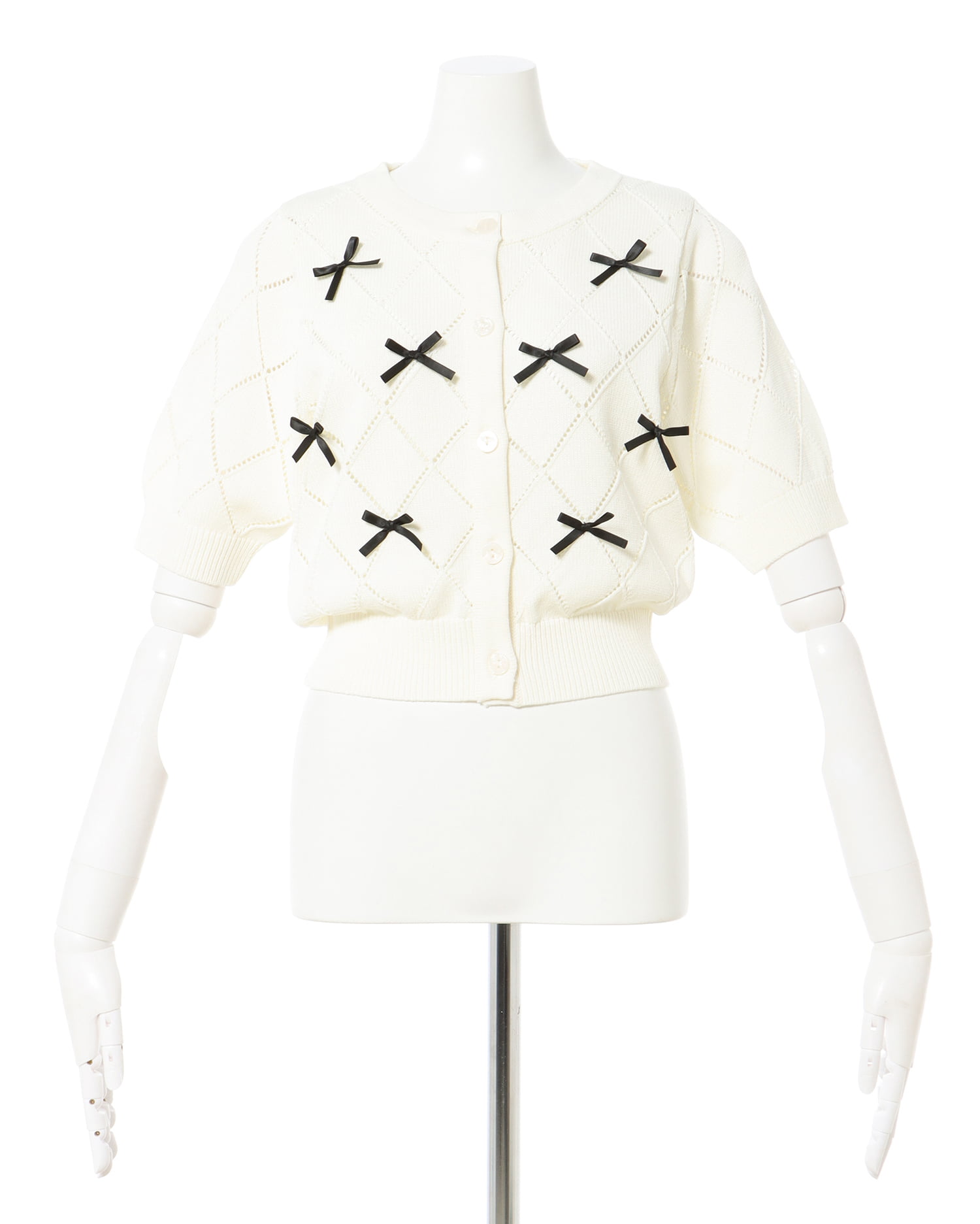 ちりばめられた立体的なリボンが大人可愛いカーディガン。