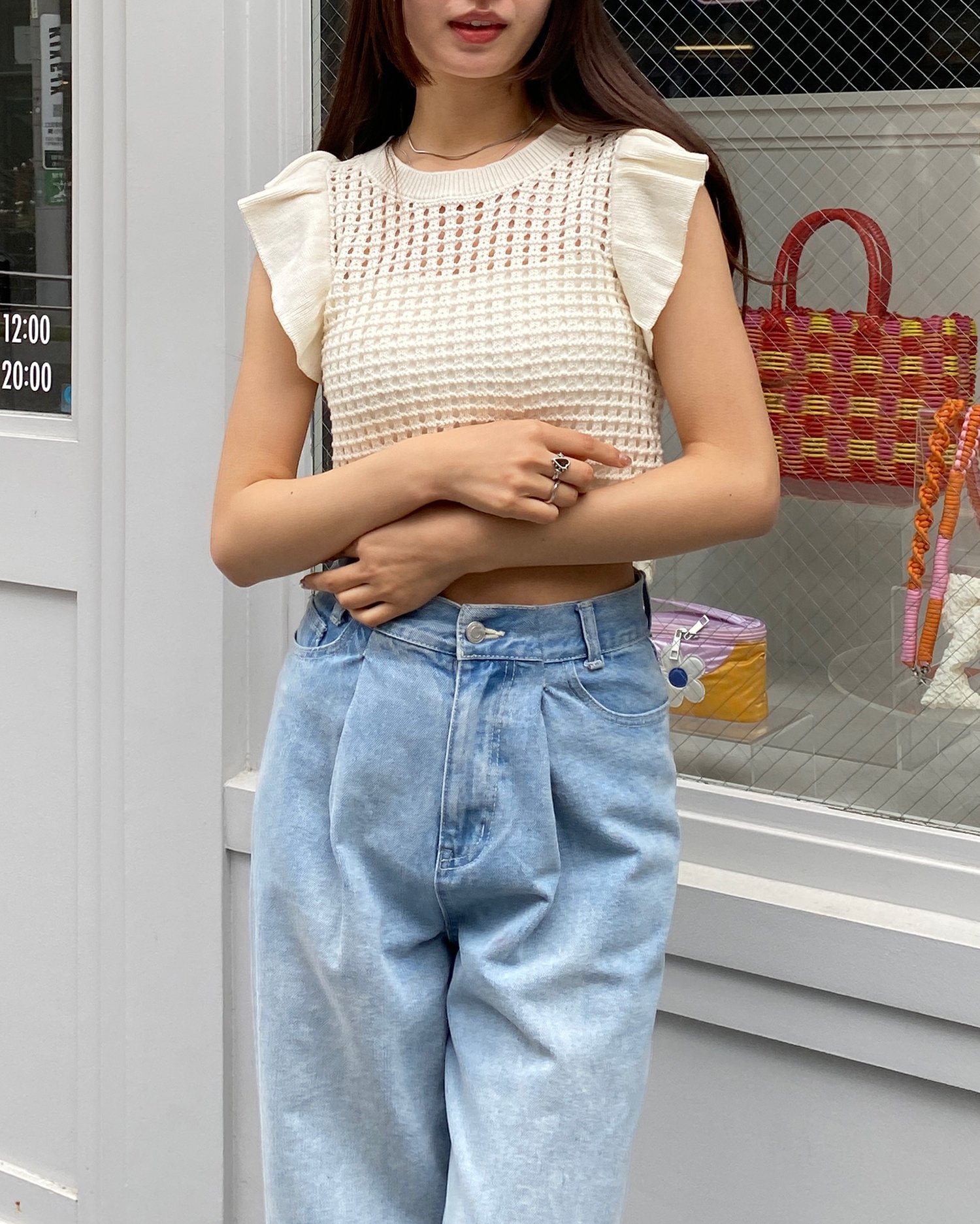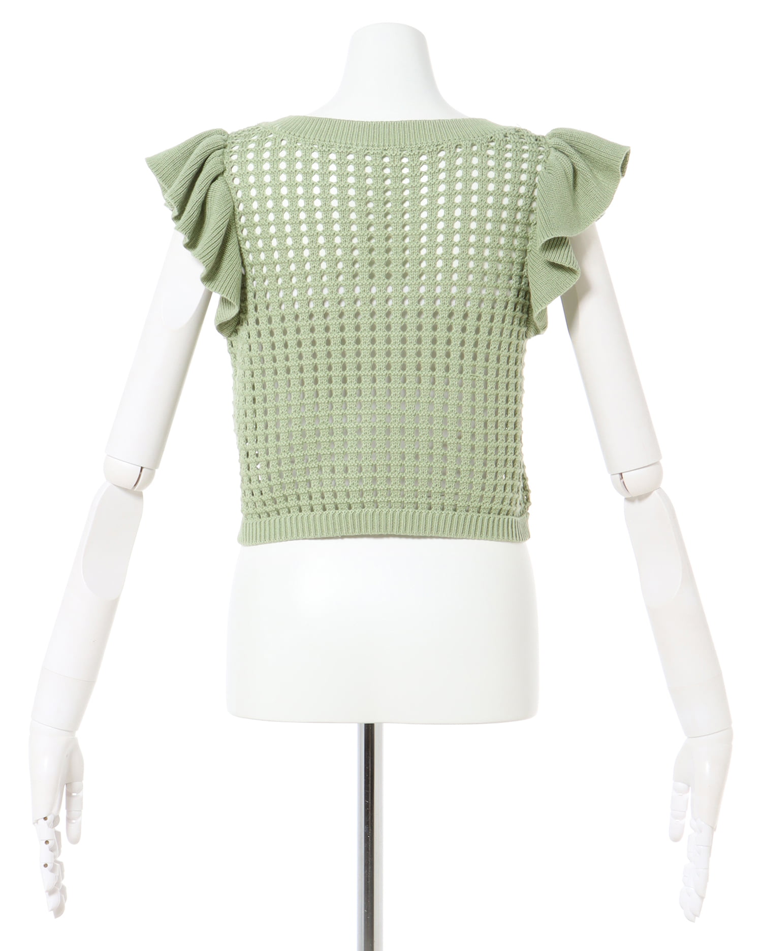 清涼感のあるメッシュニットはショルダー部分のフリルがキュート。