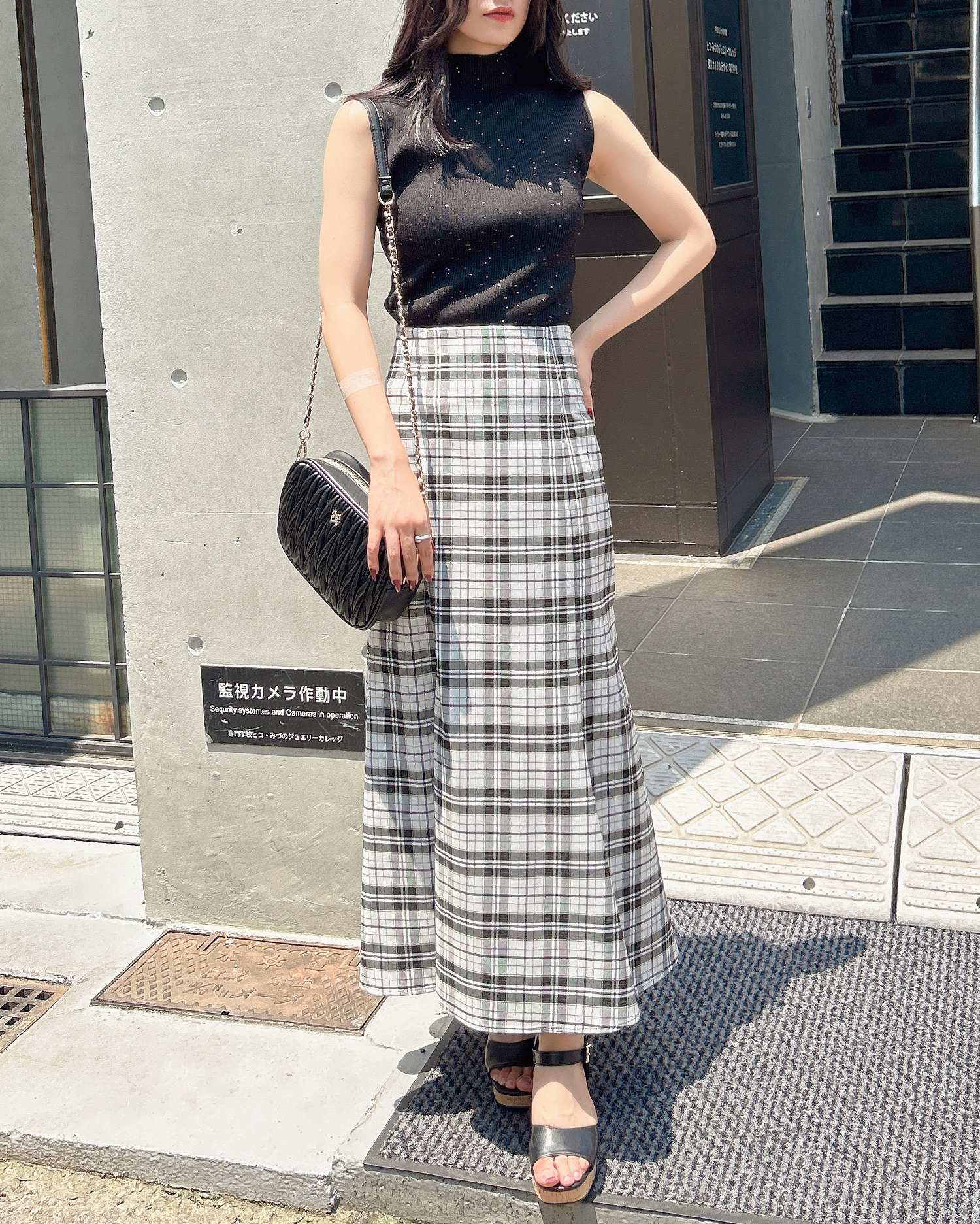 【小さめのスパンコールが煌めく大人キレイめノースリーブニット】