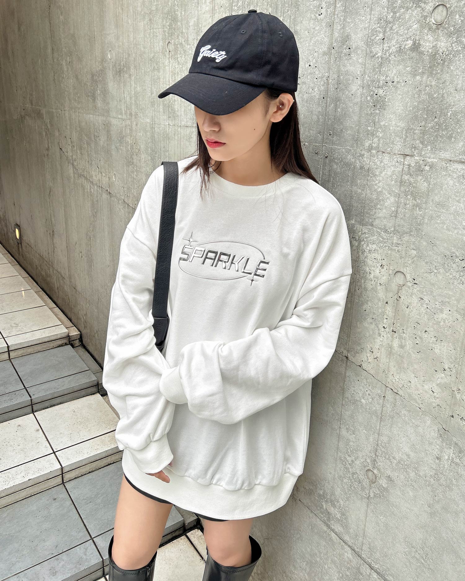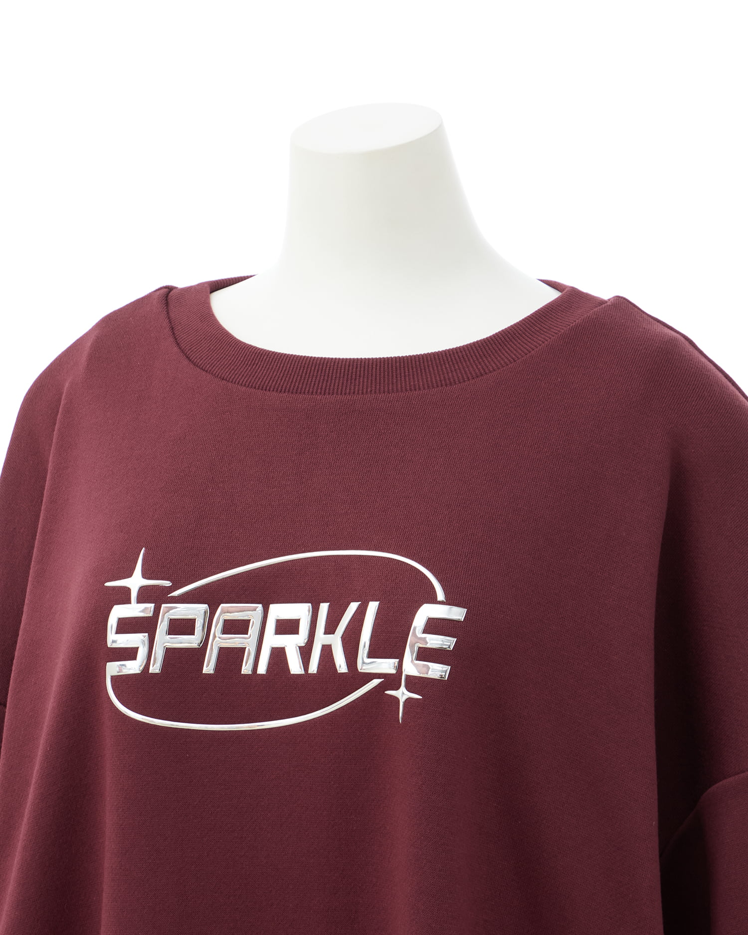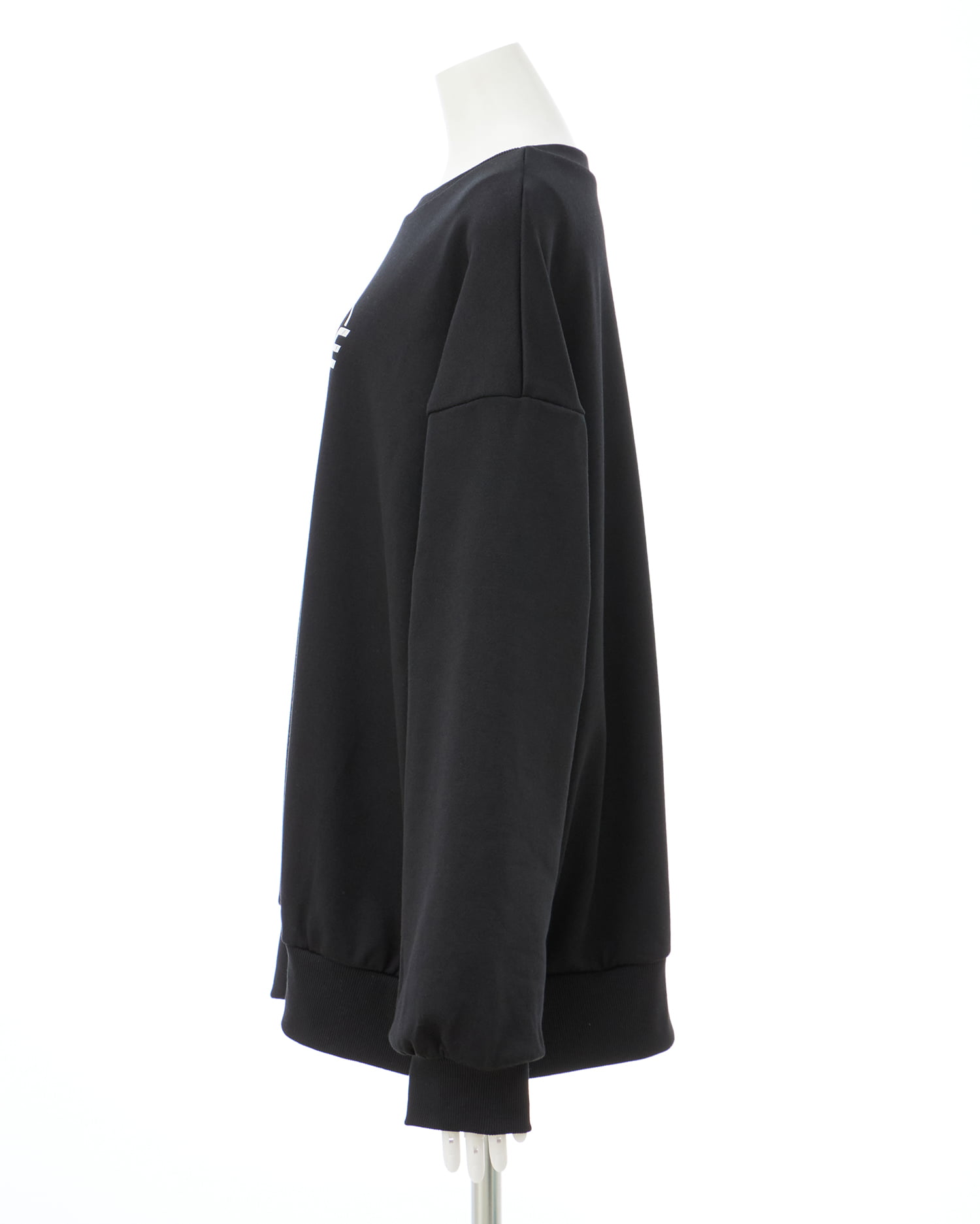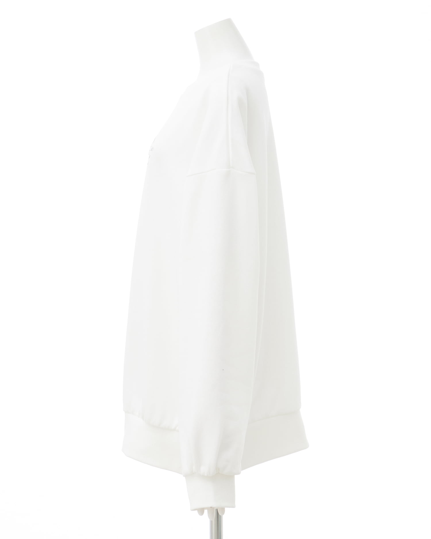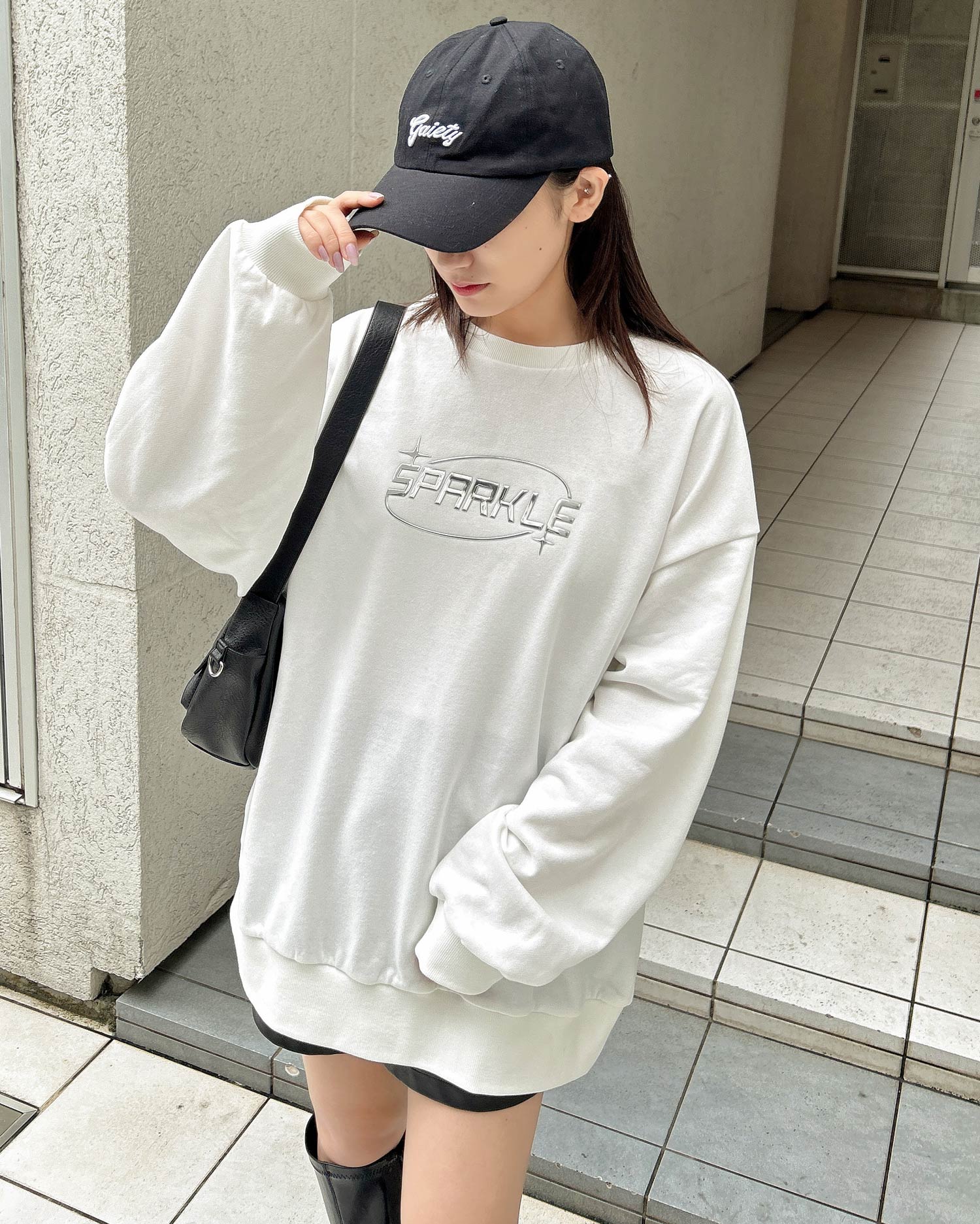 シンプルな無地に胸元のメタリックロゴが映えるスウェットトップス。