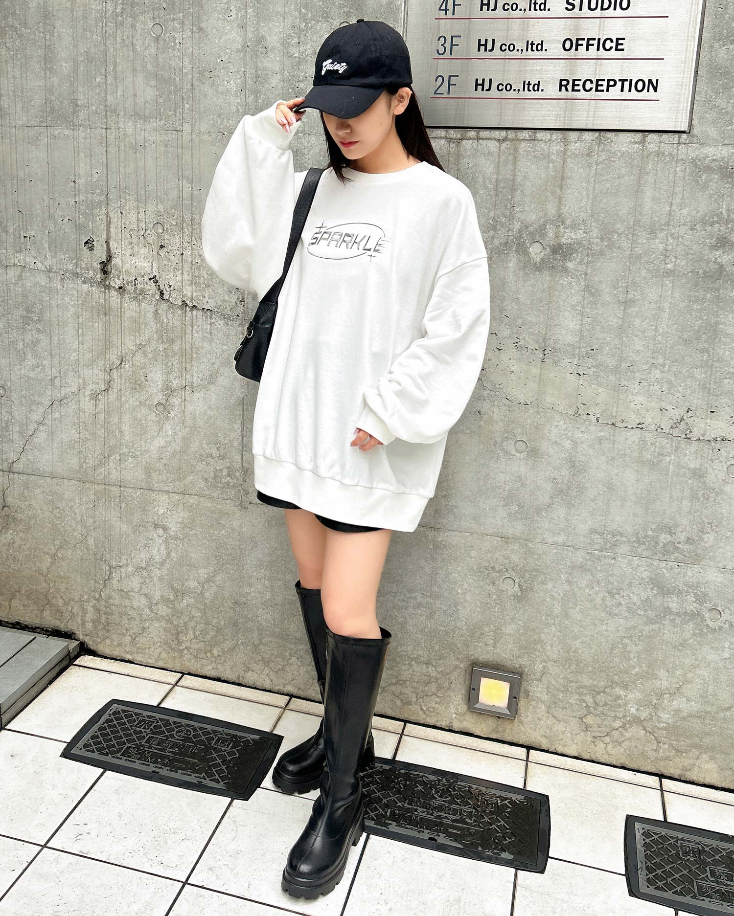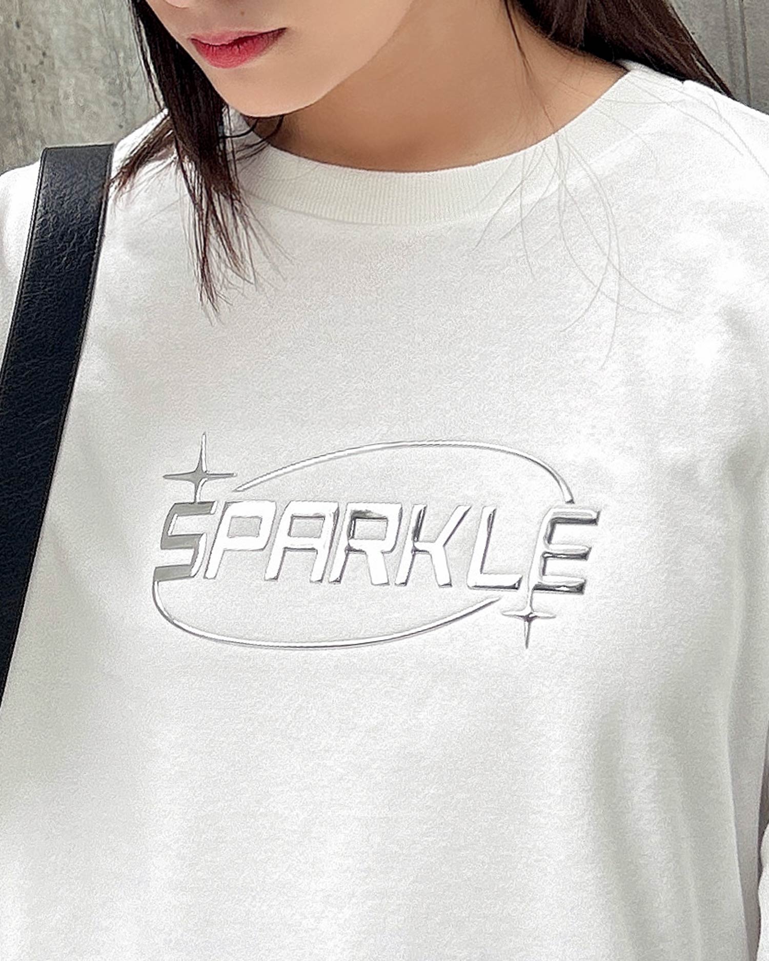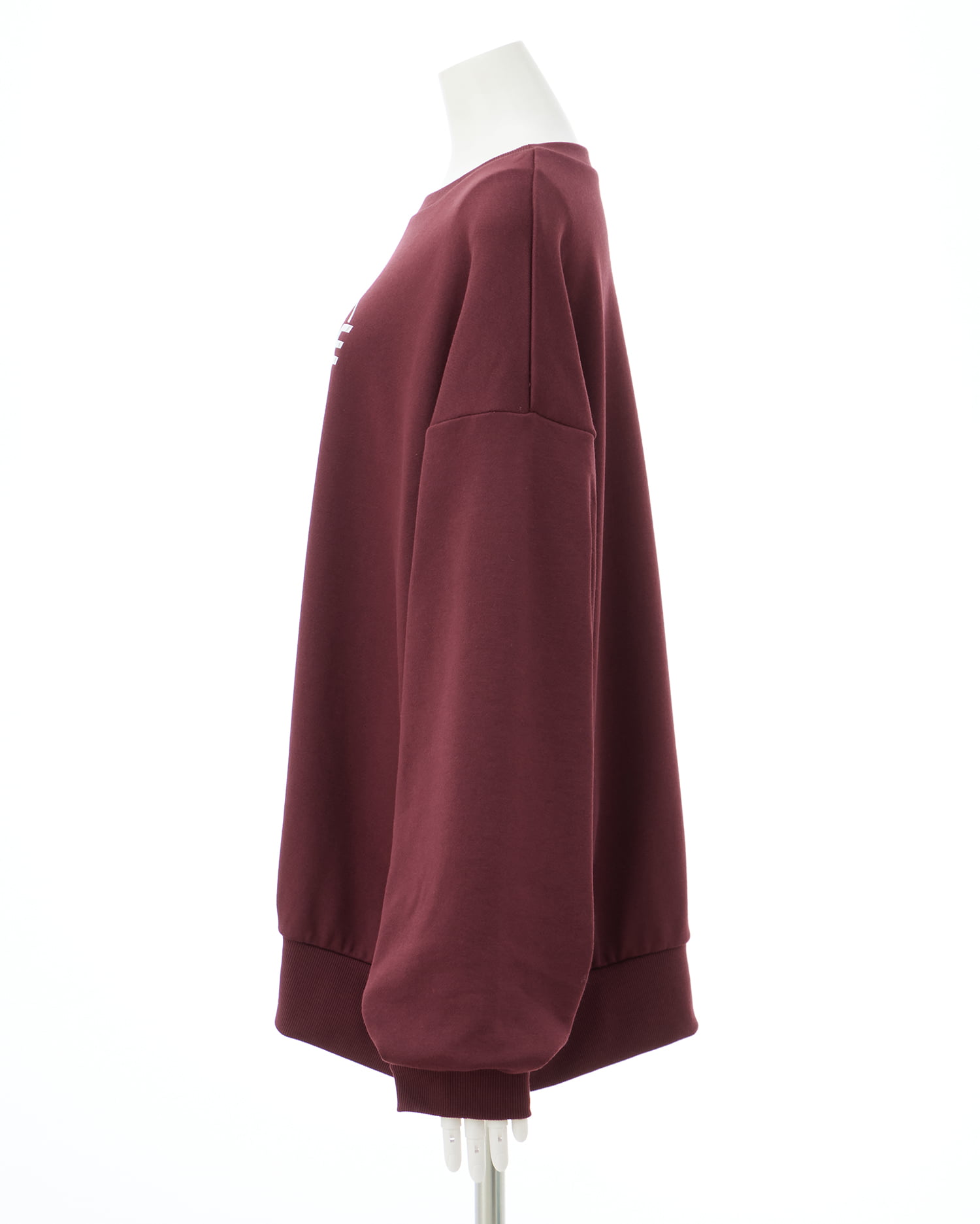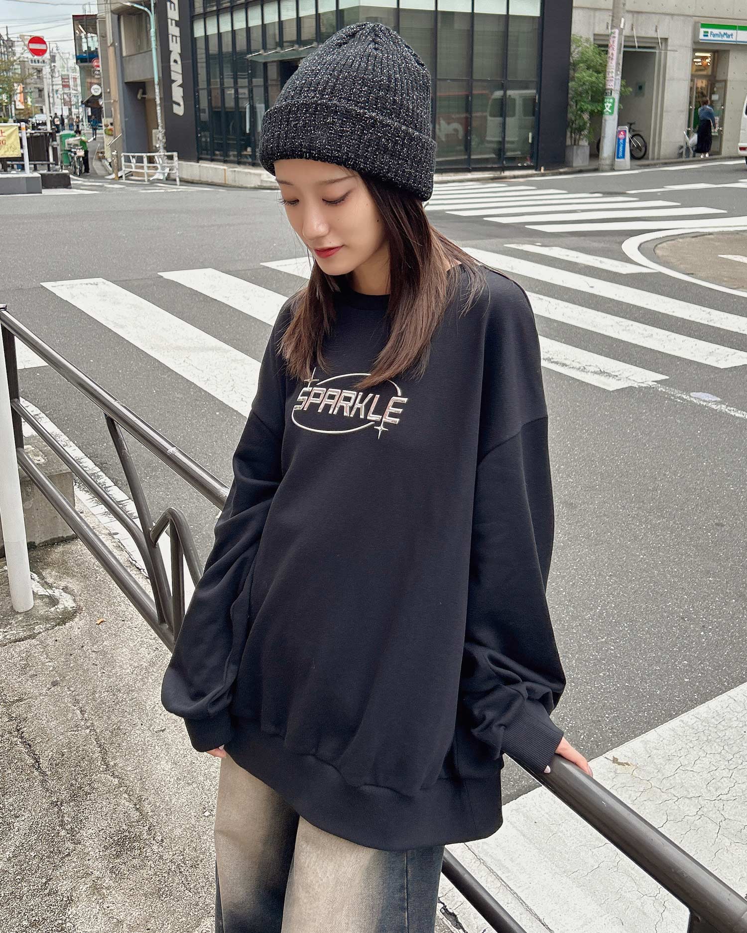 シンプルな無地に胸元のメタリックロゴが映えるスウェットトップス。