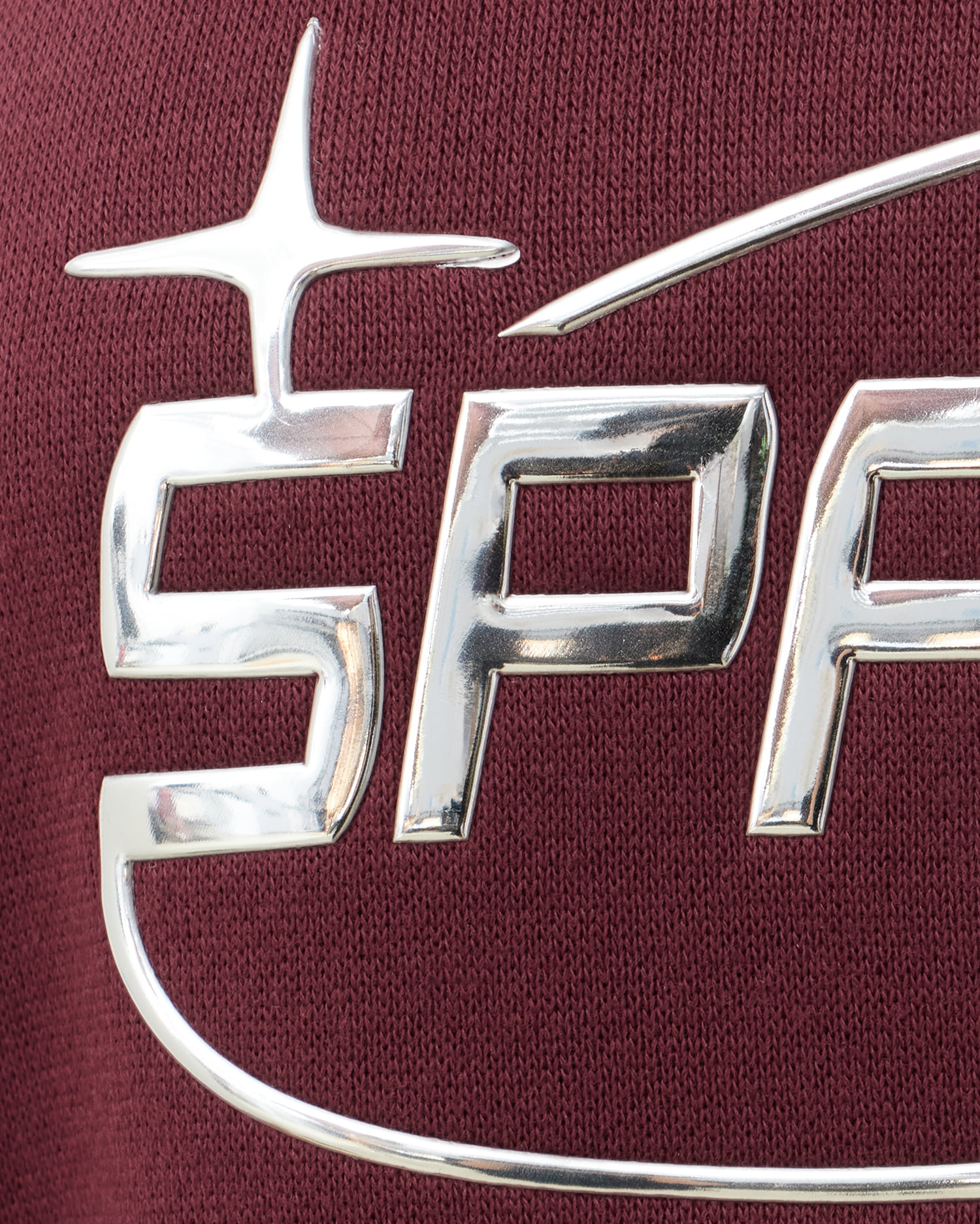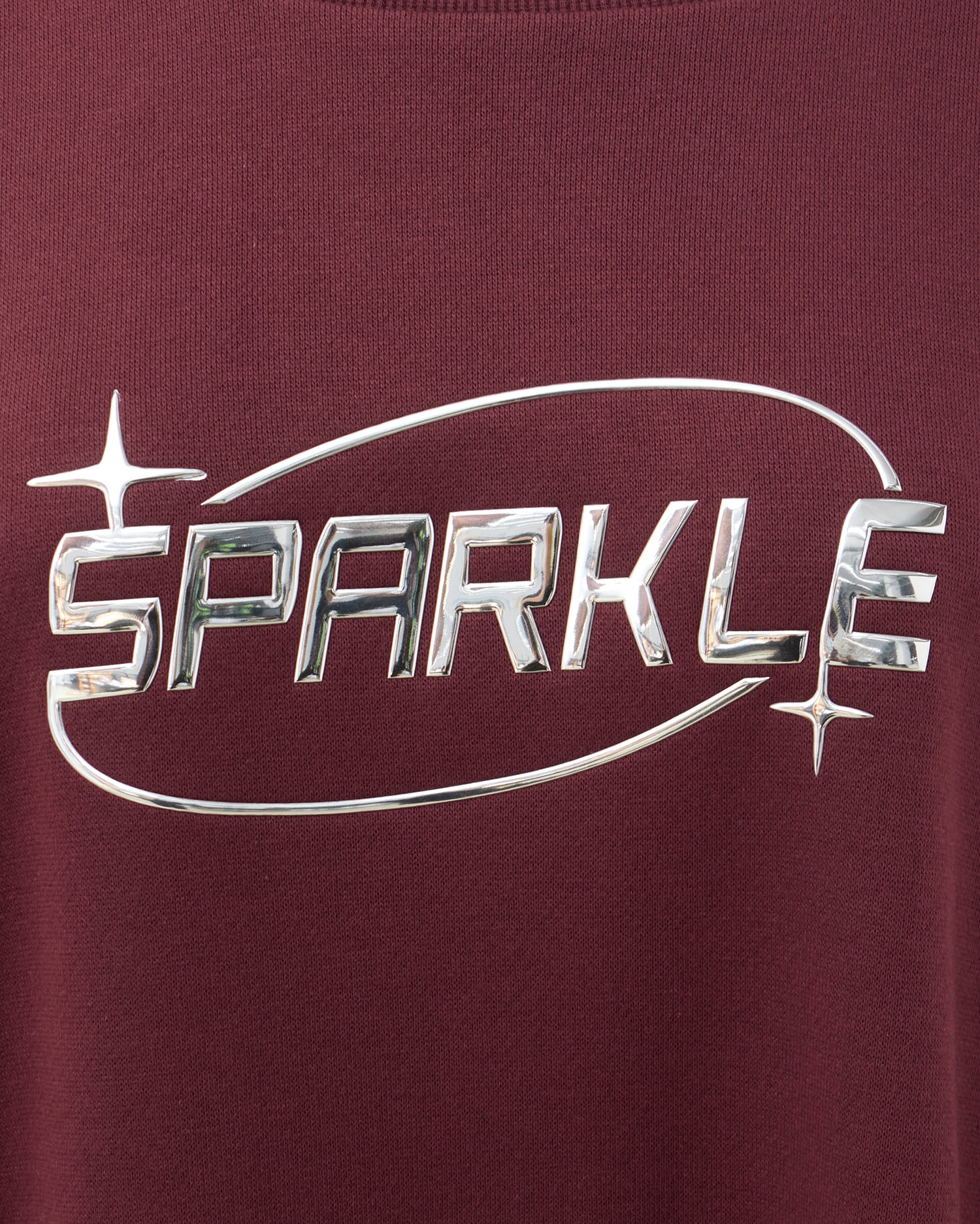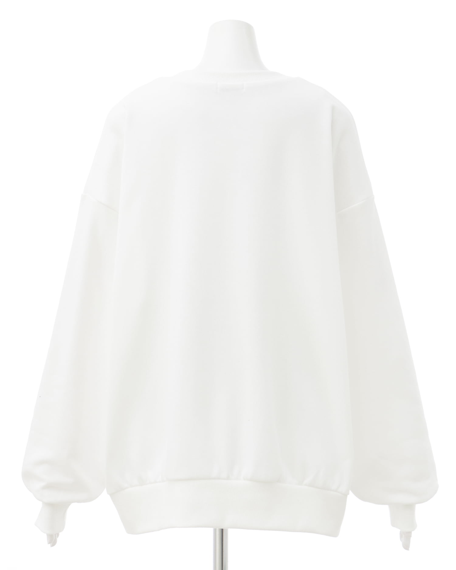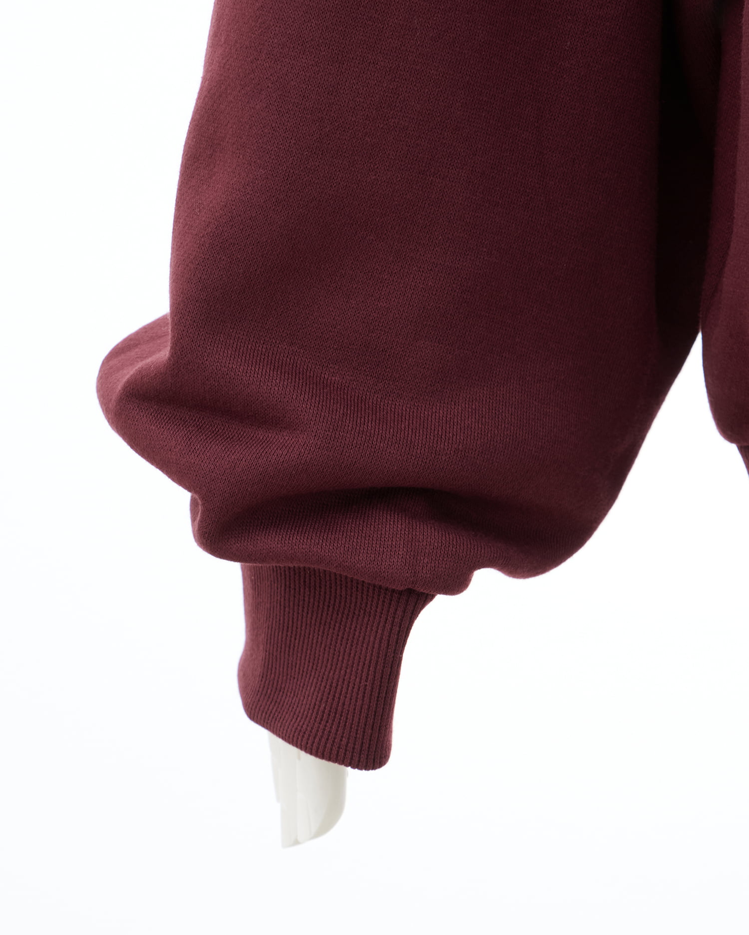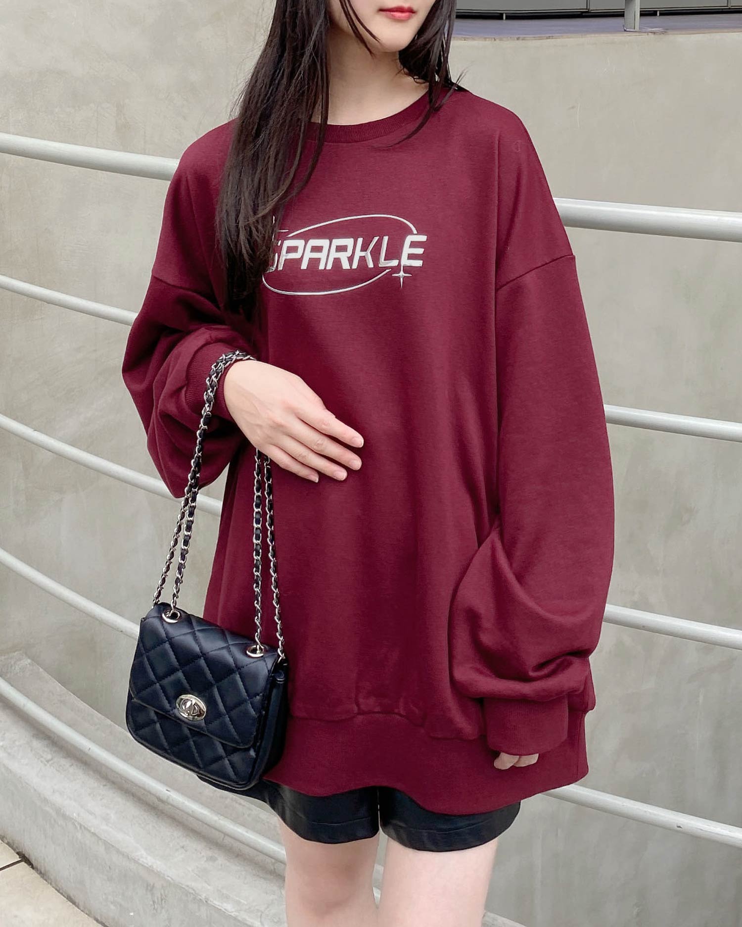 シンプルな無地に胸元のメタリックロゴが映えるスウェットトップス。