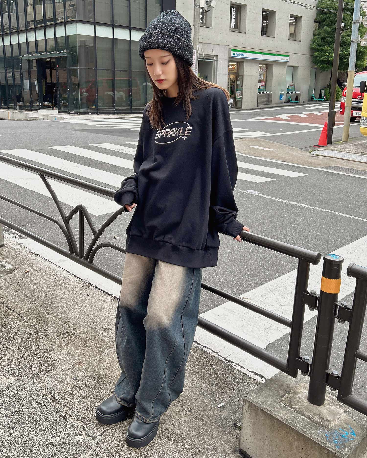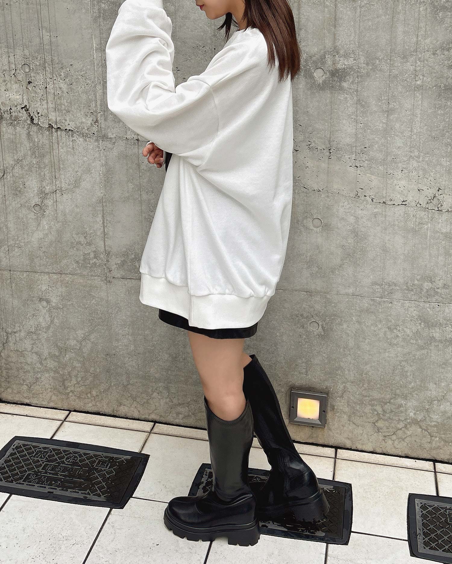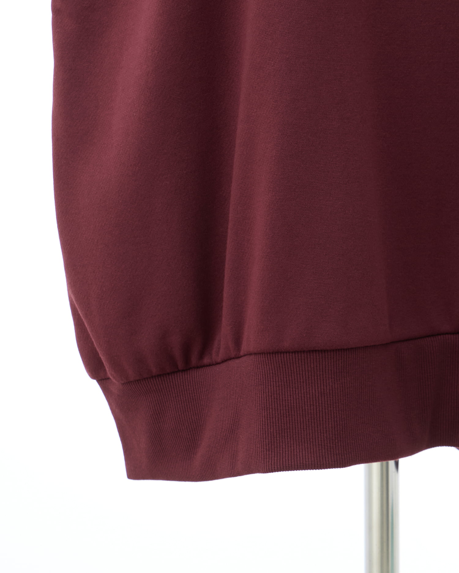 薄手のスウェット素材は1枚で着るのはもちろん、インナーを合わせたレイヤードスタイルもおすすめ。