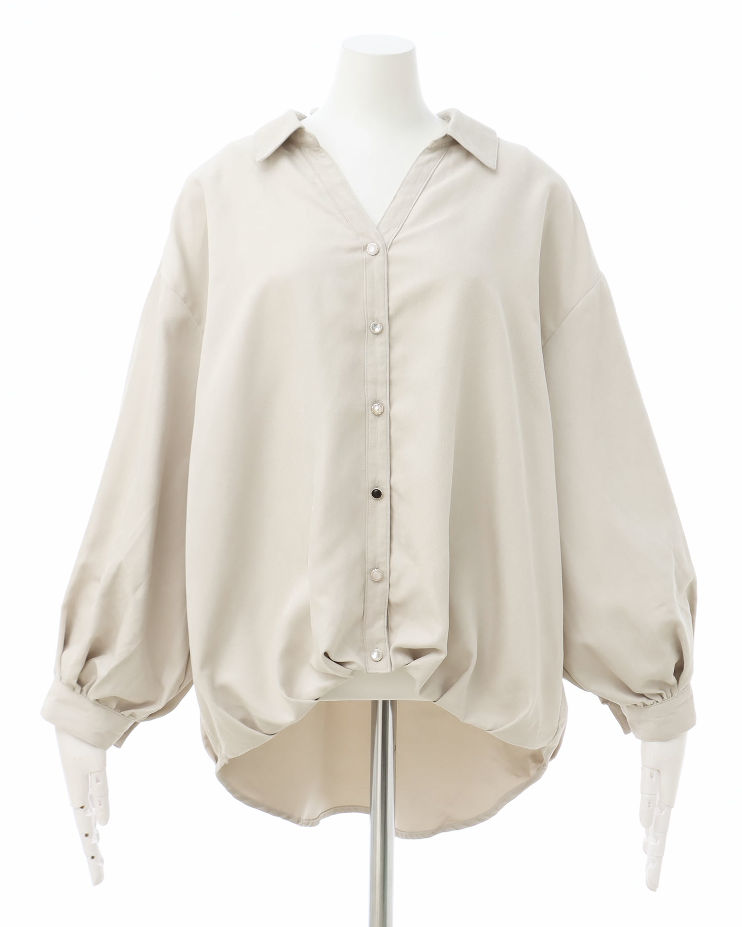 裾フロントは斜めにタックを入れてフロントインしたようなシルエットが楽しめます。