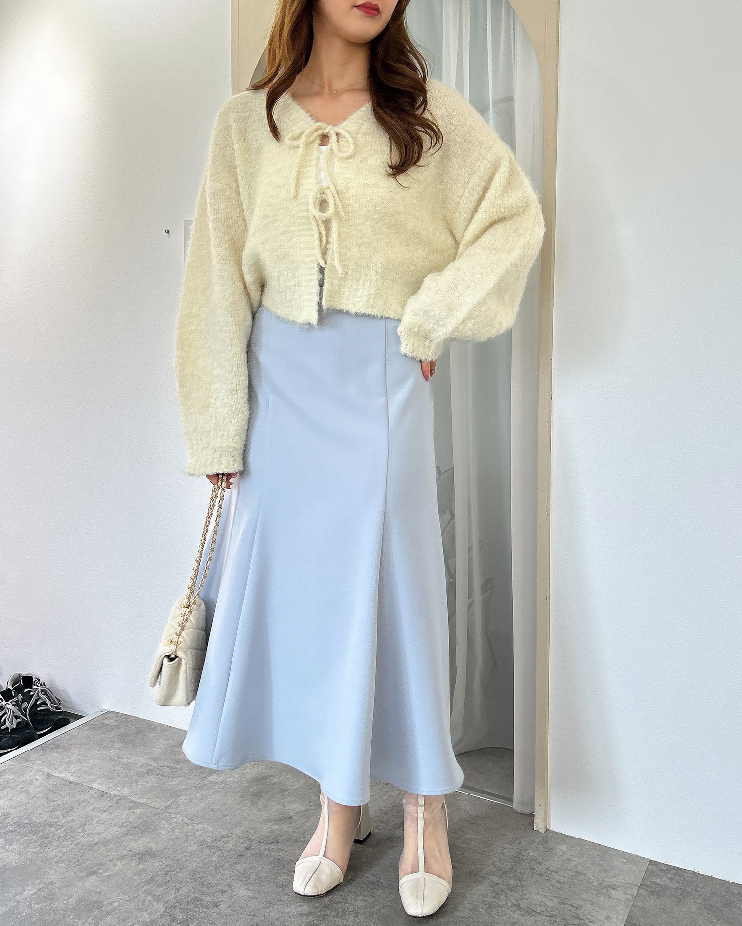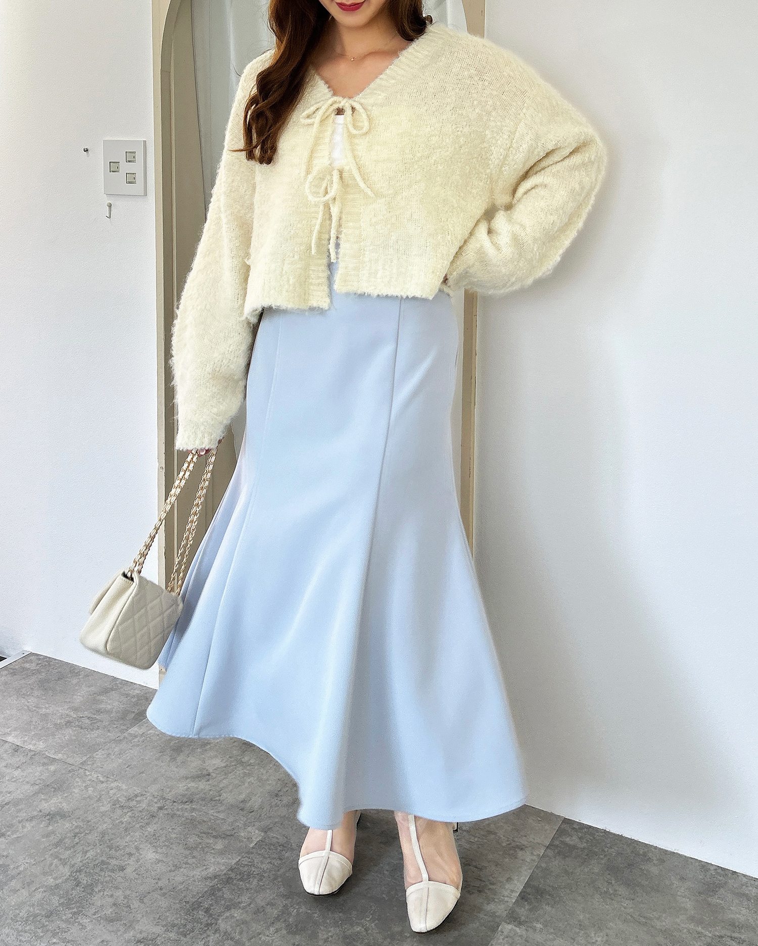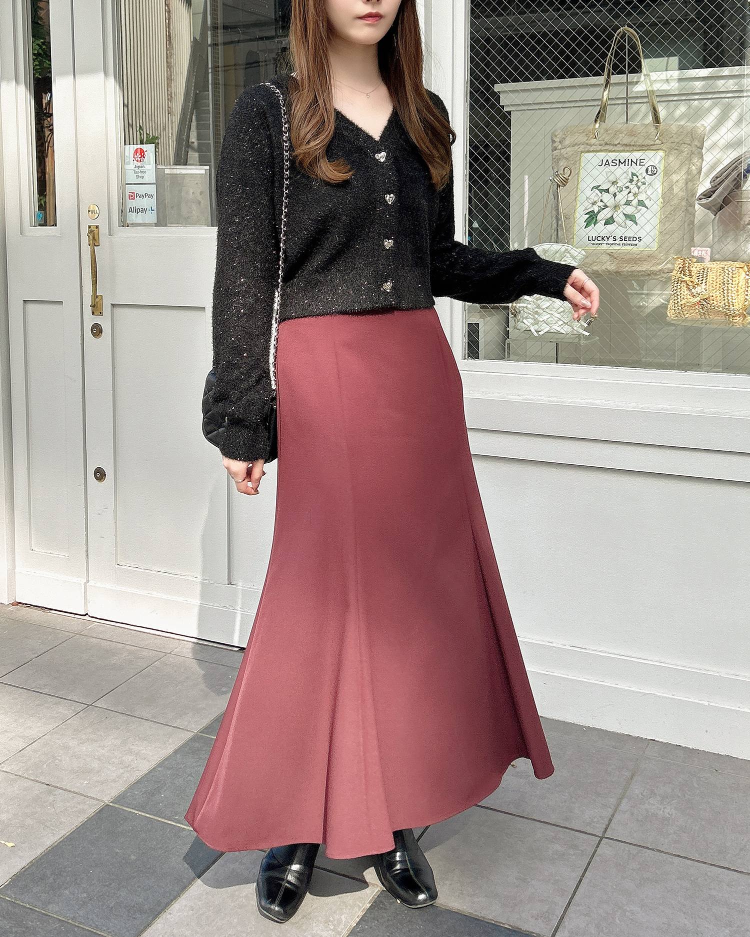 6枚パネルをつなぎ合わせた立体的なシルエットが美しいロングスカート。