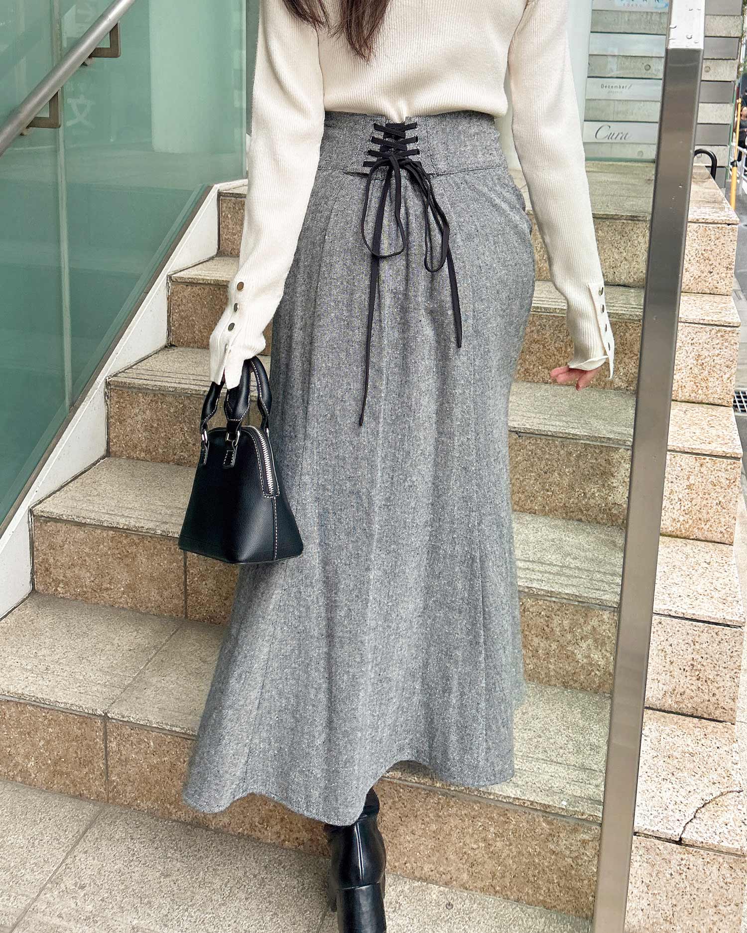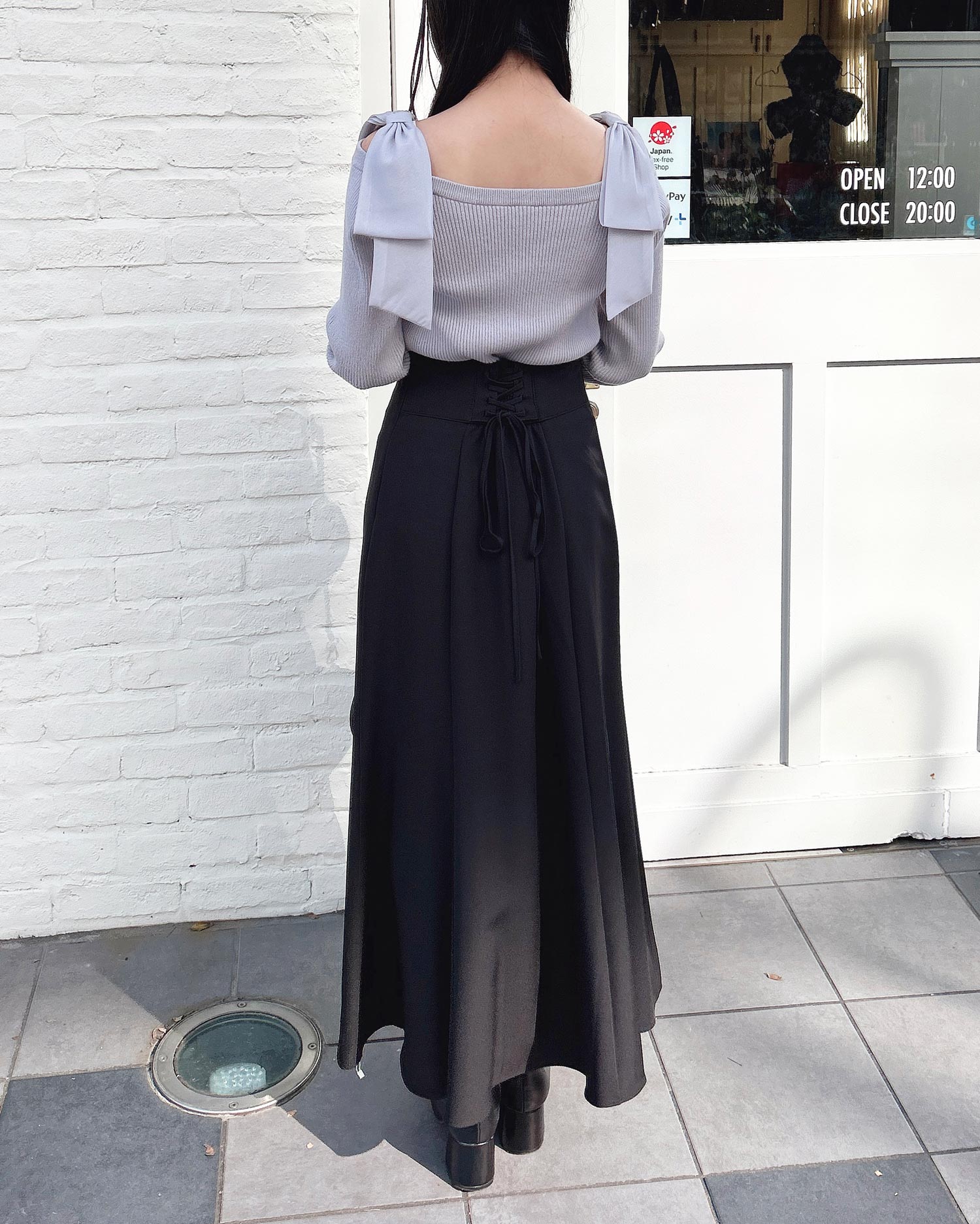 後ろはレースアップのデザインなのでウエストの調節が可能。