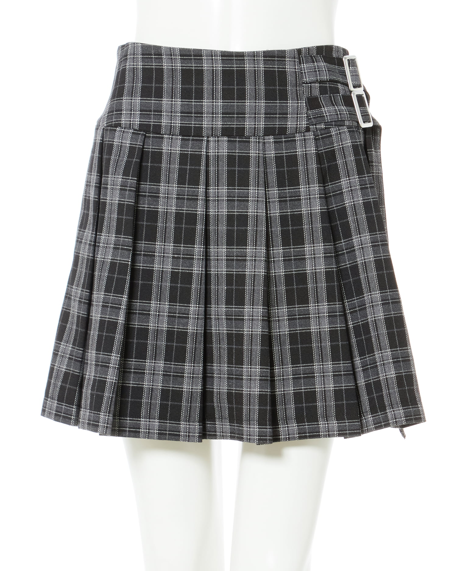 【ベルトがアクセントになるチェック柄のプリーツスカパン】