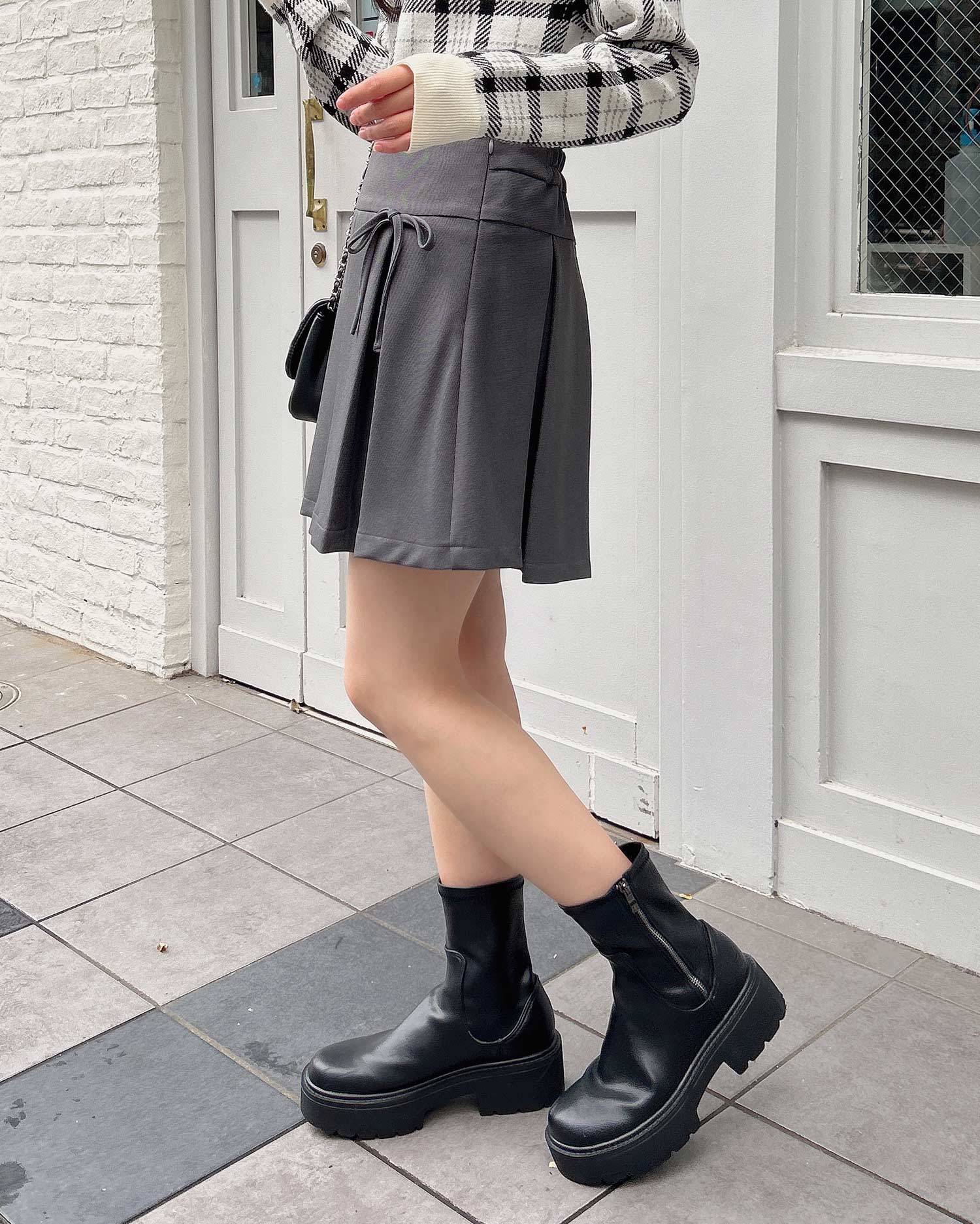 ガーリーコーデにぴったりなボックスプリーツのミニ丈スカパン。
