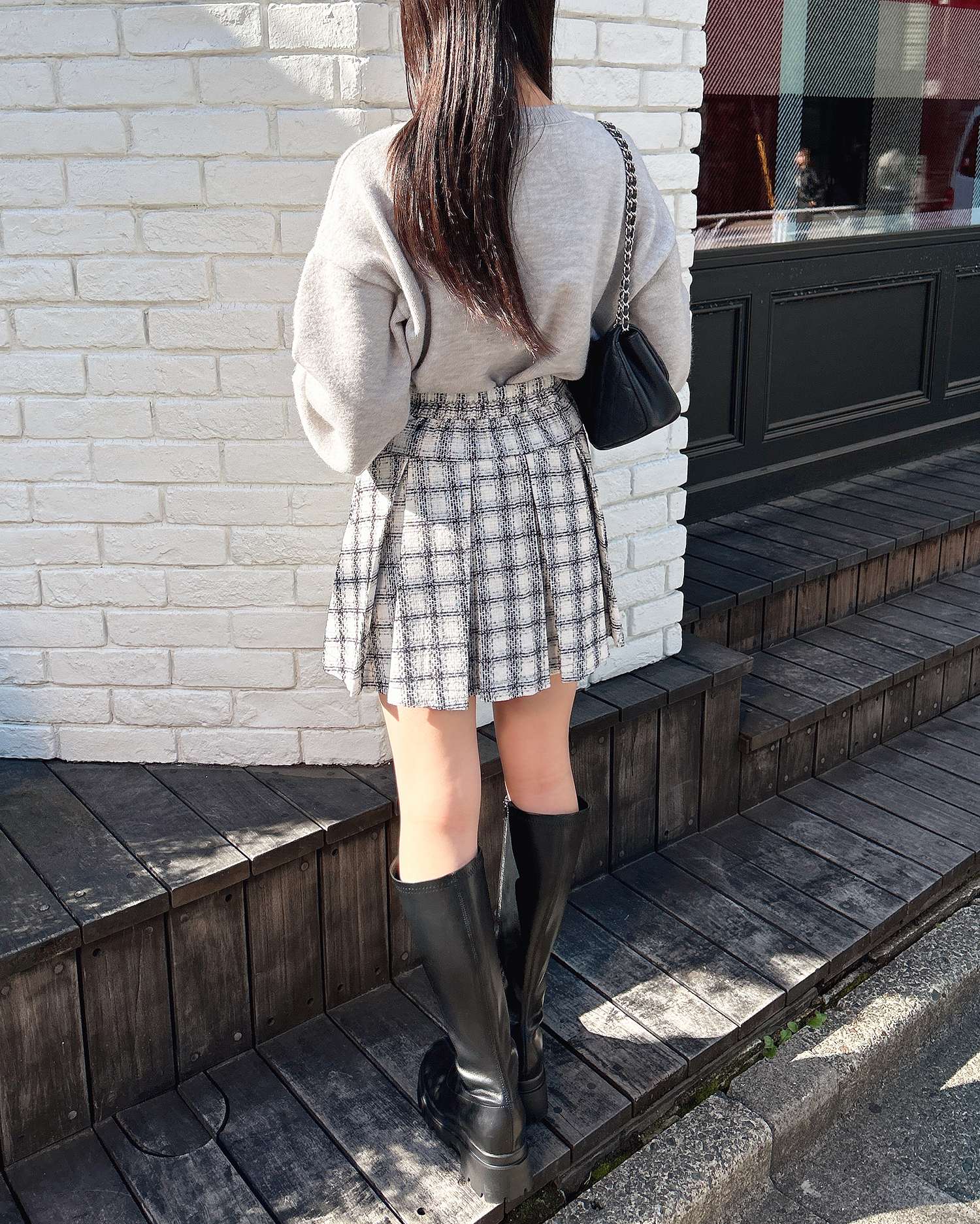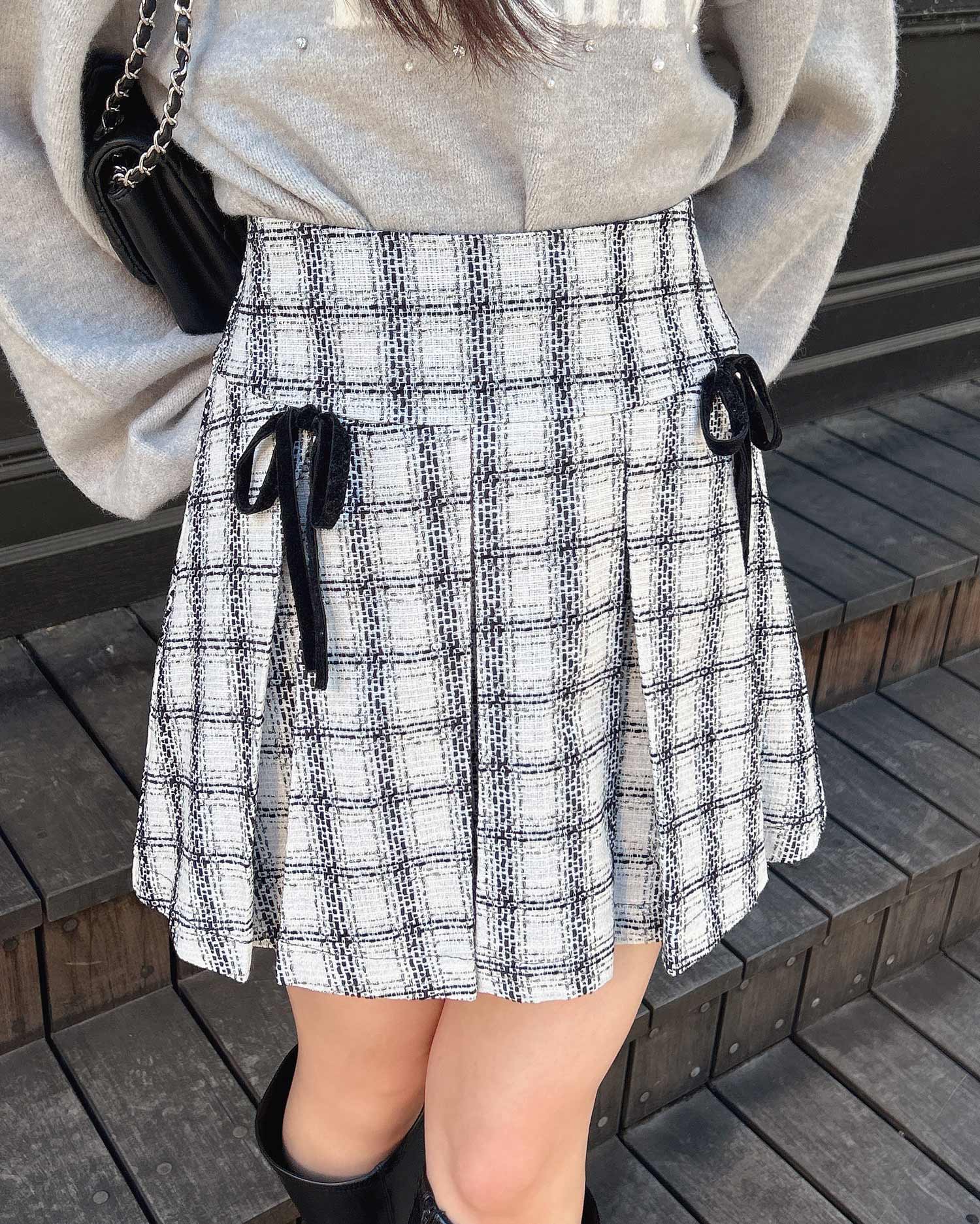 【冬らしいベロアリボン付きツイードスカパンが登場いたしました!】