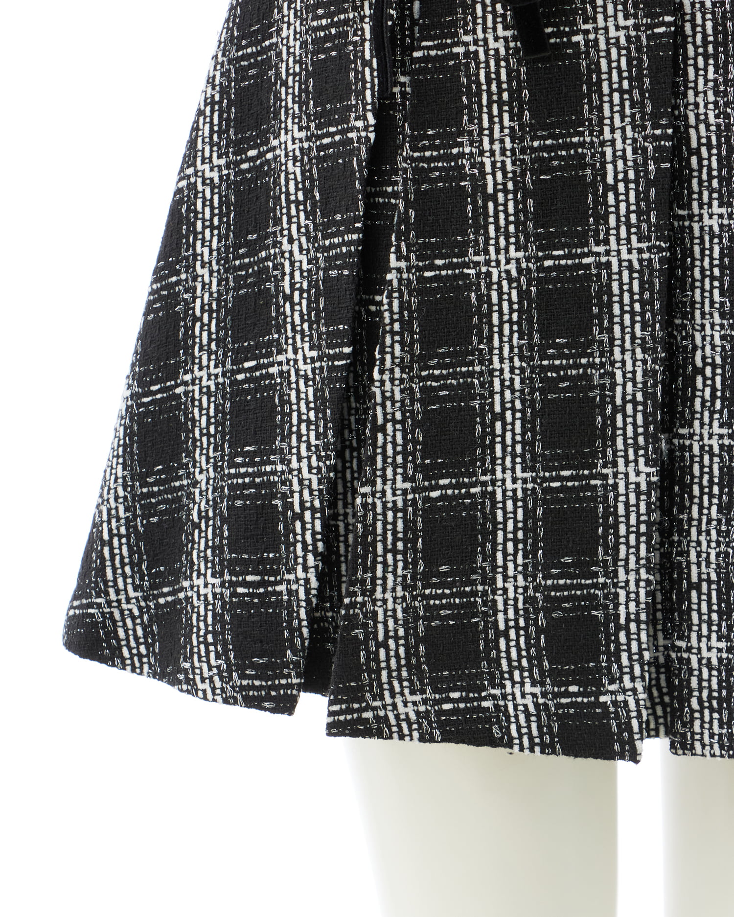ラメを織り込んだツイード生地で華やかに仕上げています。