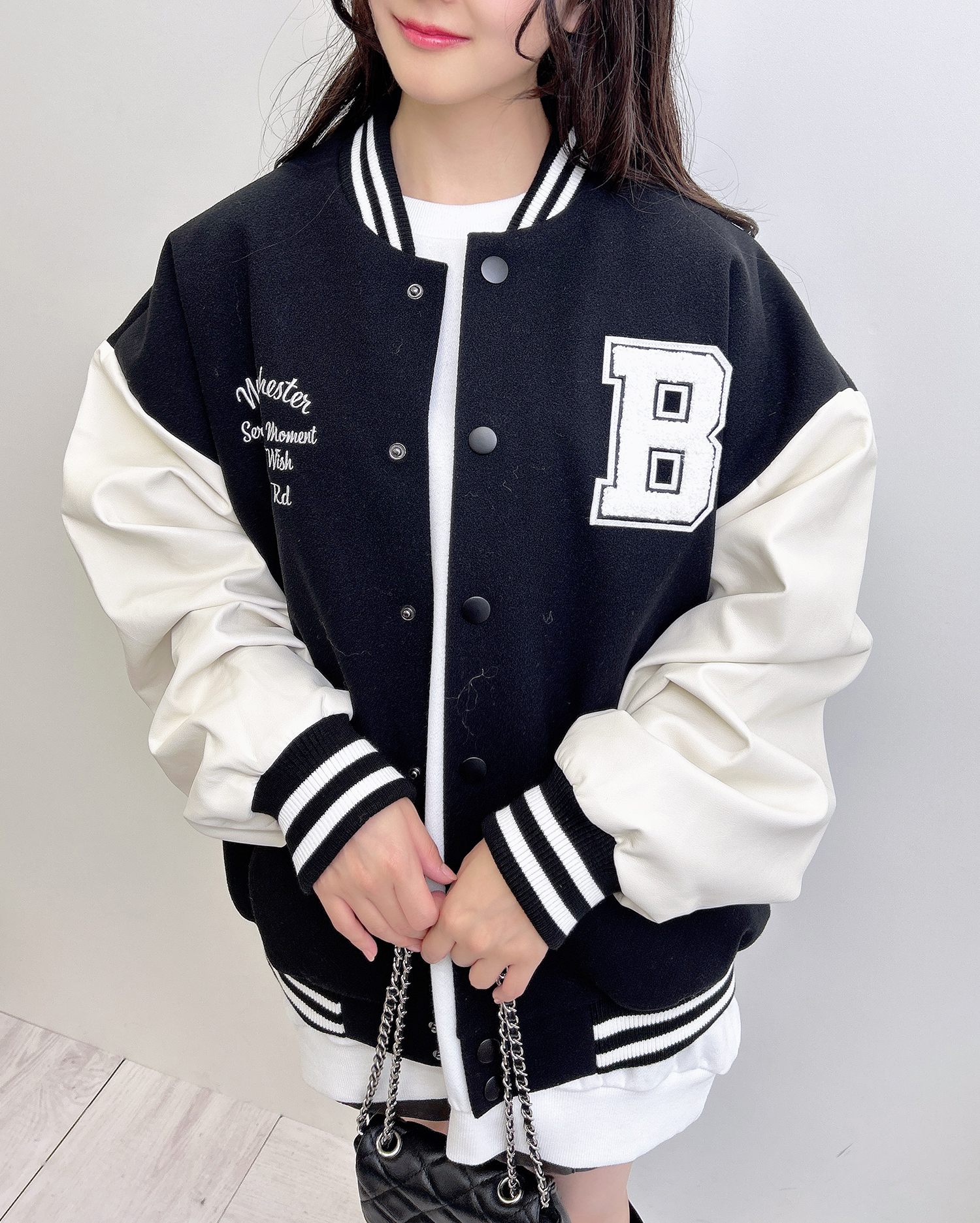 袖部分をフェイクレザーで仕上げたスタイリッシュ&スポーティなスタジャン。