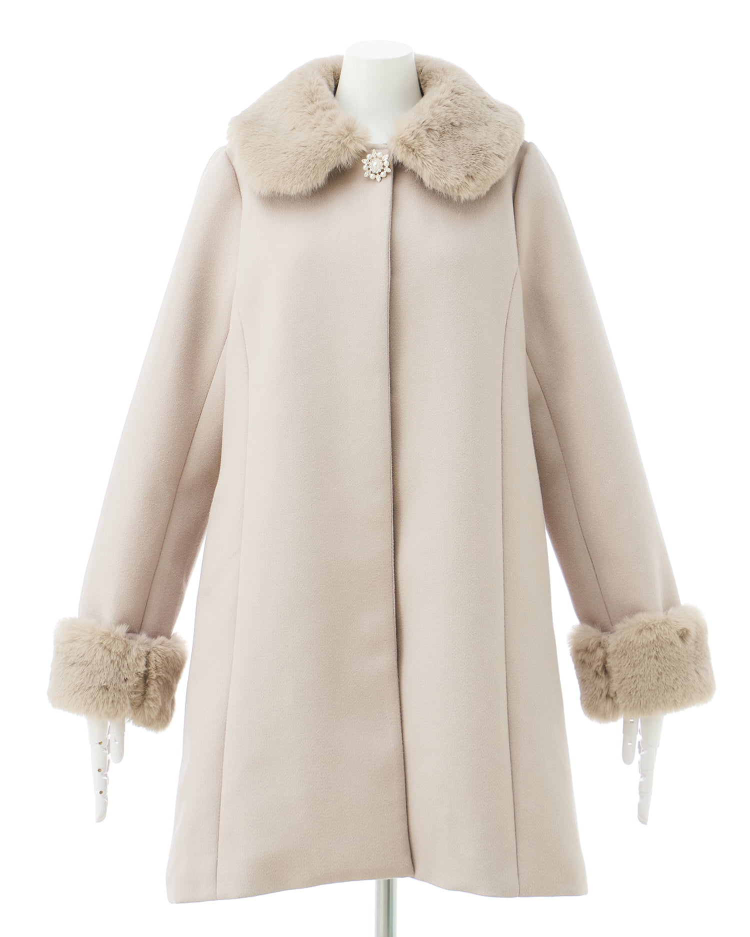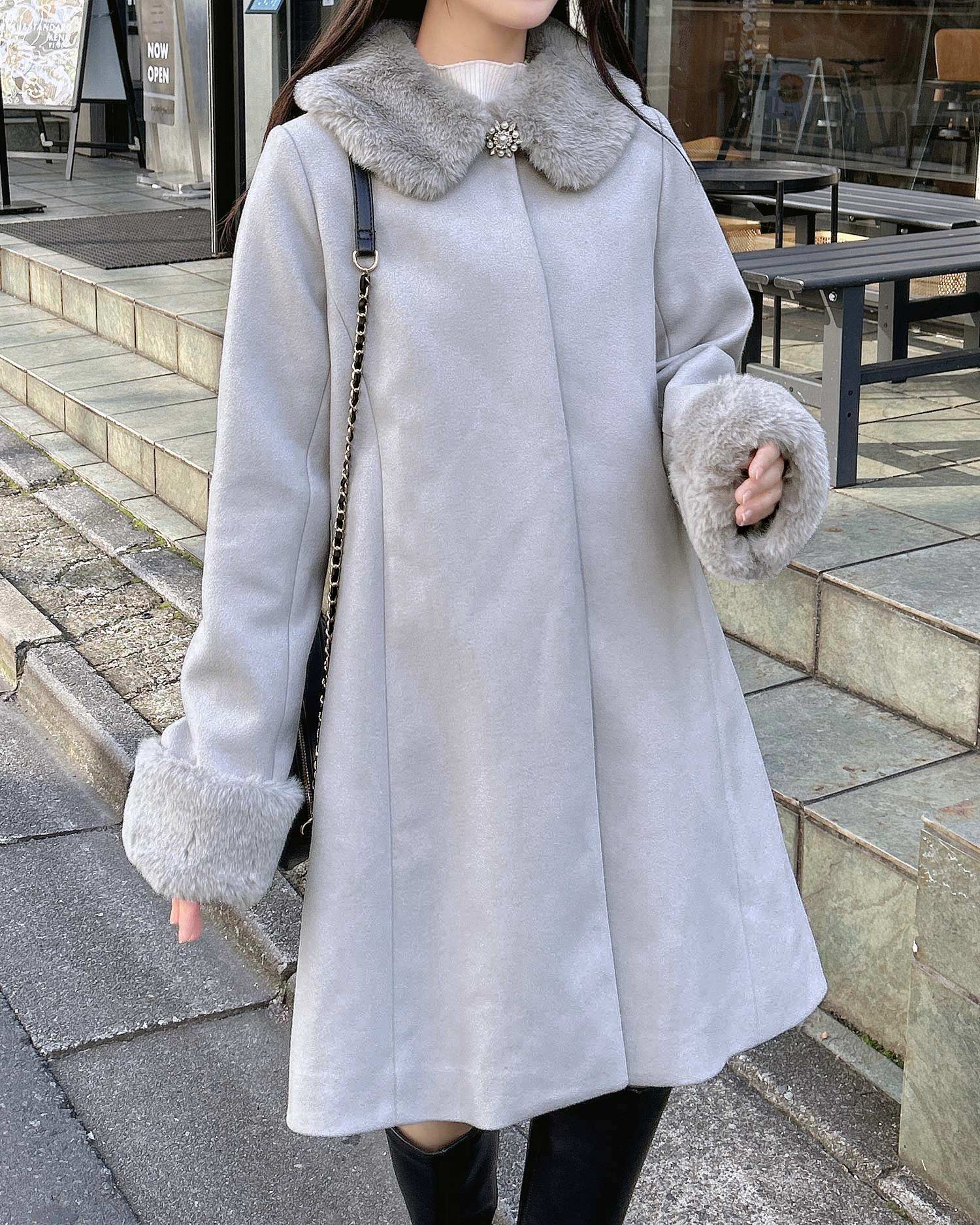 ファーやブローチは取り外しが可能なので、コーデに合わせた自由な着こなしを叶えます。