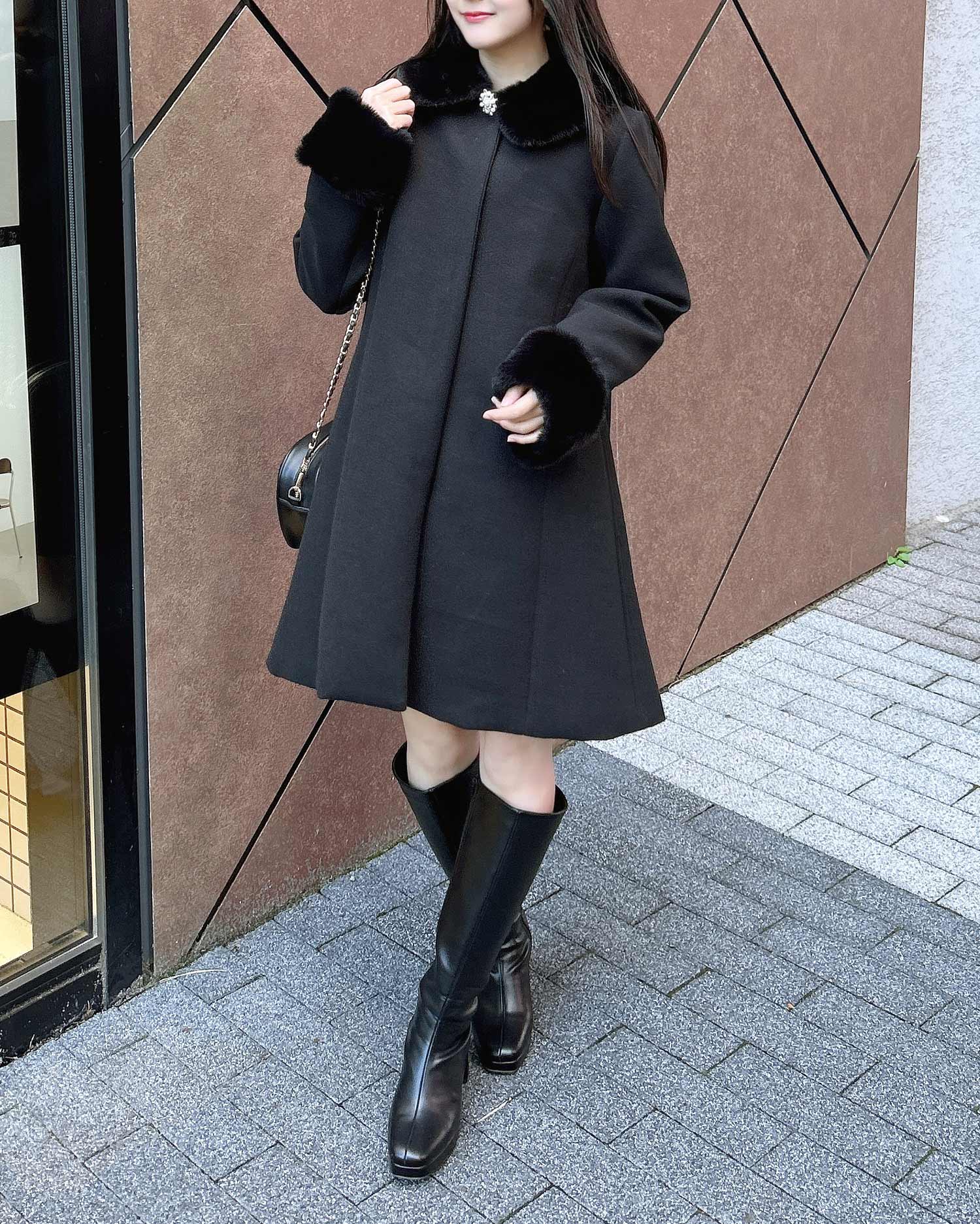 ファーとブローチは取り外しが可能でコーデに合わせて雰囲気を変えられる優れもの◎