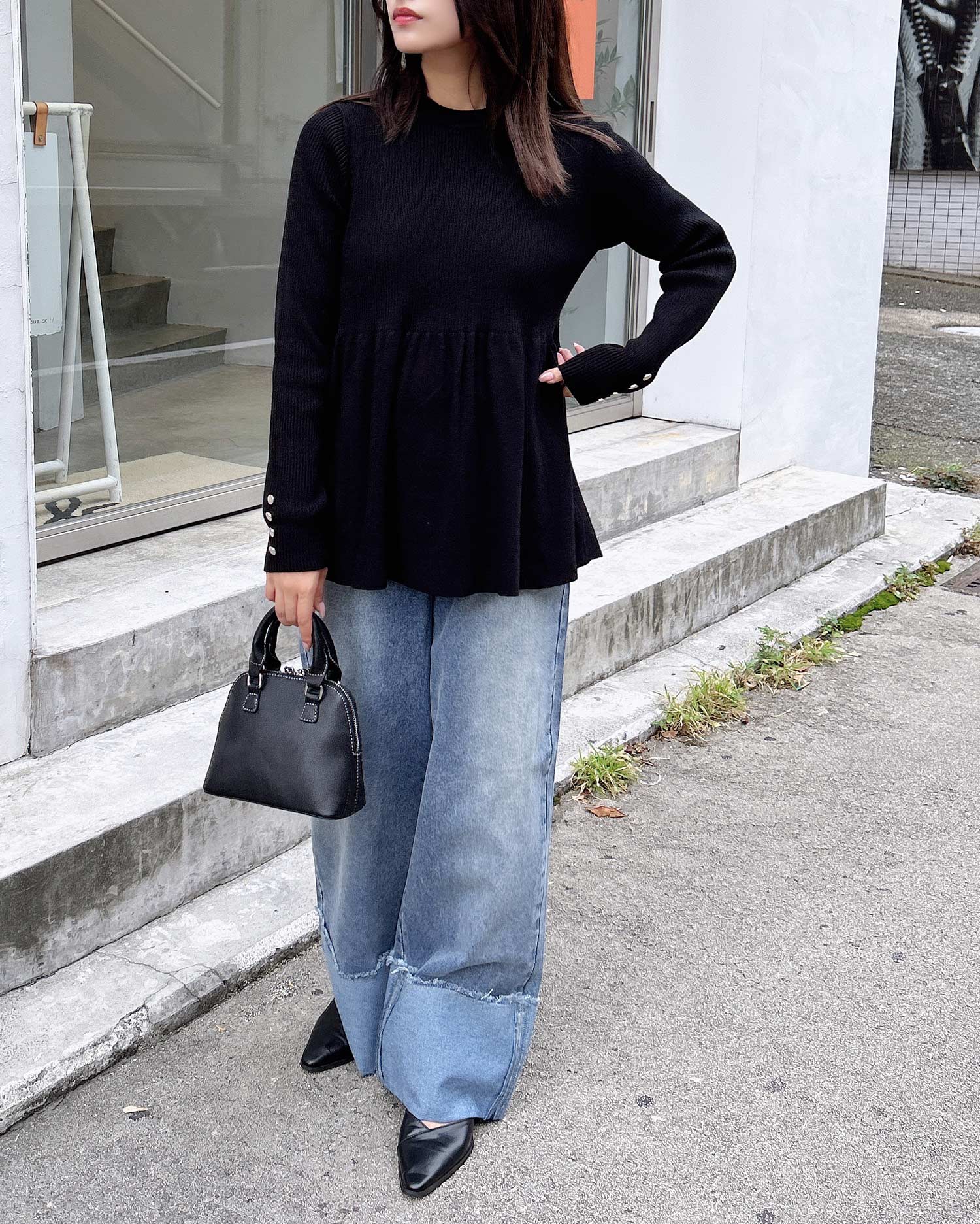 【大人気袖金ボタンのフェミニンペプラムニットバージョン登場】