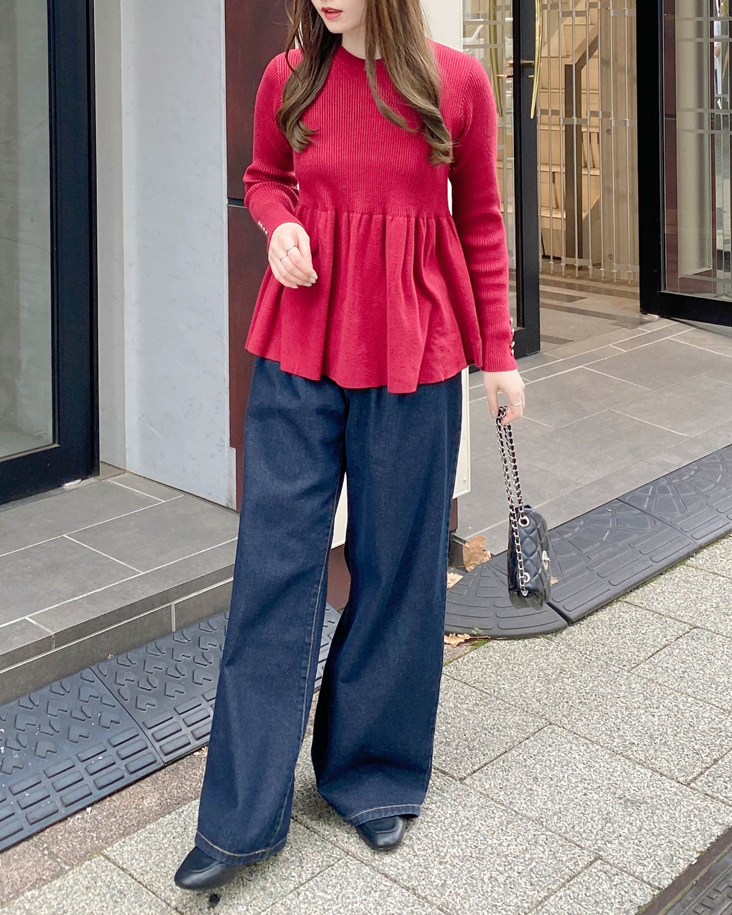 甘めのデザインなのでデニムやワイドパンツなどのカジュアルなアイテムとのスタイリングがオススメです。