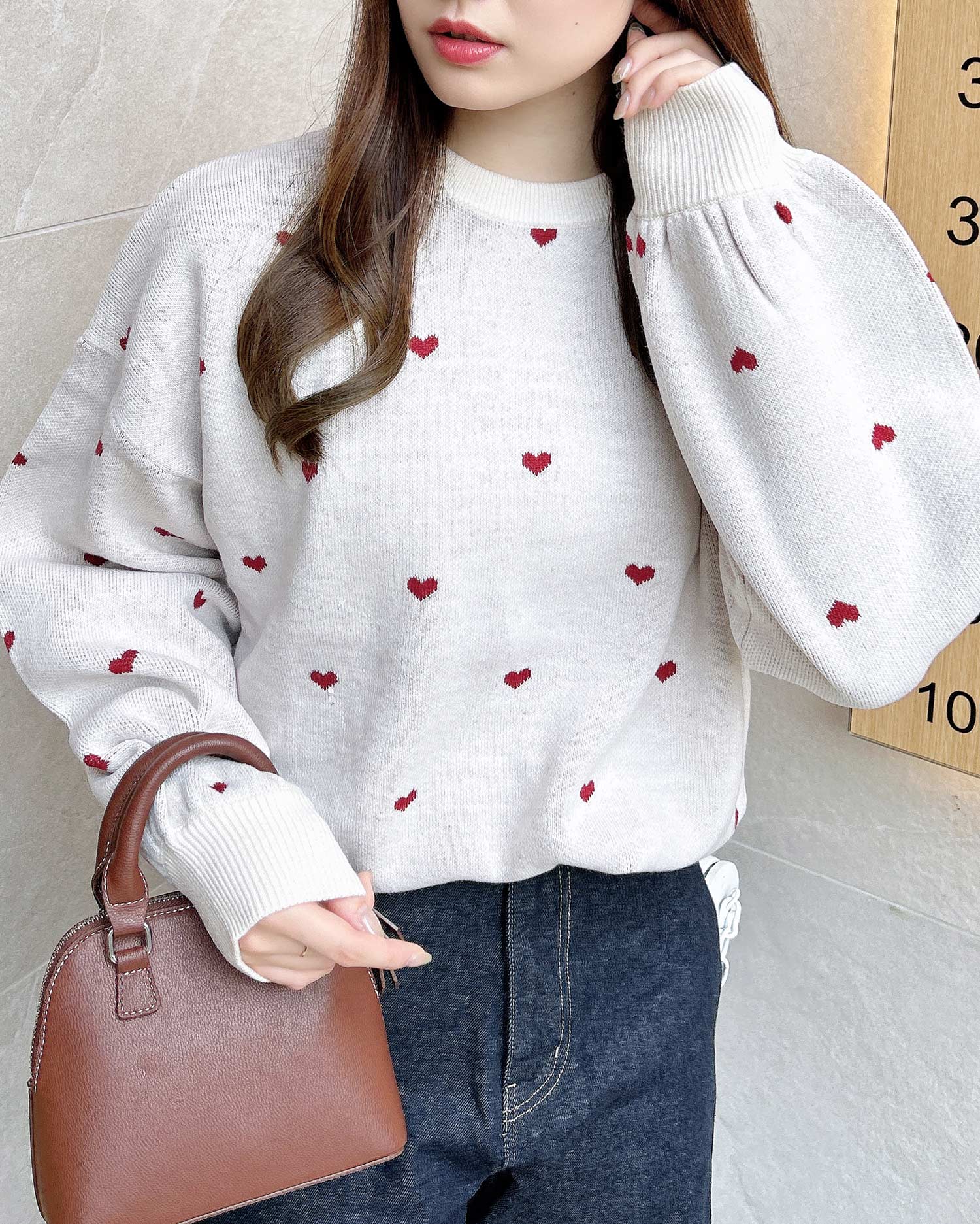 ミニハートの総柄が大人かわいいニットプルオーバー◎