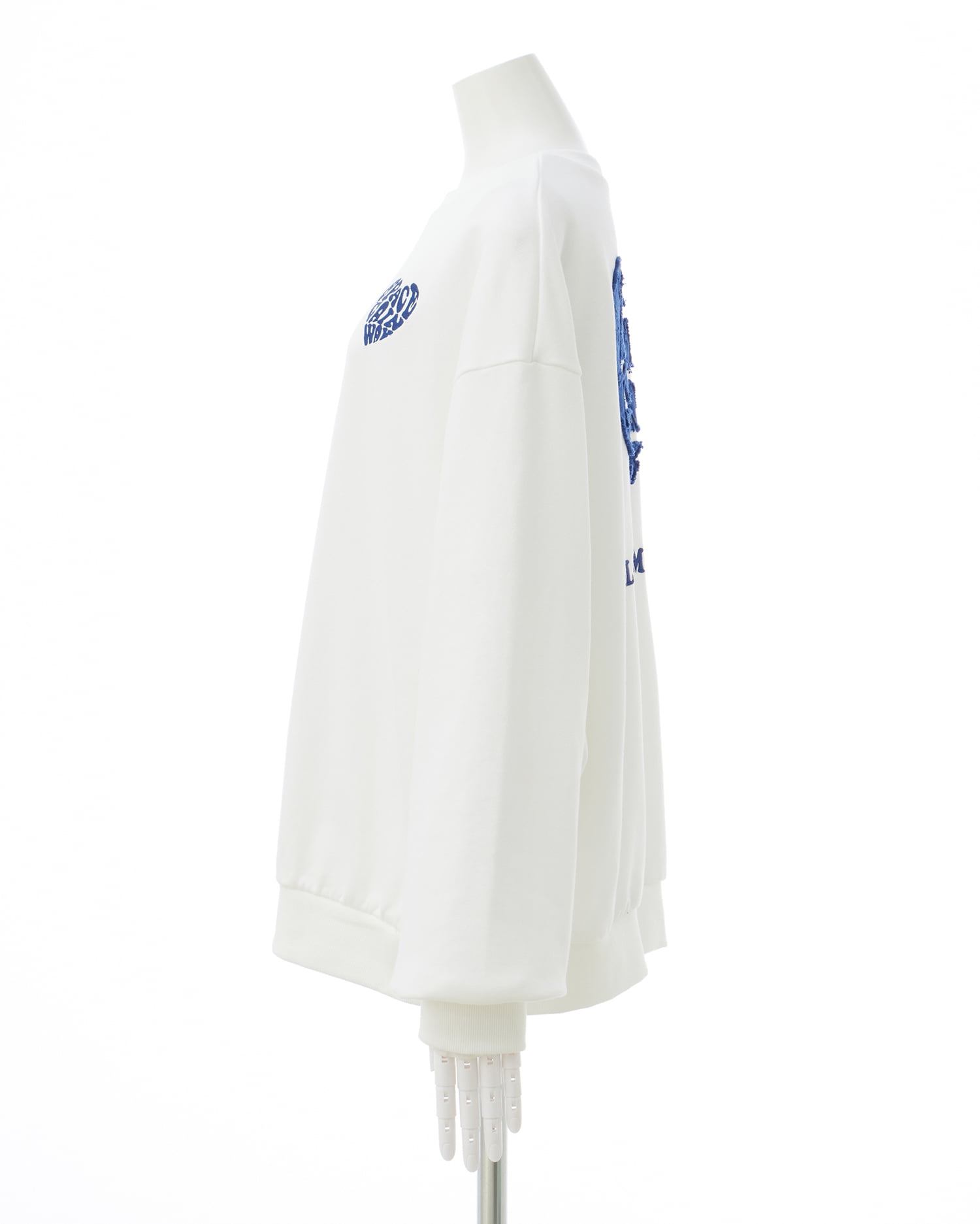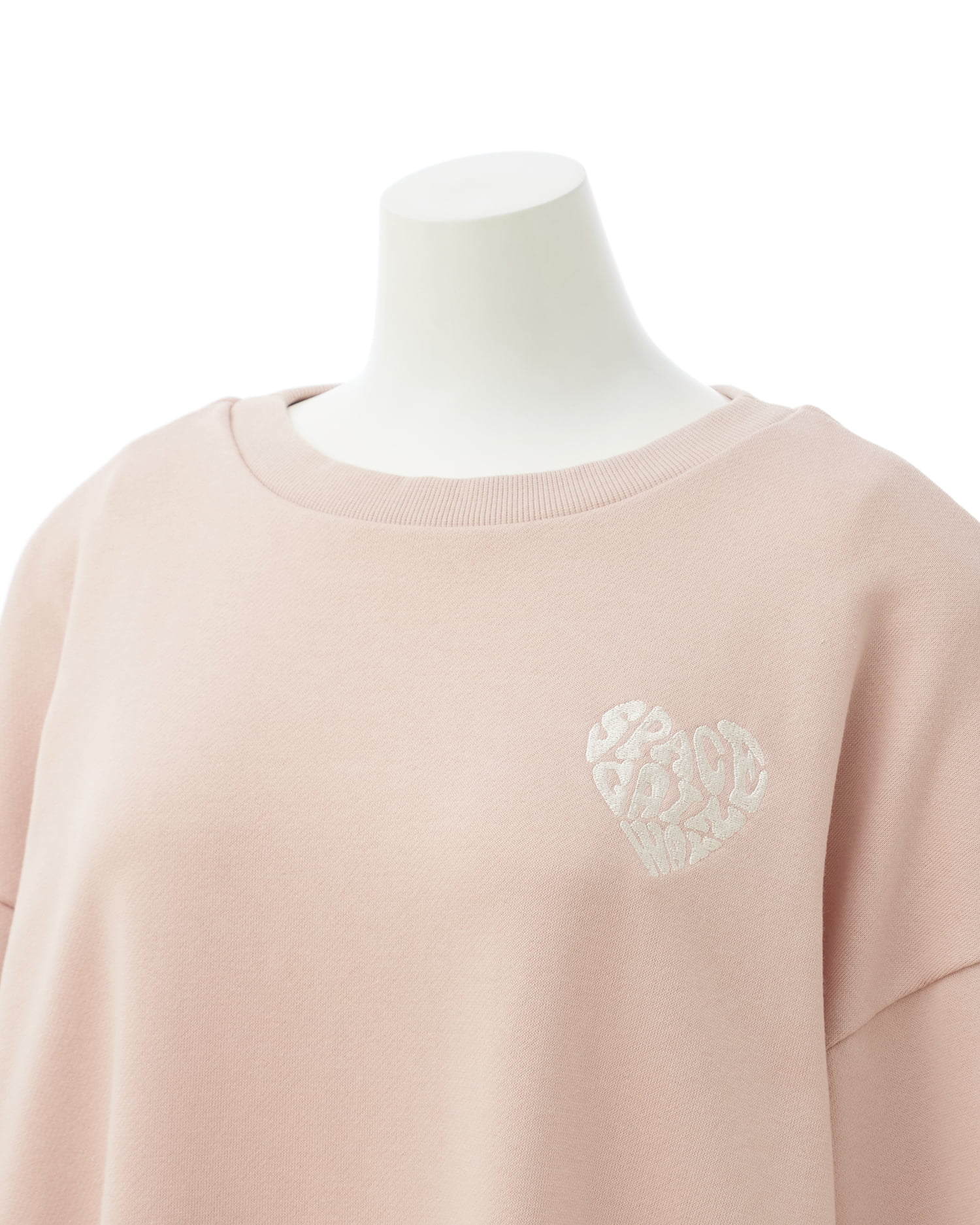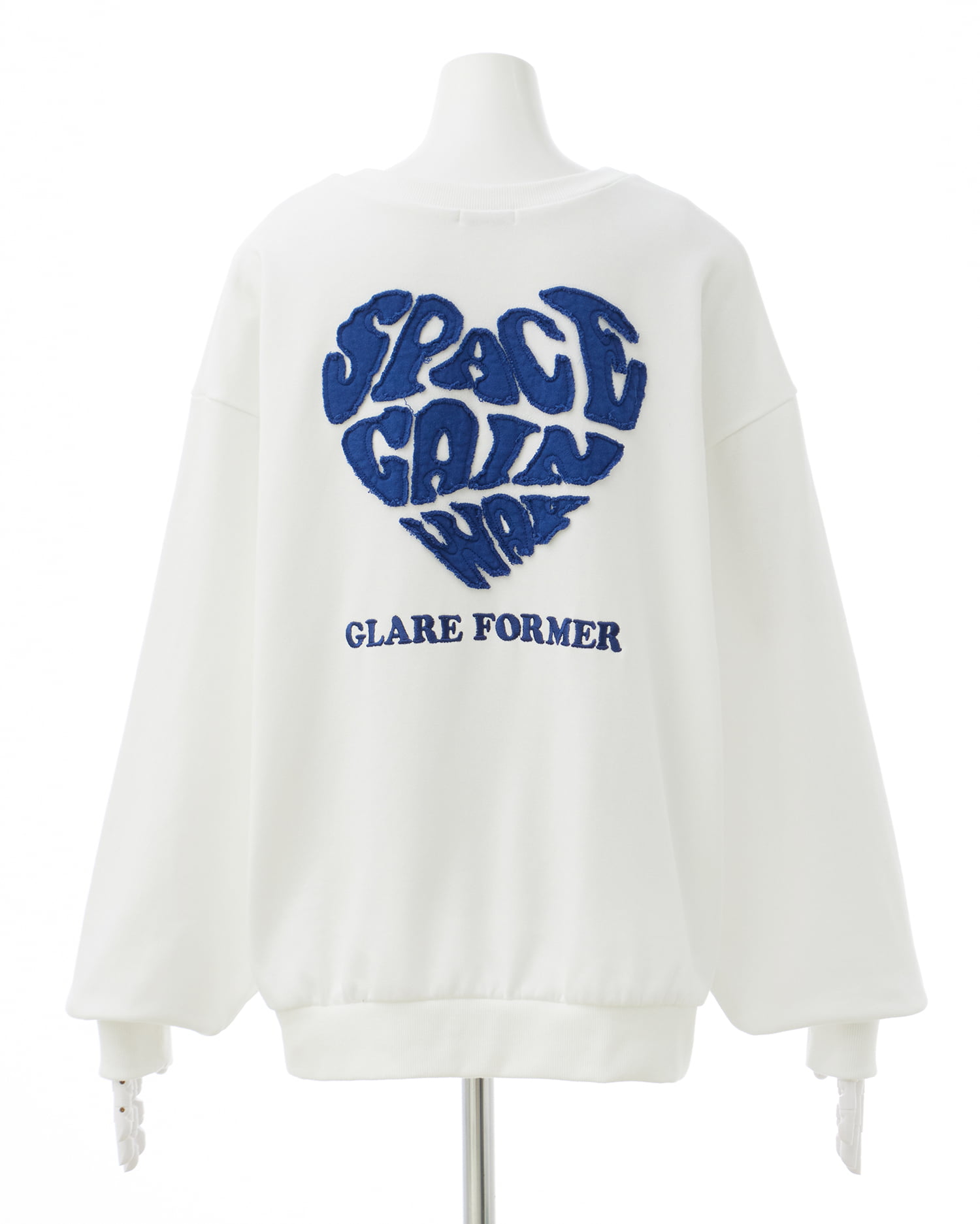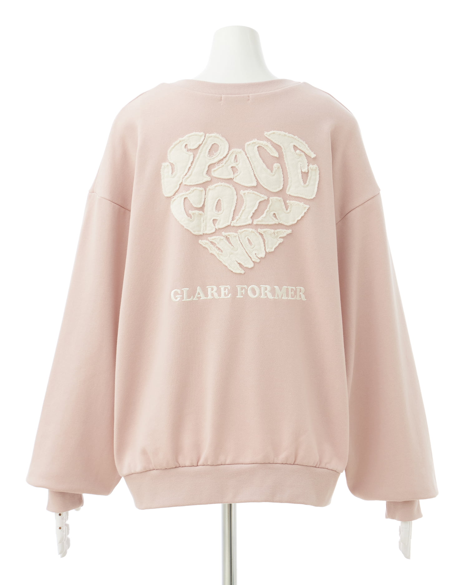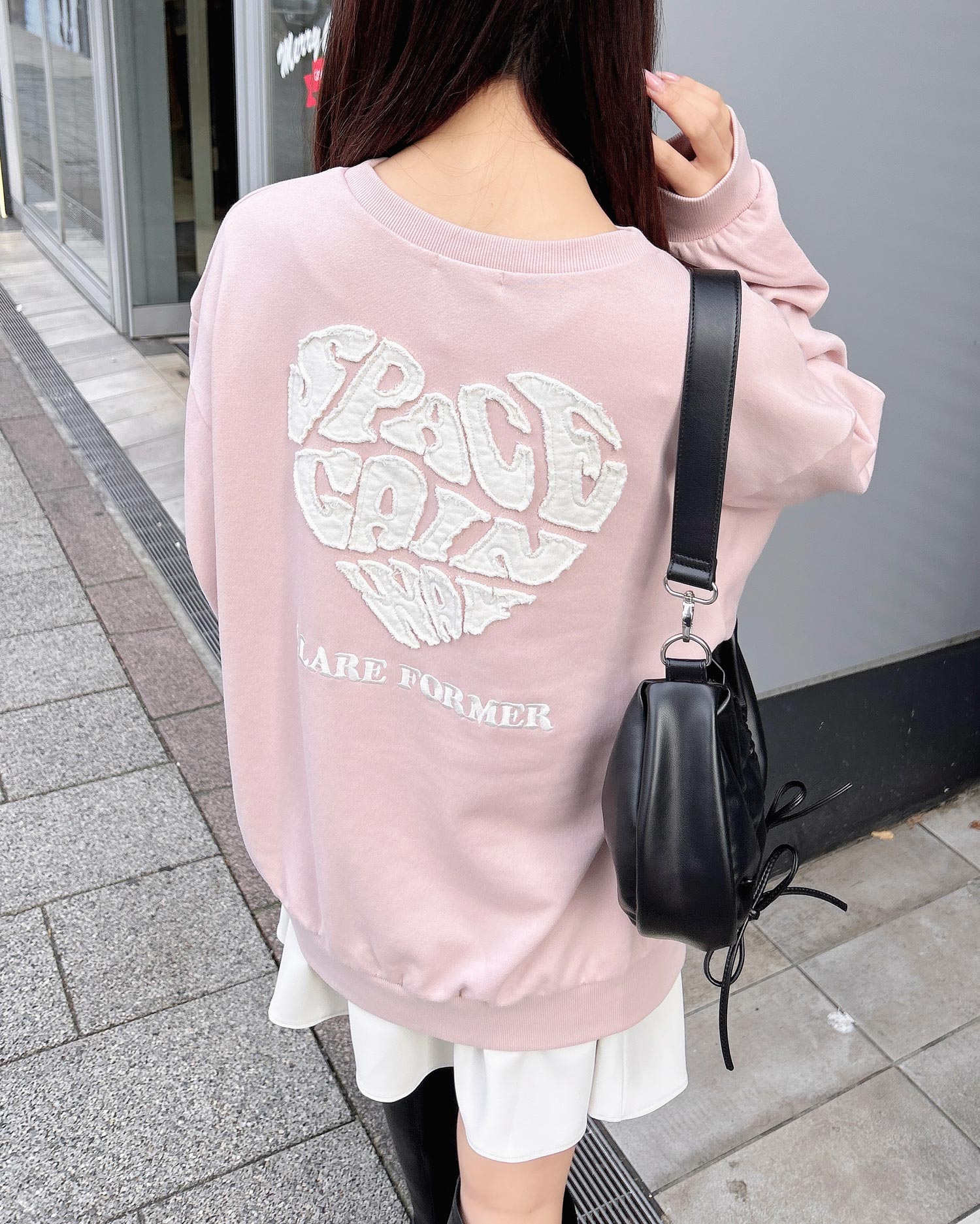 バックのハートロゴがインパクト抜群のスウェットトップス。
