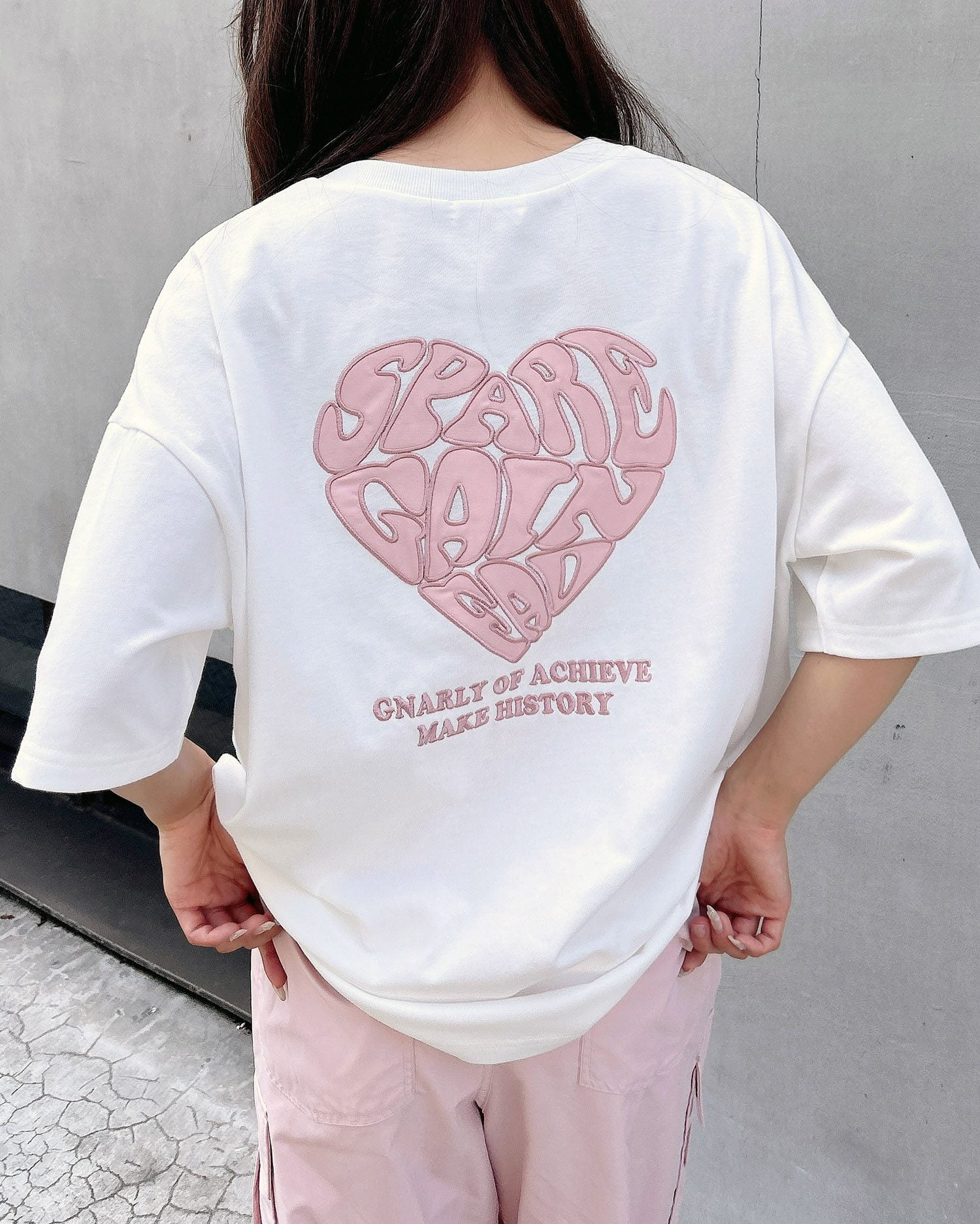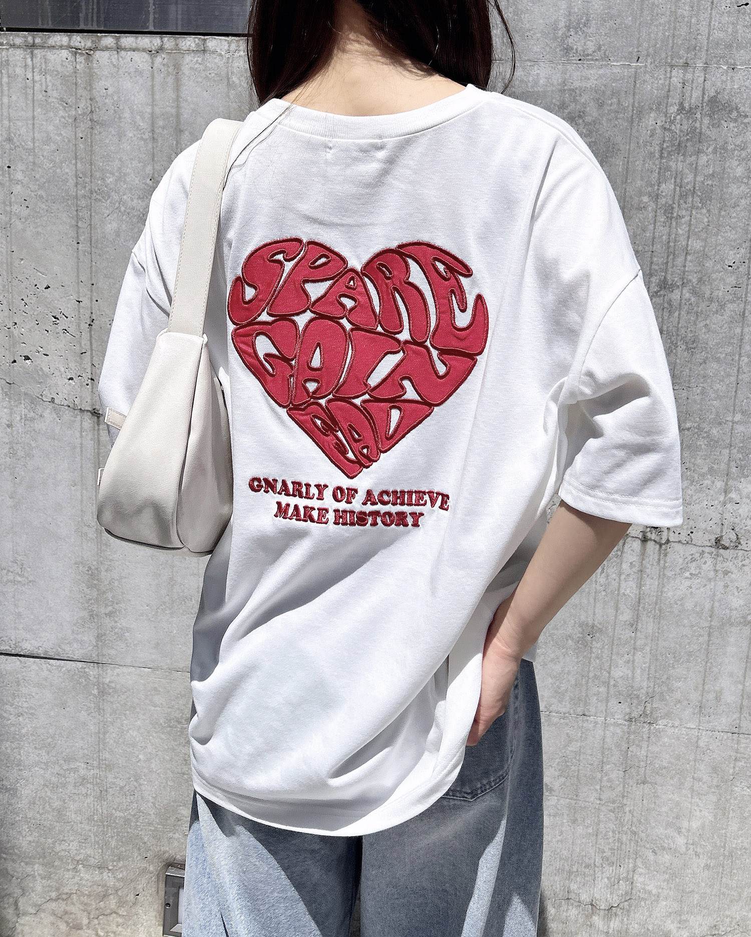 【バックにあしらった大きなハートがインパクト抜群のTシャツ】
