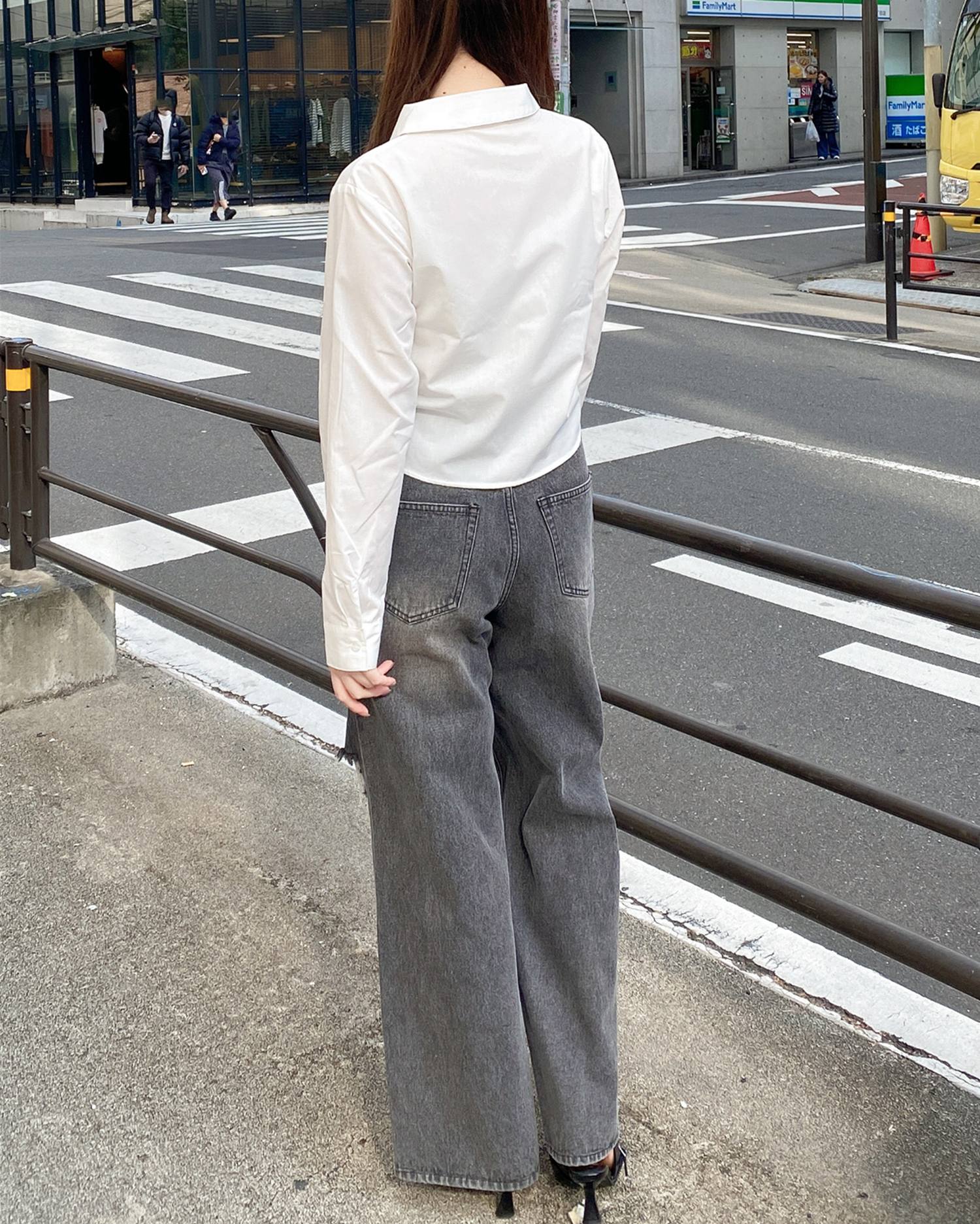 シンプルな無地のシャツにデザインをプラスしてトレンドの1枚に。