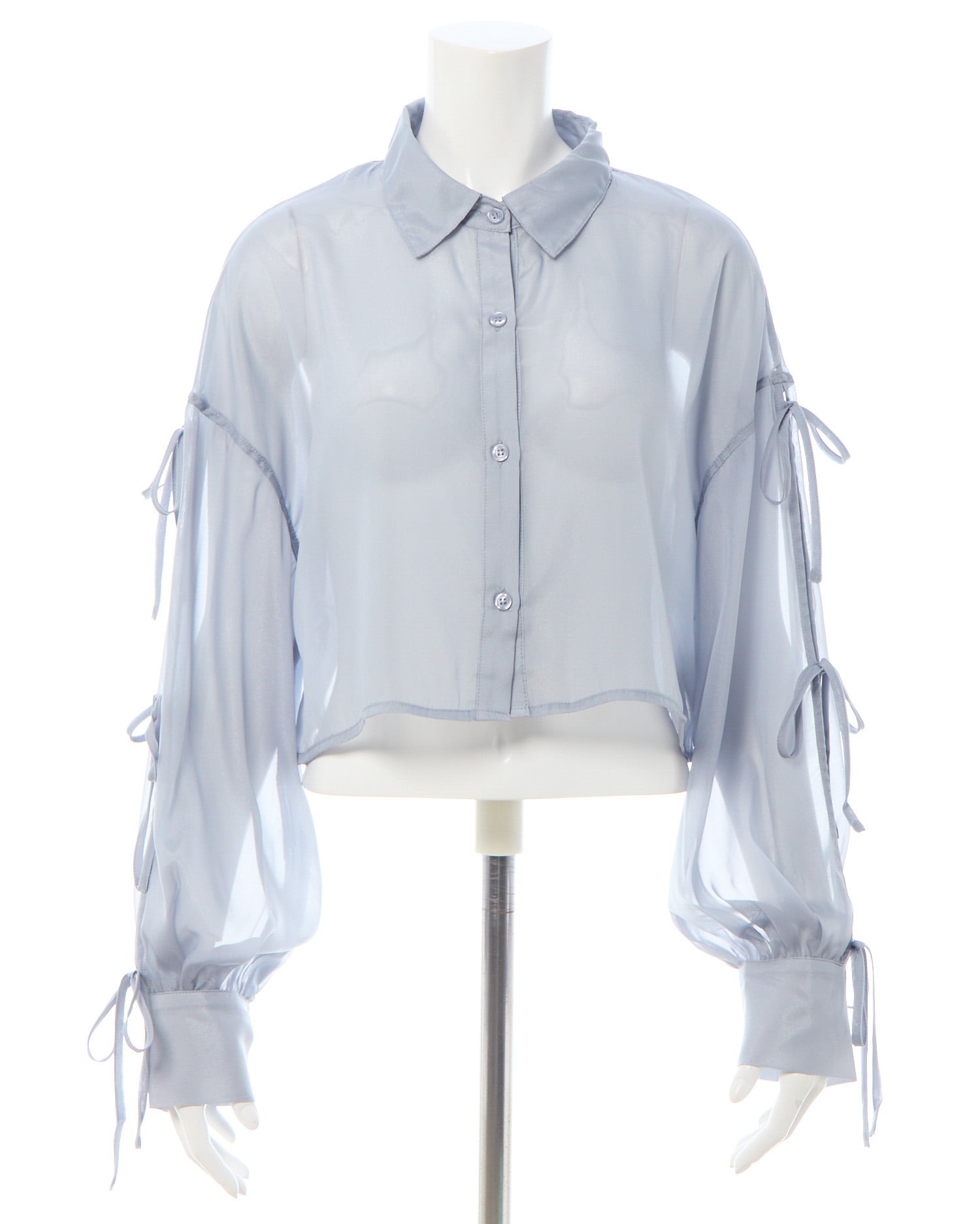 ラメを織り込んだ生地で華やかに仕上げたショート丈のシアーシャツ。