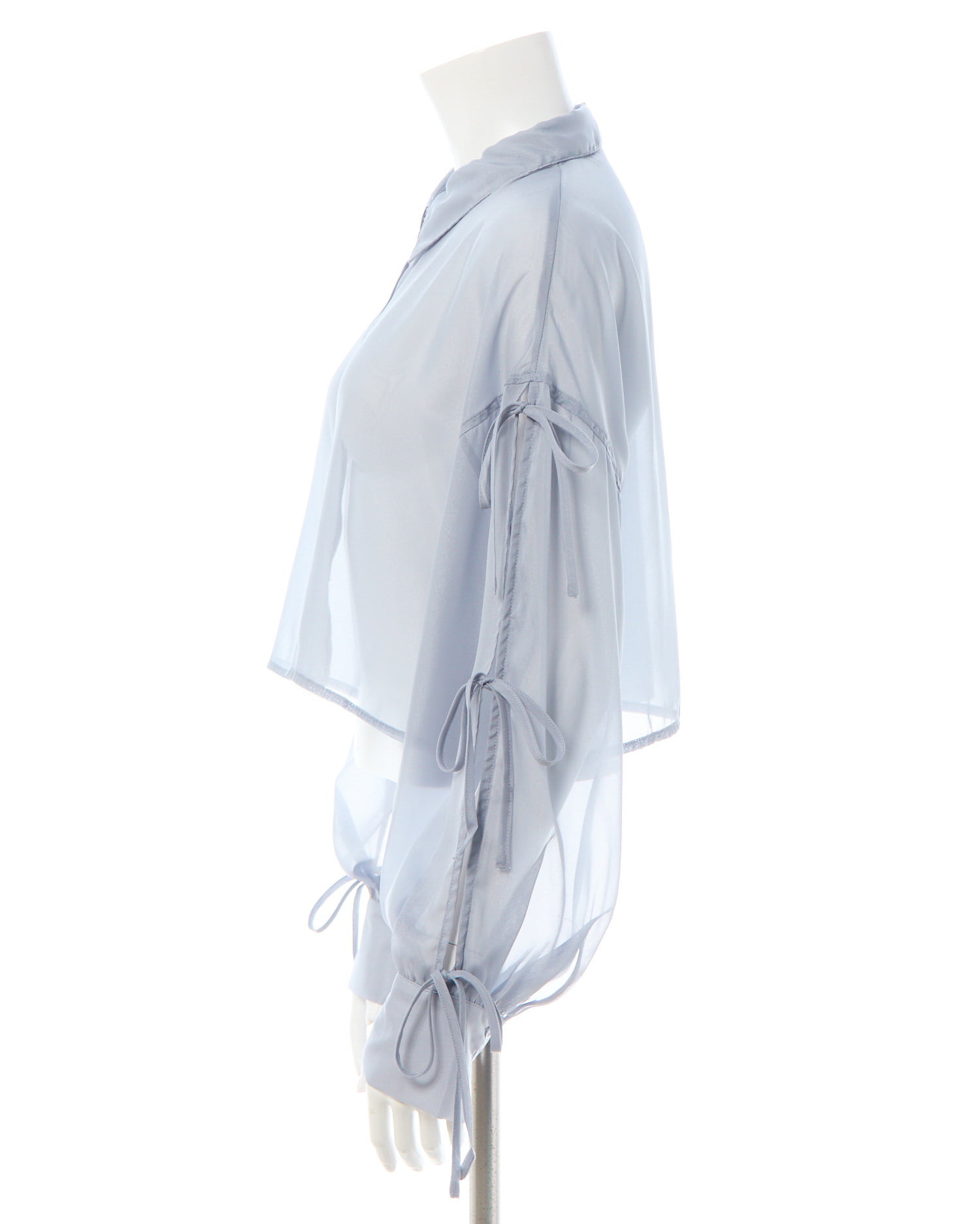 袖の大胆なカッティングとリボンがトレンドライクなアイテムです。