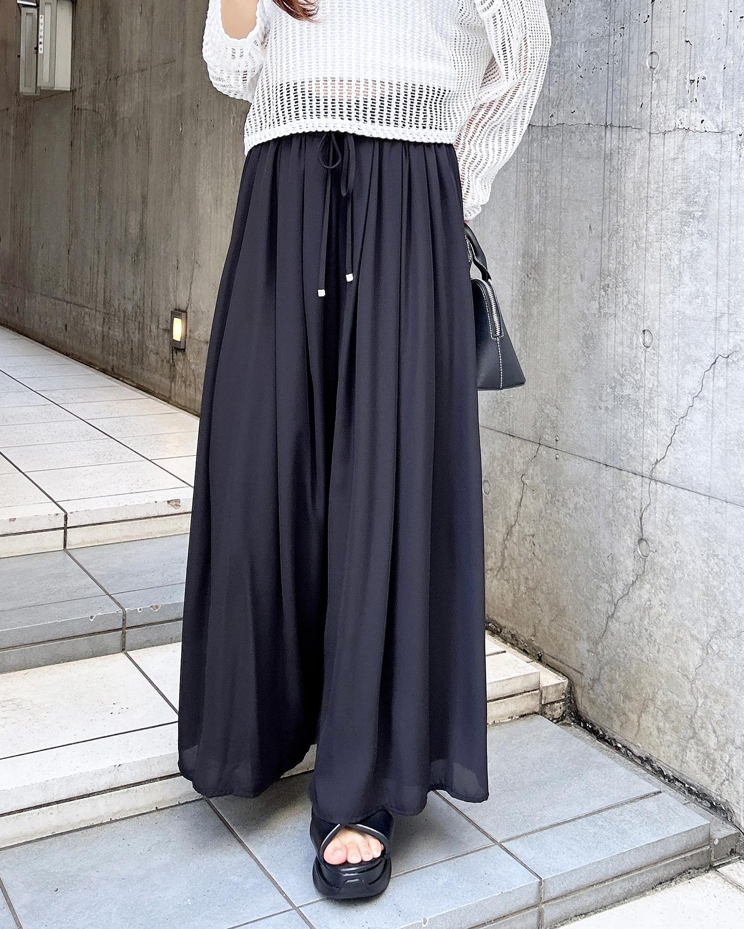 歩く度にふわりと広がる大人フェミニンなスカンツ。