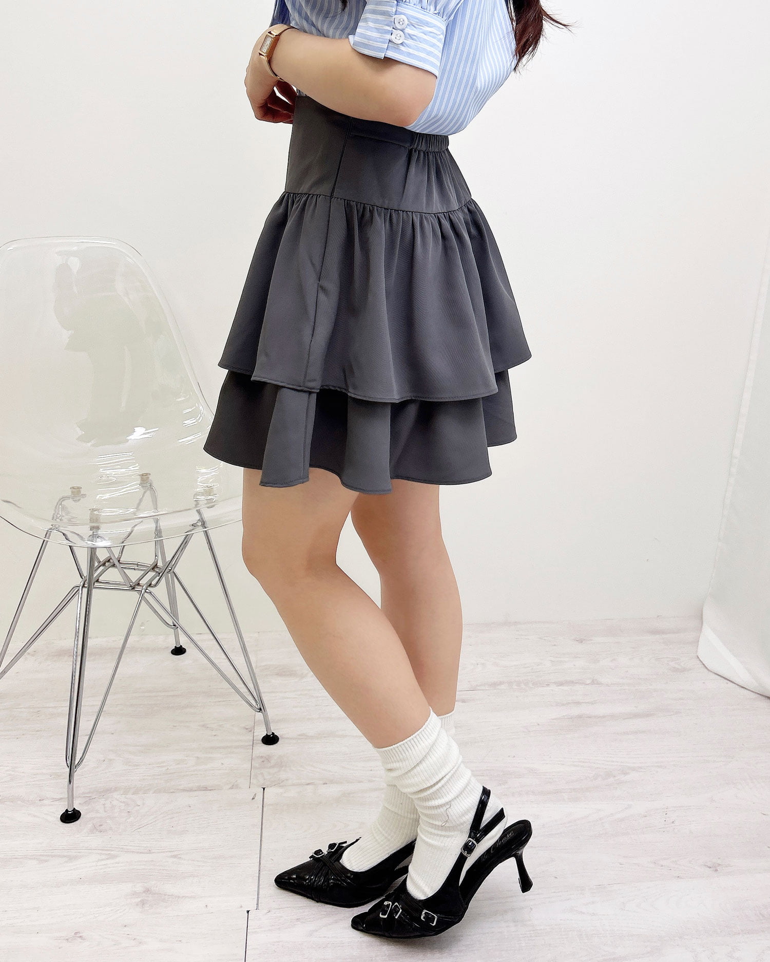 大きなダブルフリルでボリューム感たっぷりに仕上げたミニスカパン。