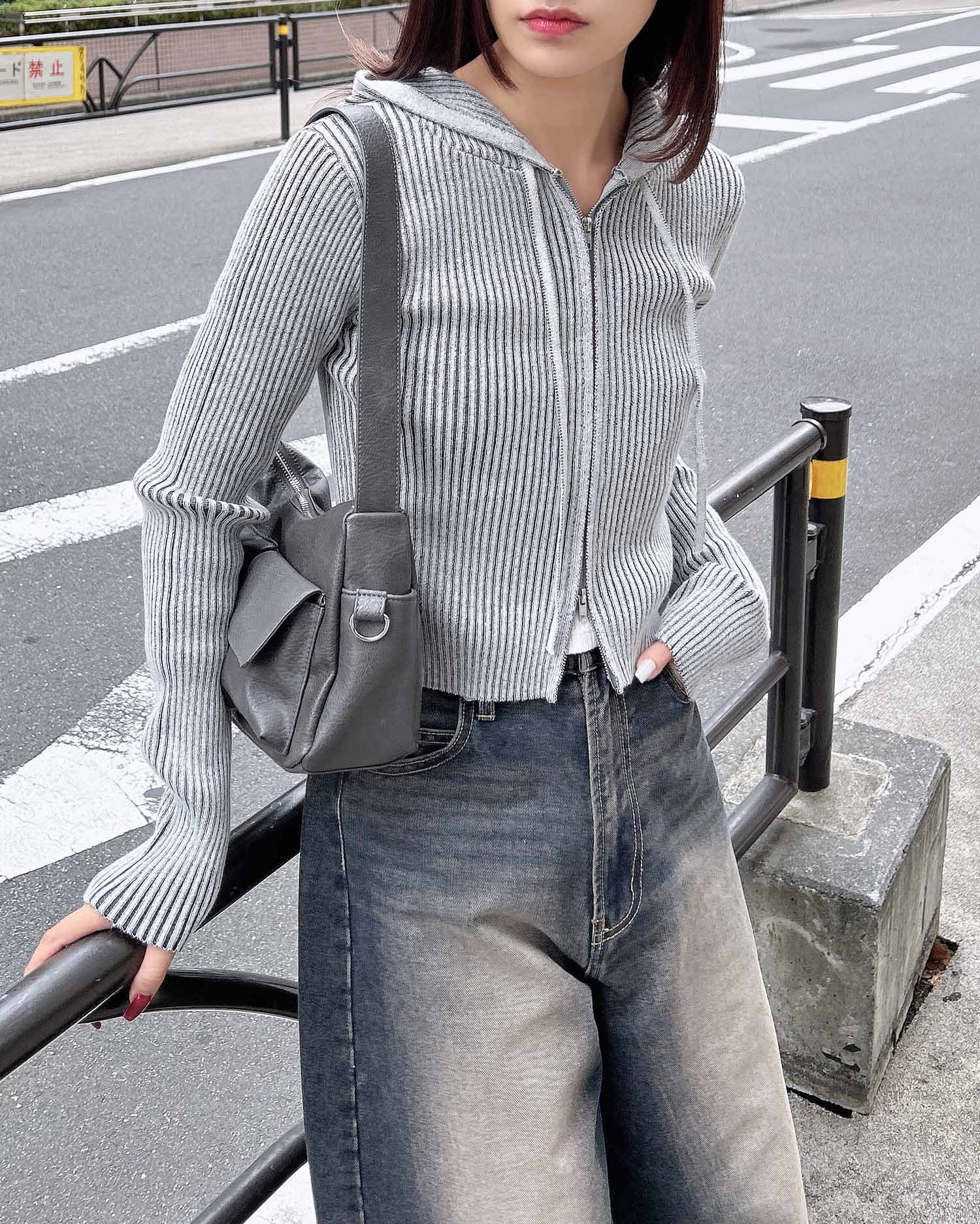 コンパクトなシルエットでスタイルアップを叶えるニットパーカー。