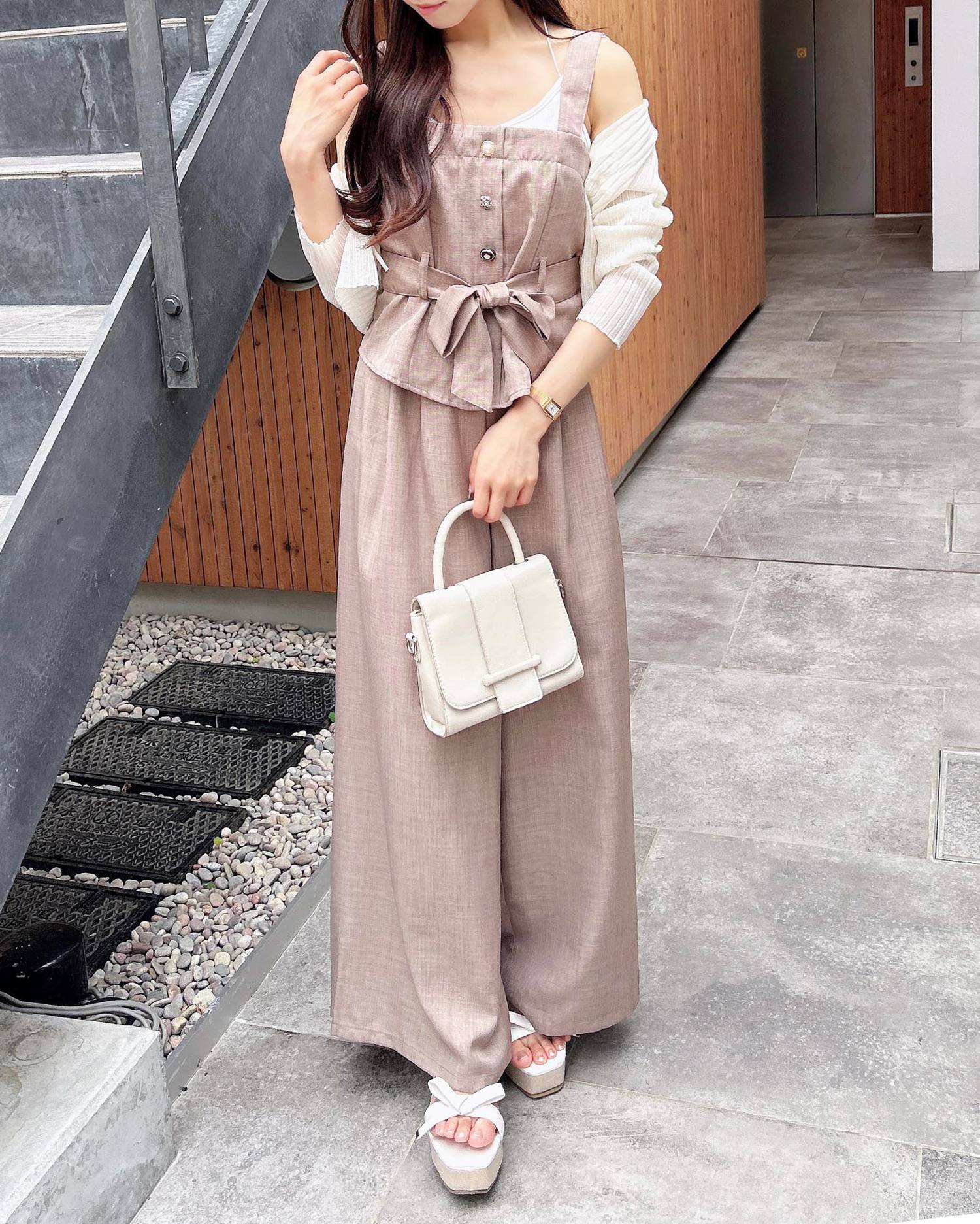 キャミソールとワイドパンツの大人スタイリッシュなアンサンブルの登場です。