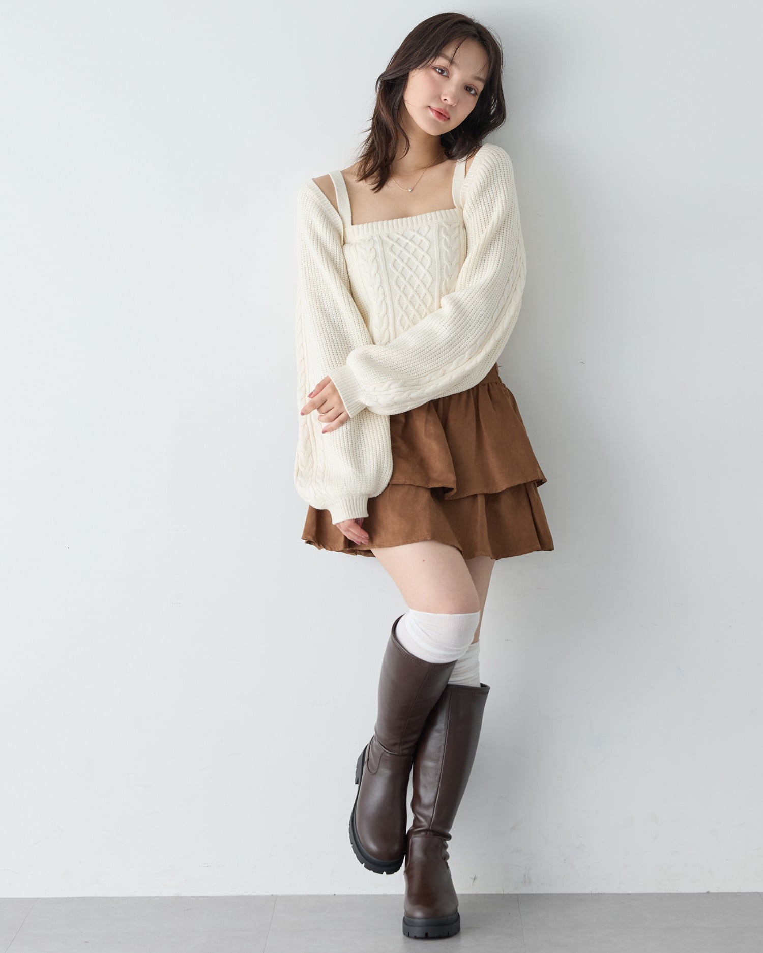 ミニ丈のボトムスを合わせたアクティブスタイルもおすすめです。
