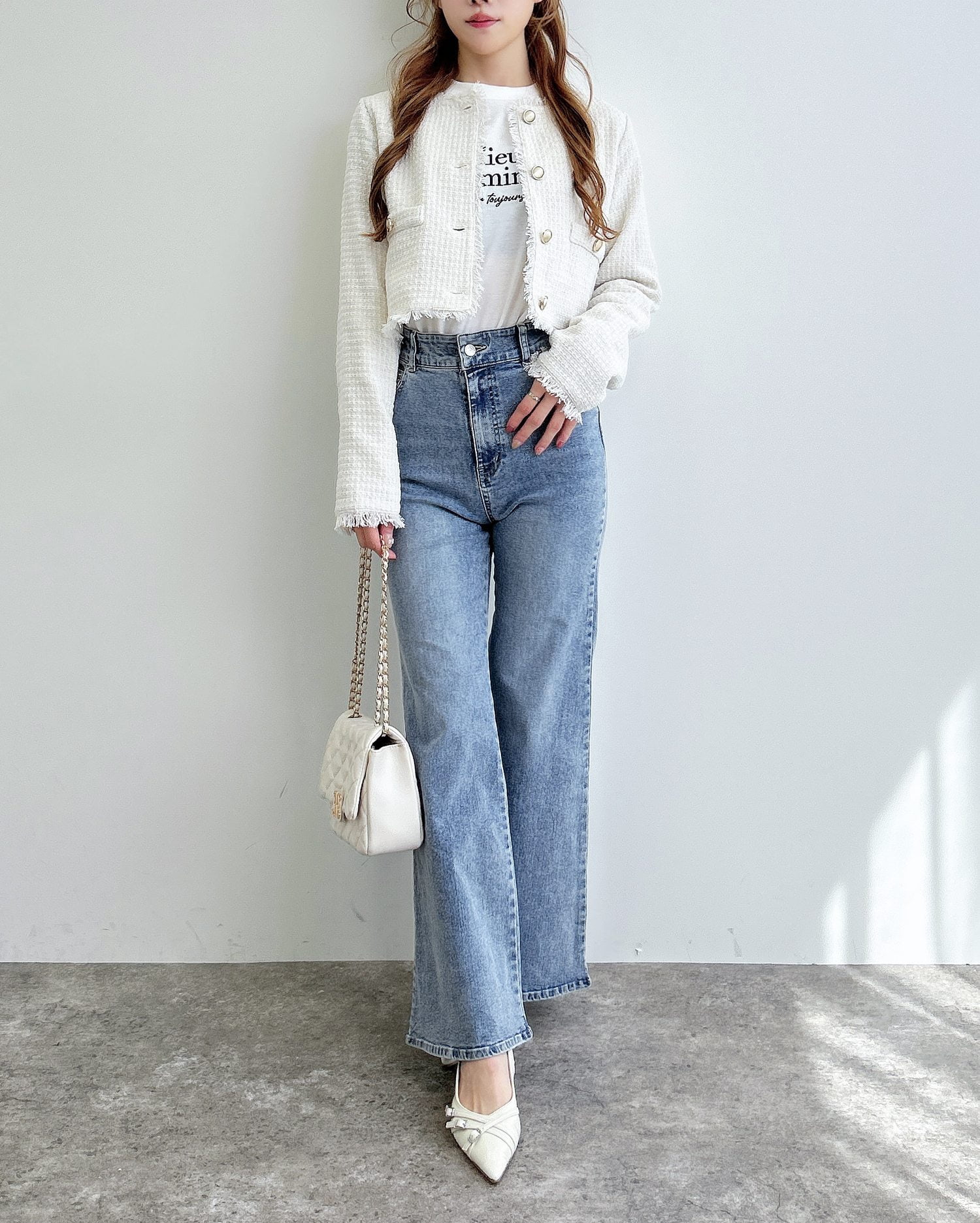 ベーシックなシルエットでどんなボトムスにも合わせやすくなっています。