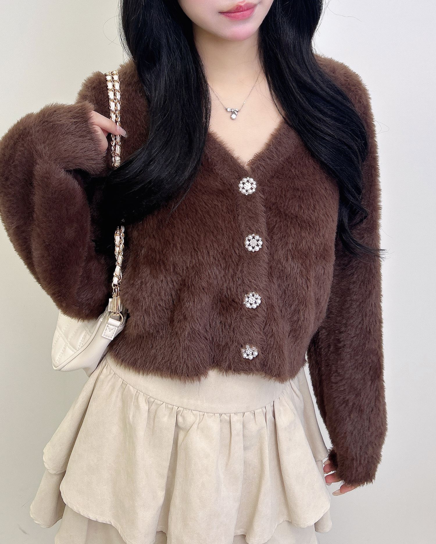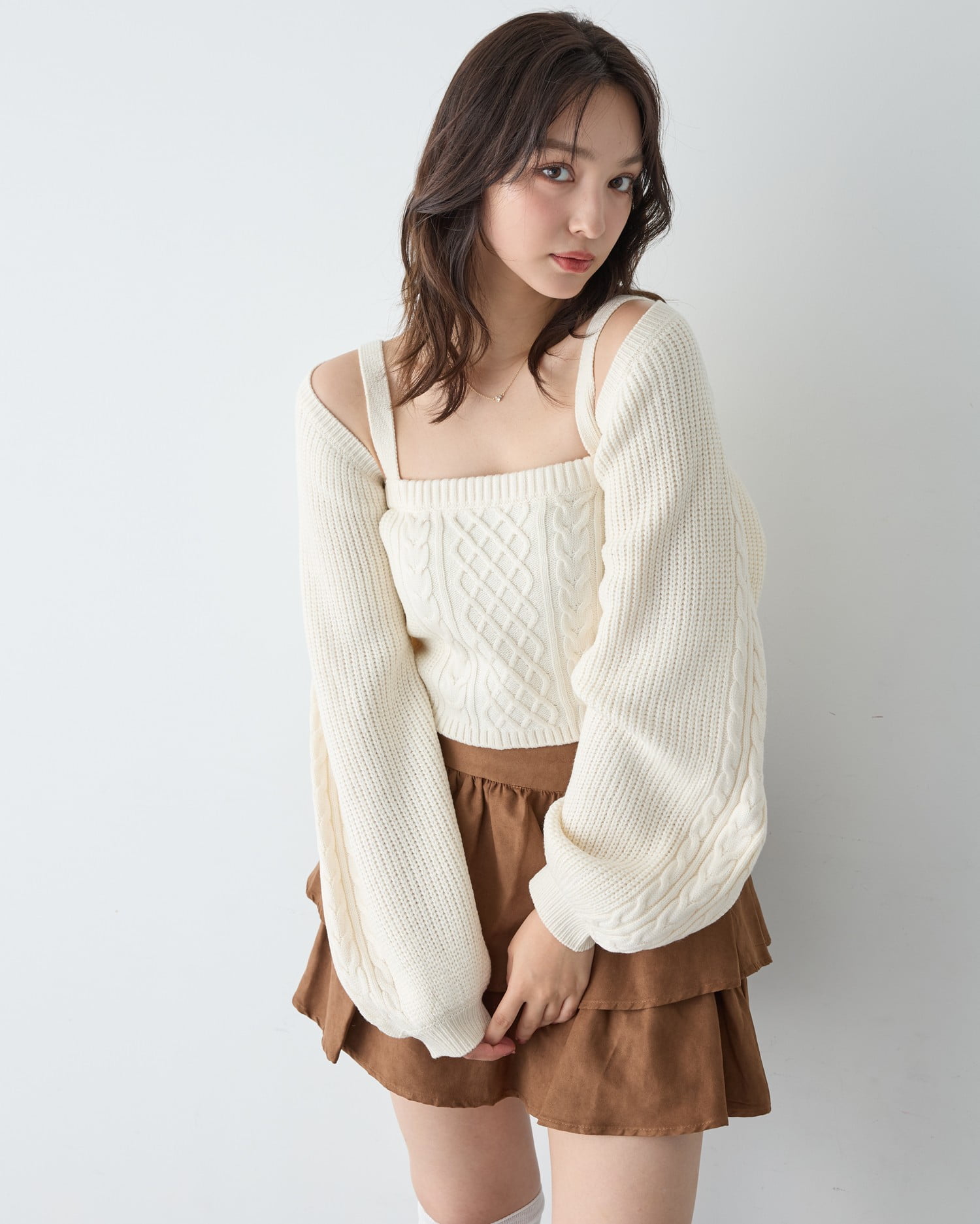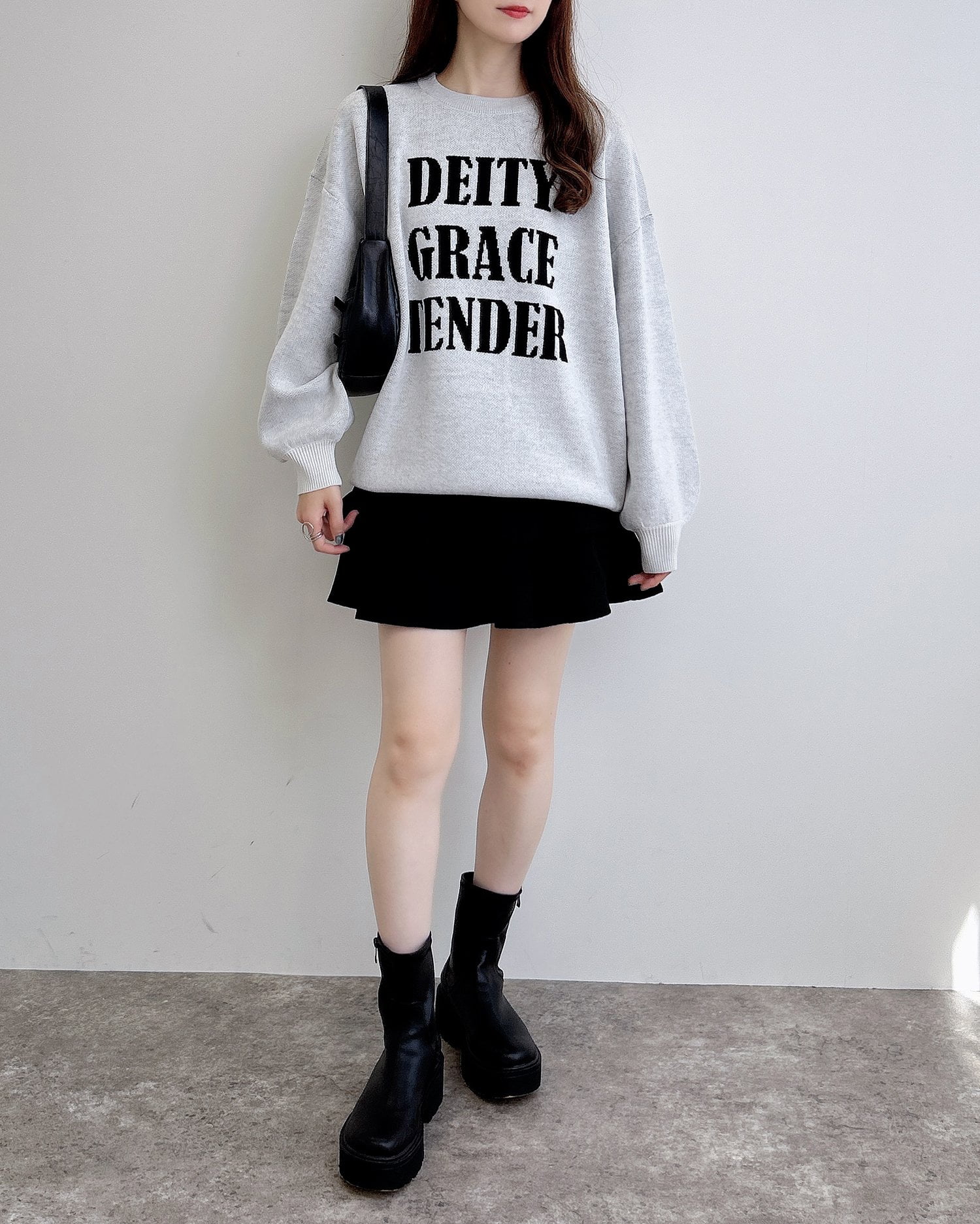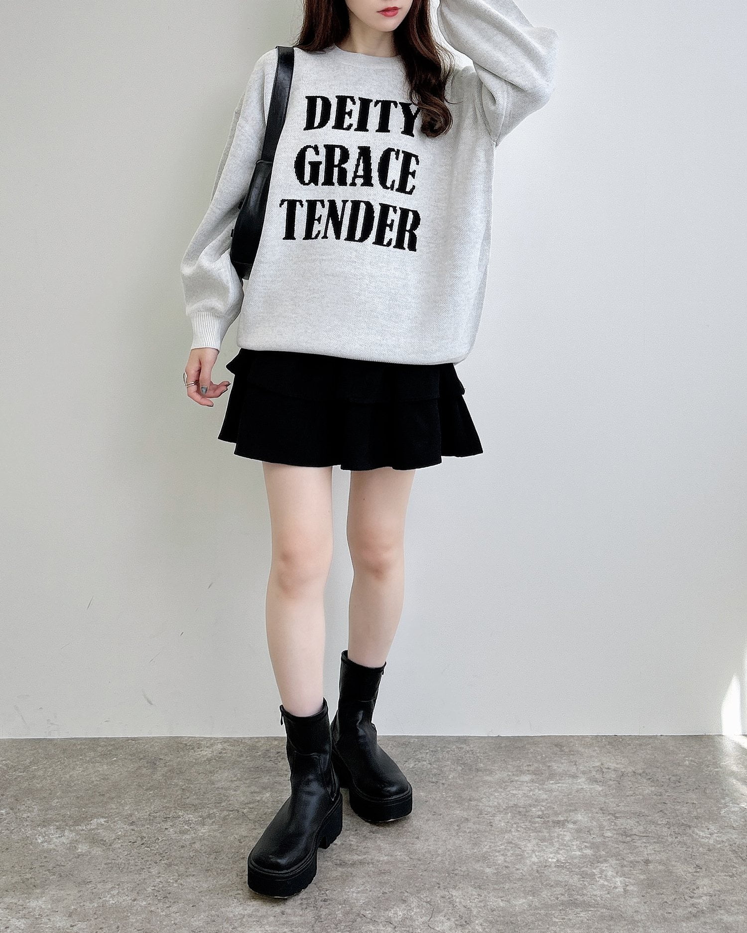 ニットやカーディガンに足元はブーツを合わせてガーリースタイルに。