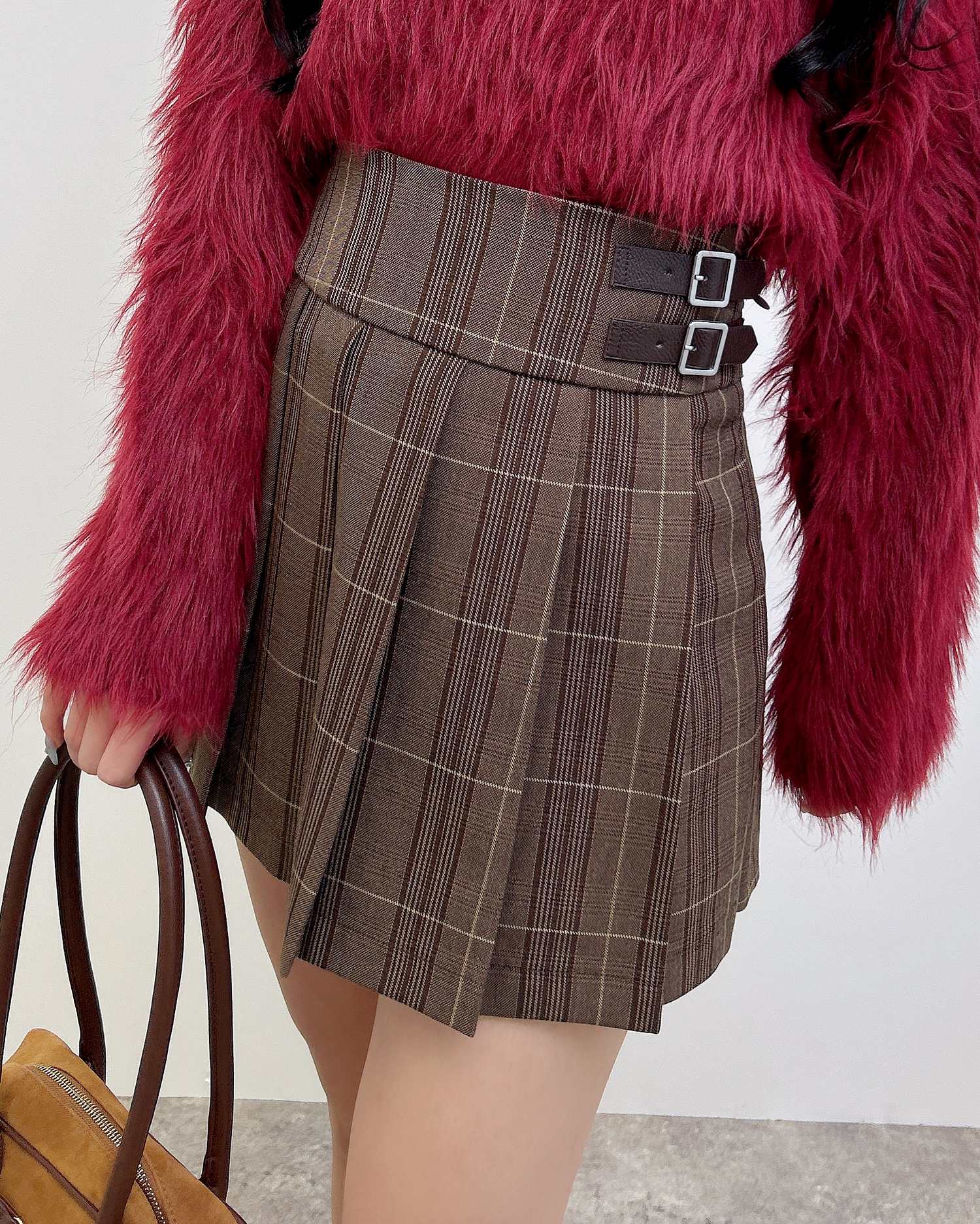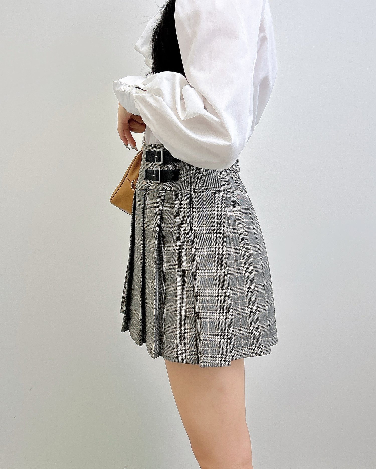 【全体にあしらったチェック柄がトラッドな雰囲気のスカパン】