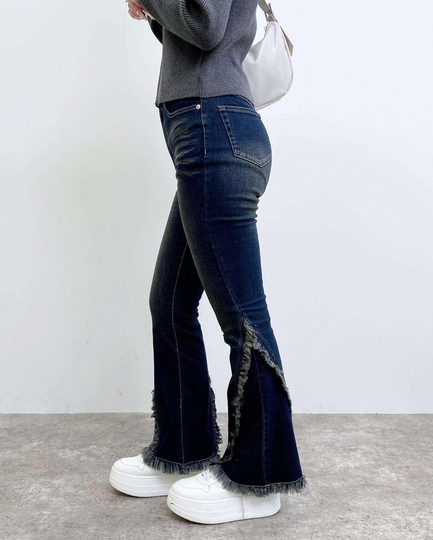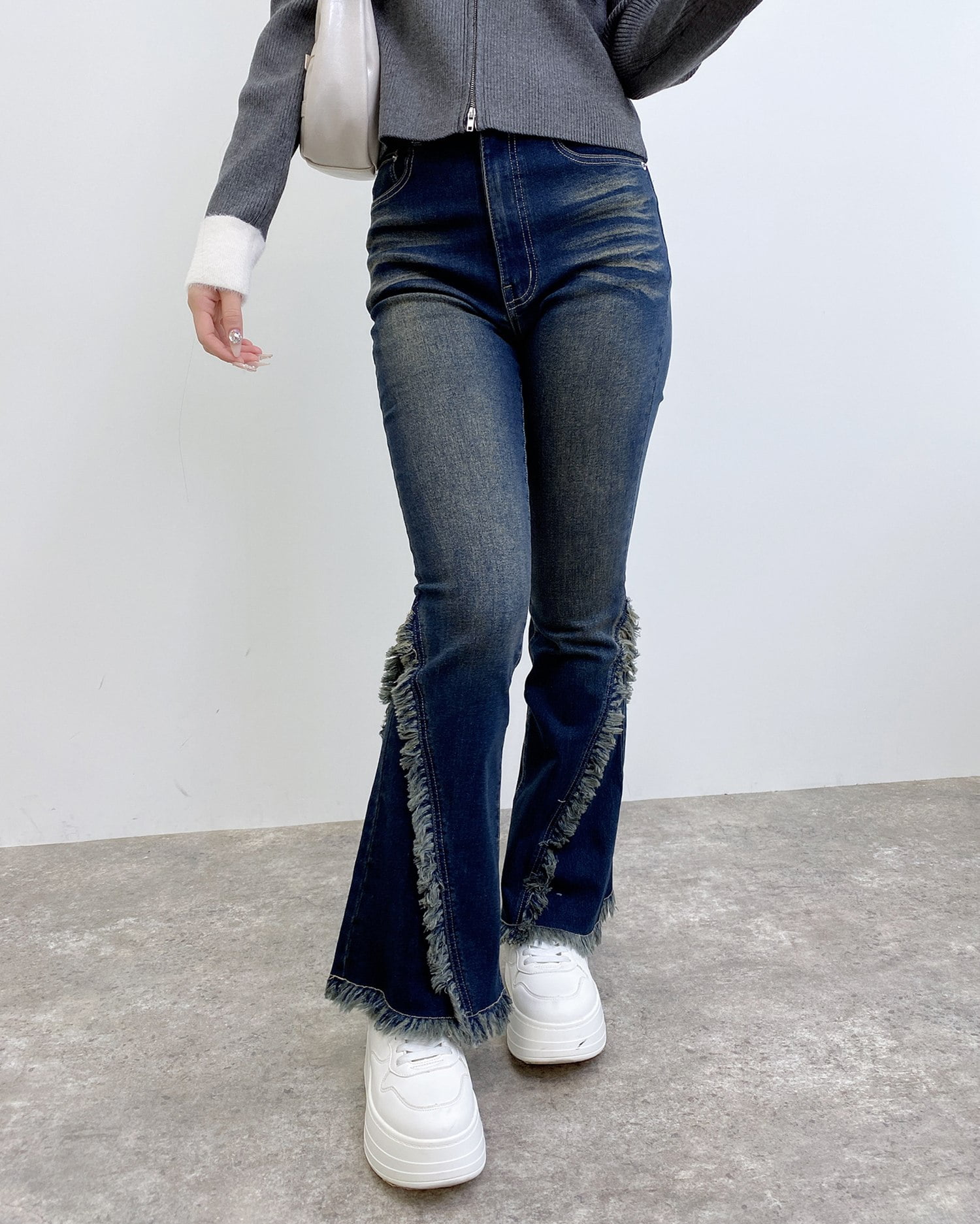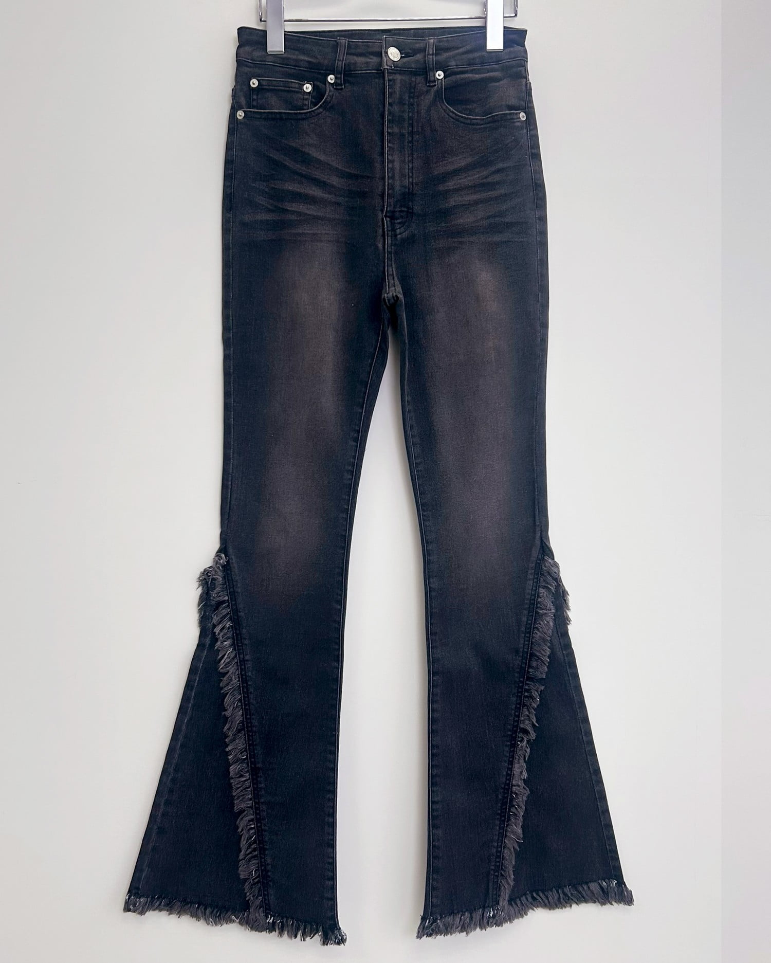 使いやすいフレアパンツの裾にたっぷりとフリンジがあしらわれています。