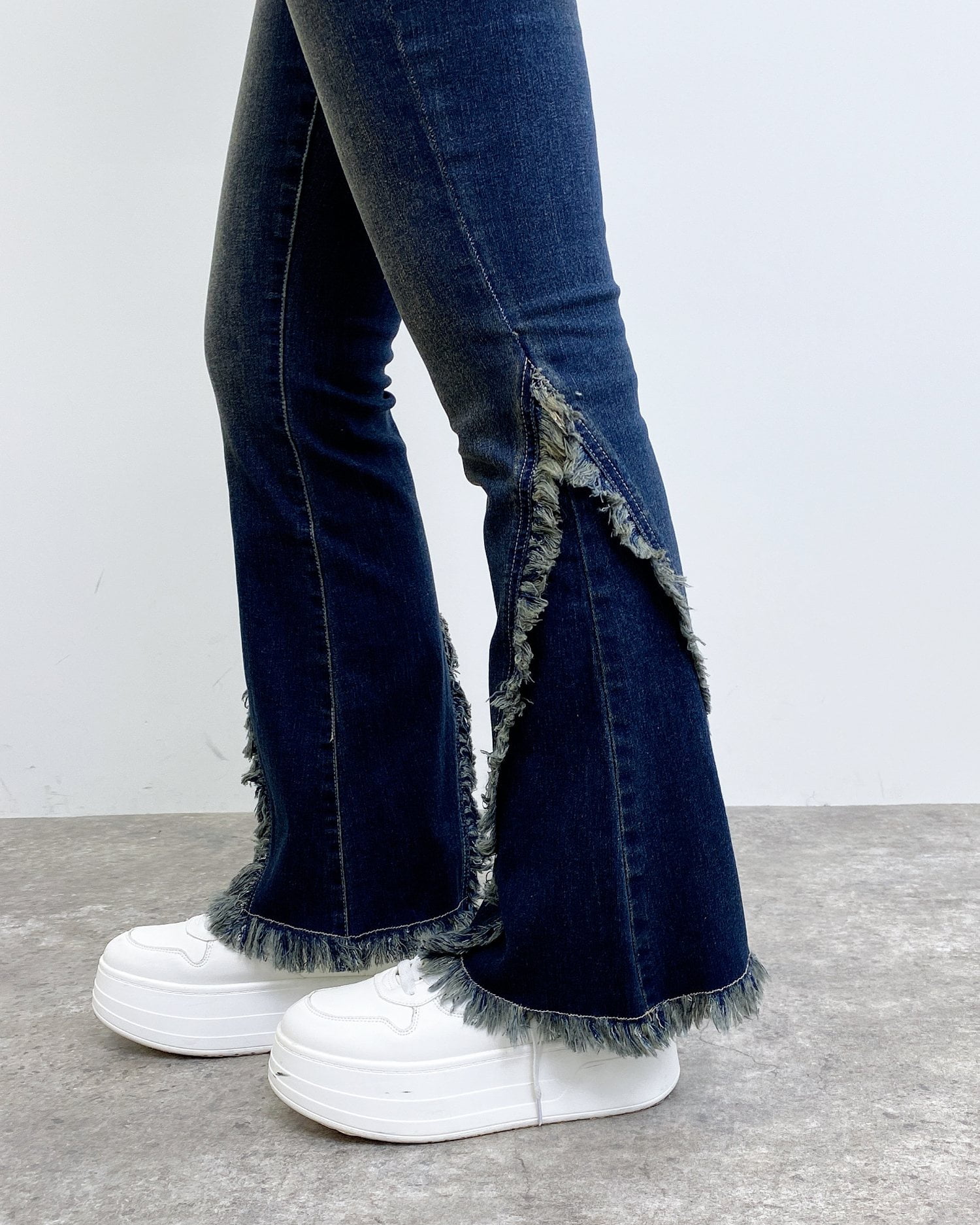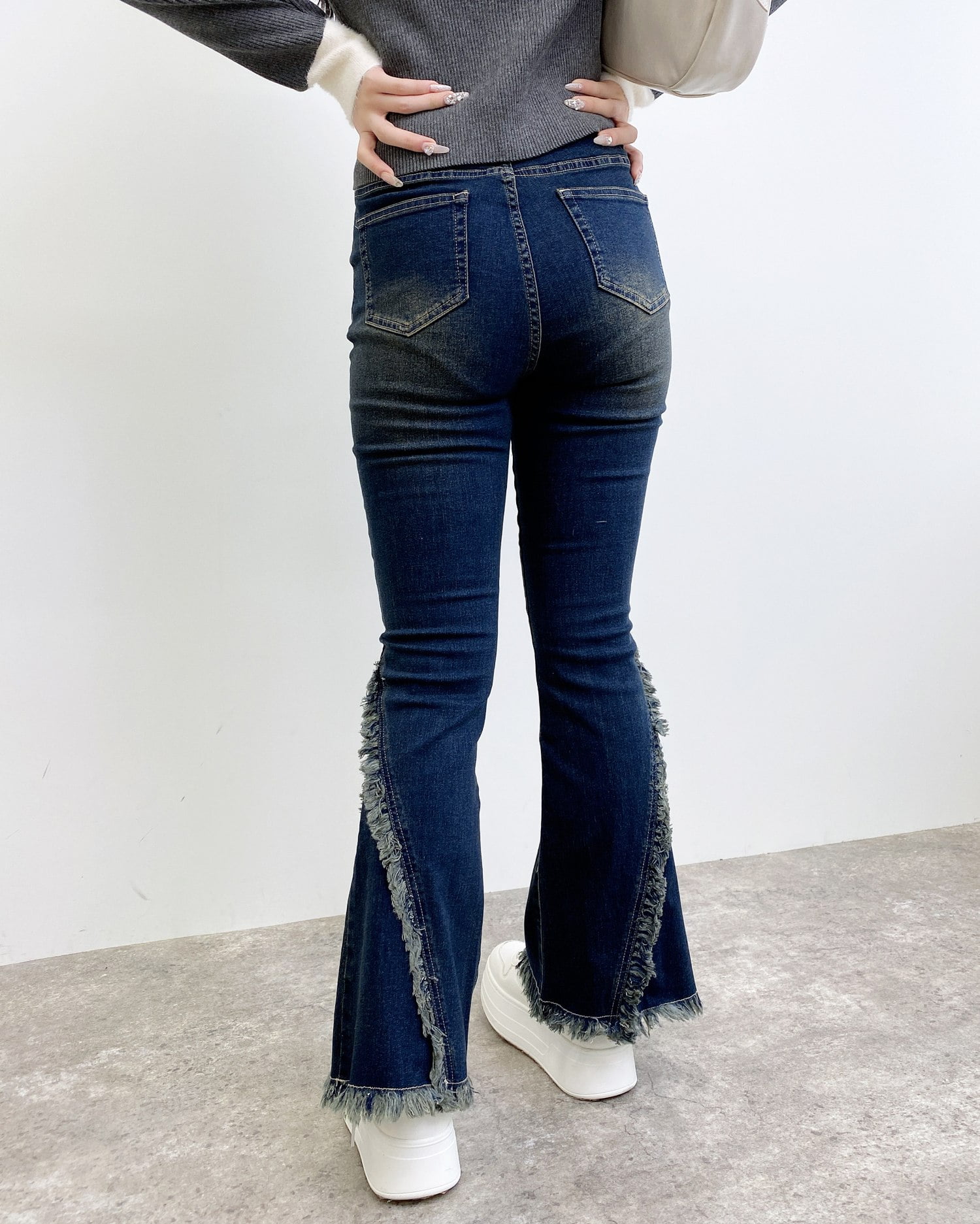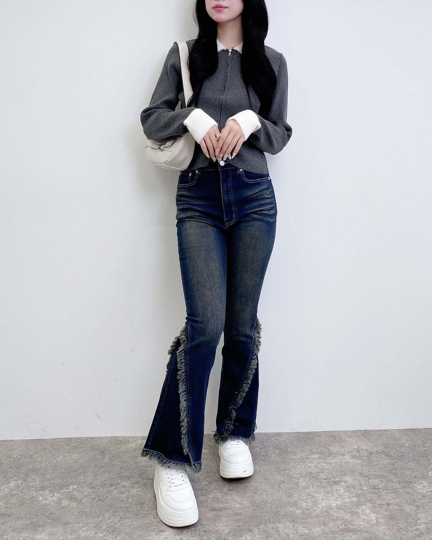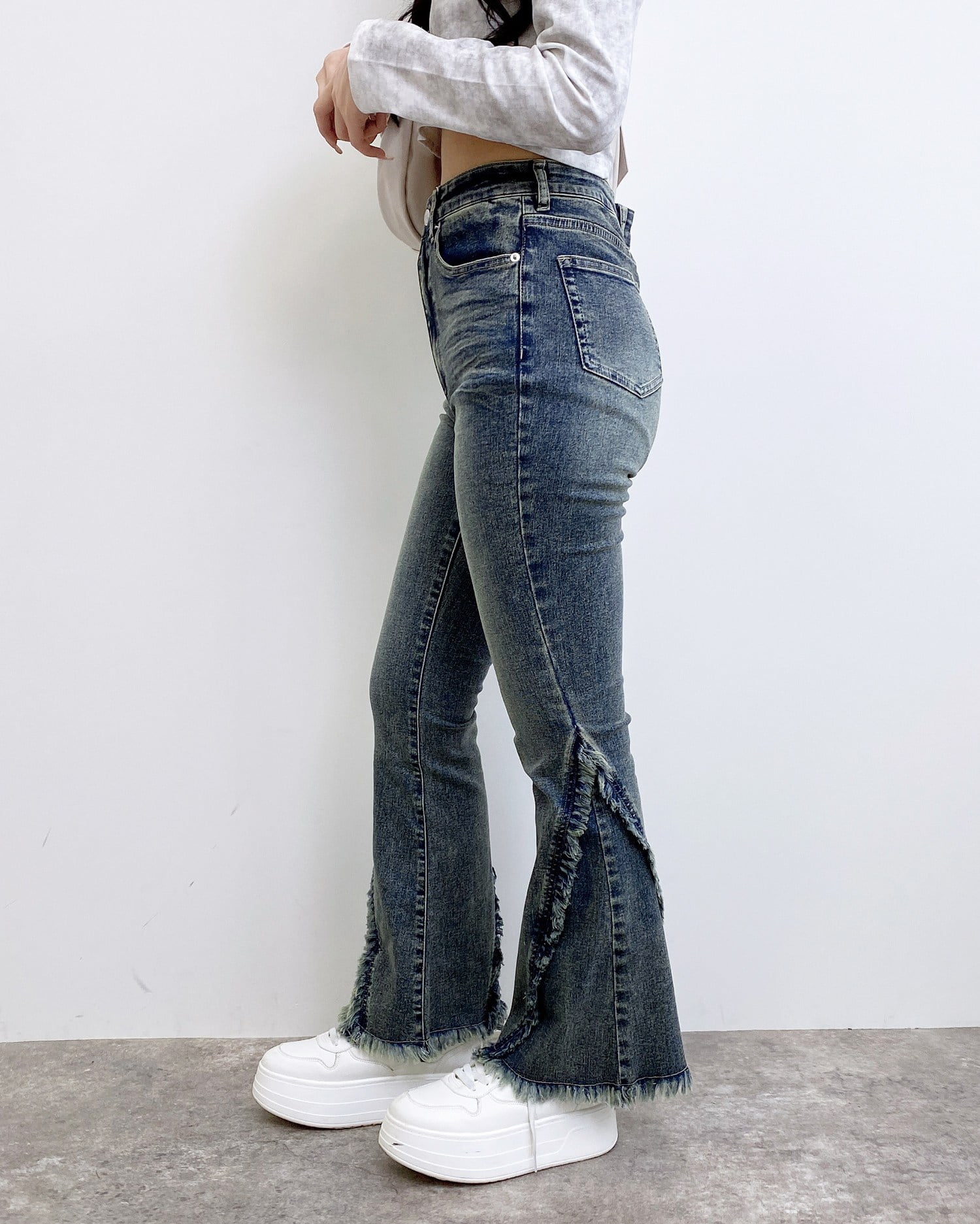 使いやすいフレアパンツの裾にたっぷりとフリンジがあしらわれています。