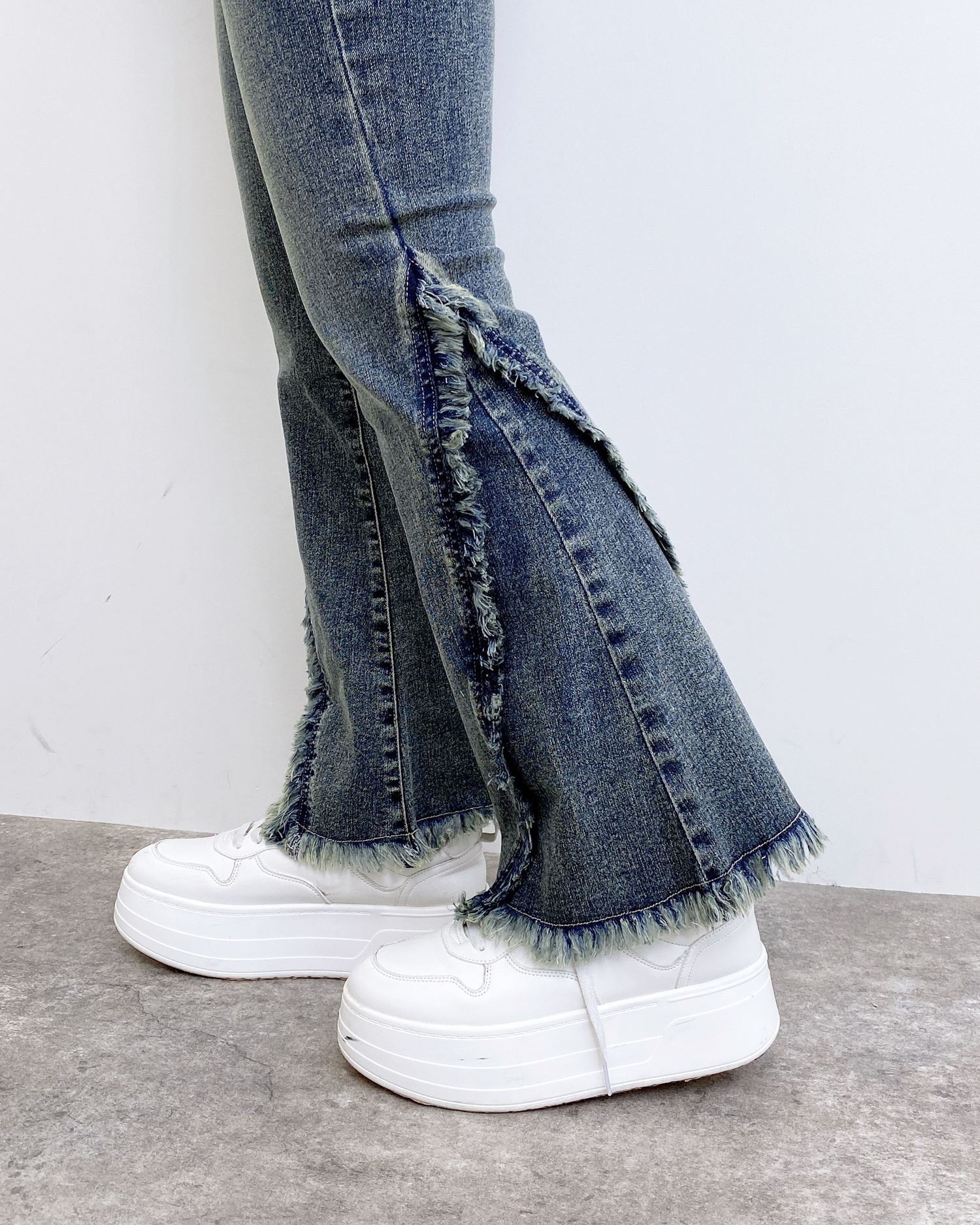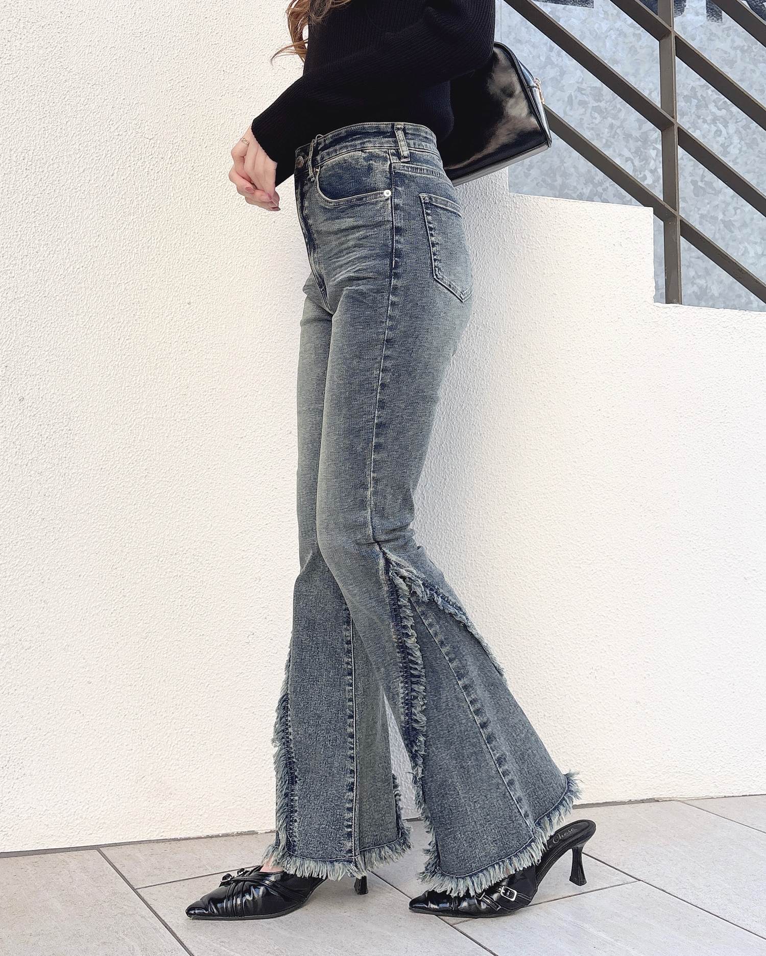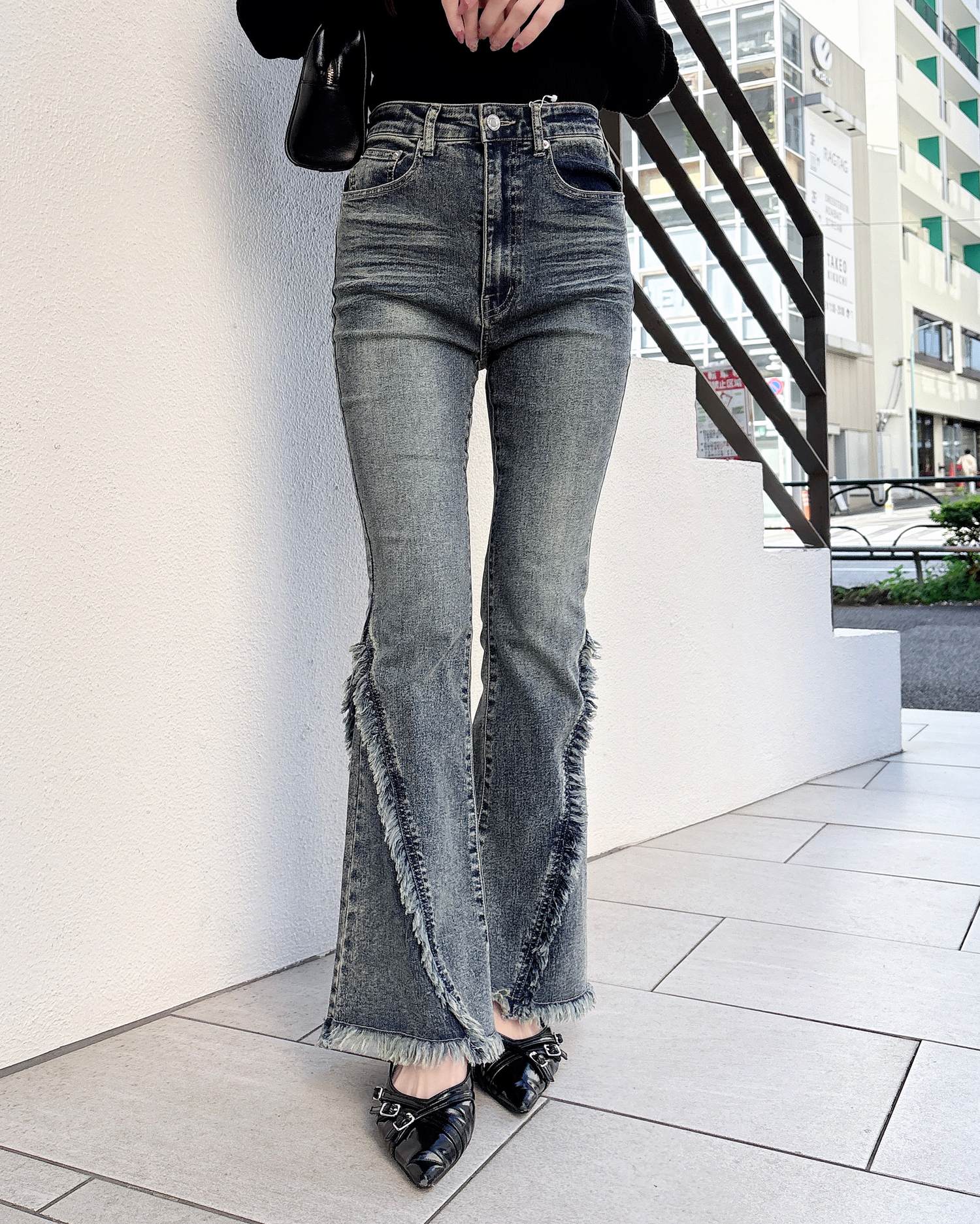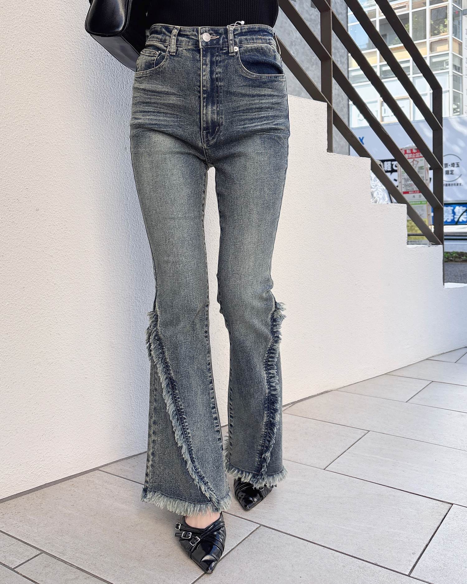 シンプルコーデに取り入れるだけでパッと目を引く存在感抜群のデザインデニムです。