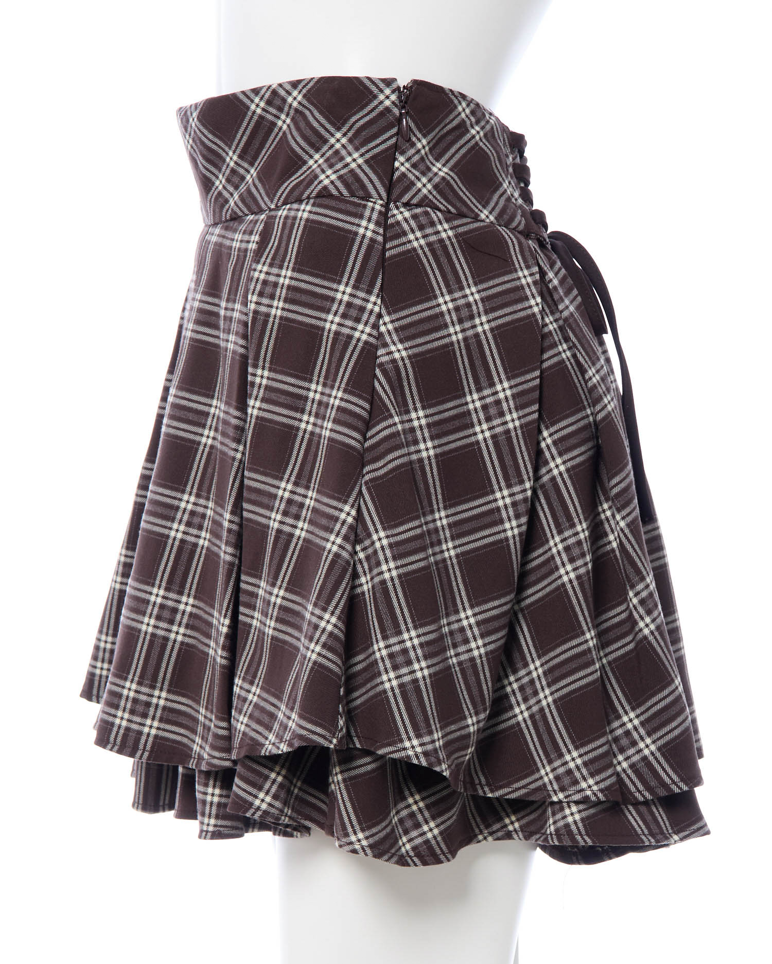 落ち着いたカラーで大人っぽく着こなせるチェック柄のミニスカート。