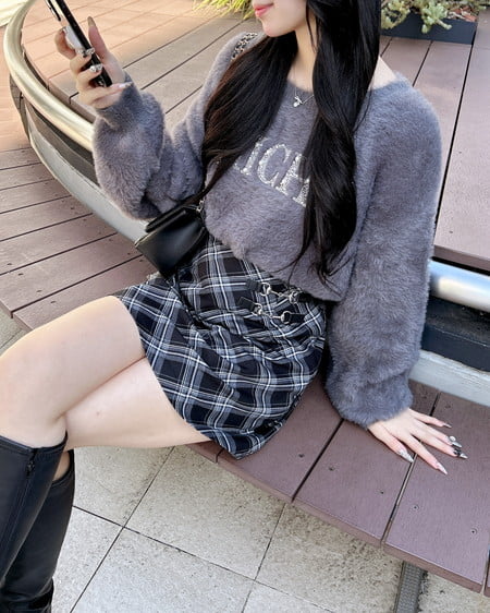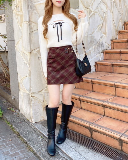 リブニットやタイトなトップスを合わせて大人っぽいコーデに。