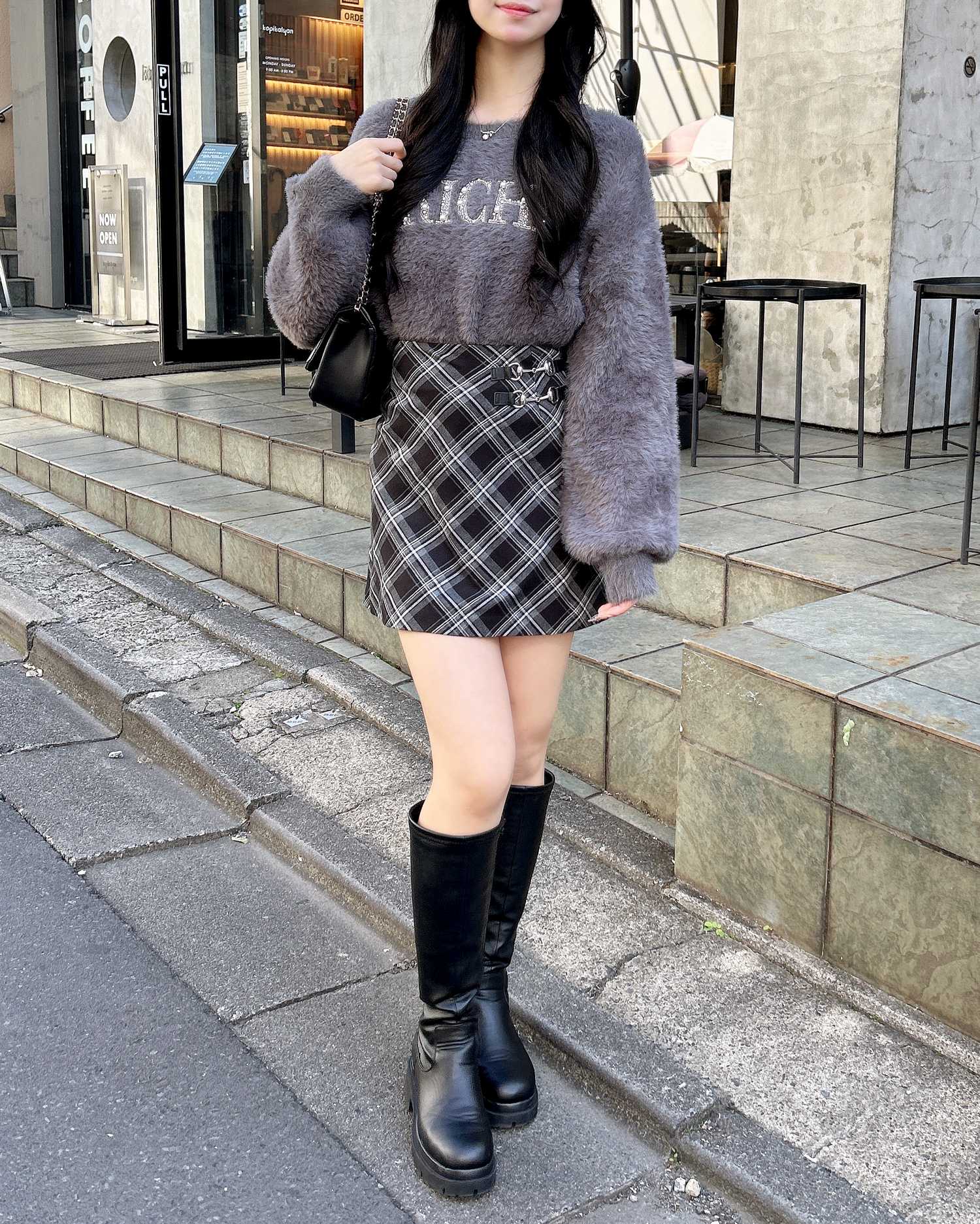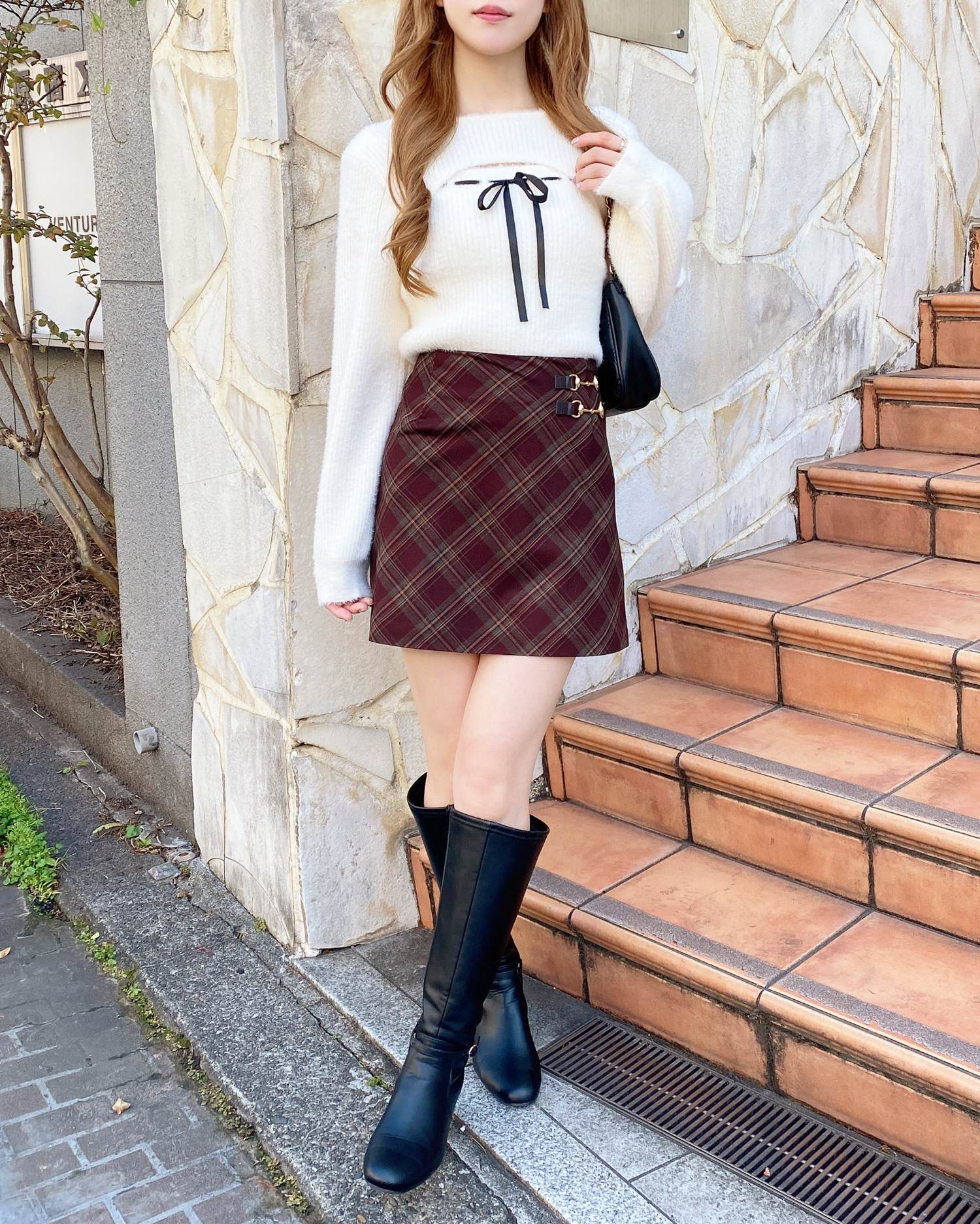 足元にはトレンドのロングブーツやショートブーツでさらにスタイルアップ!