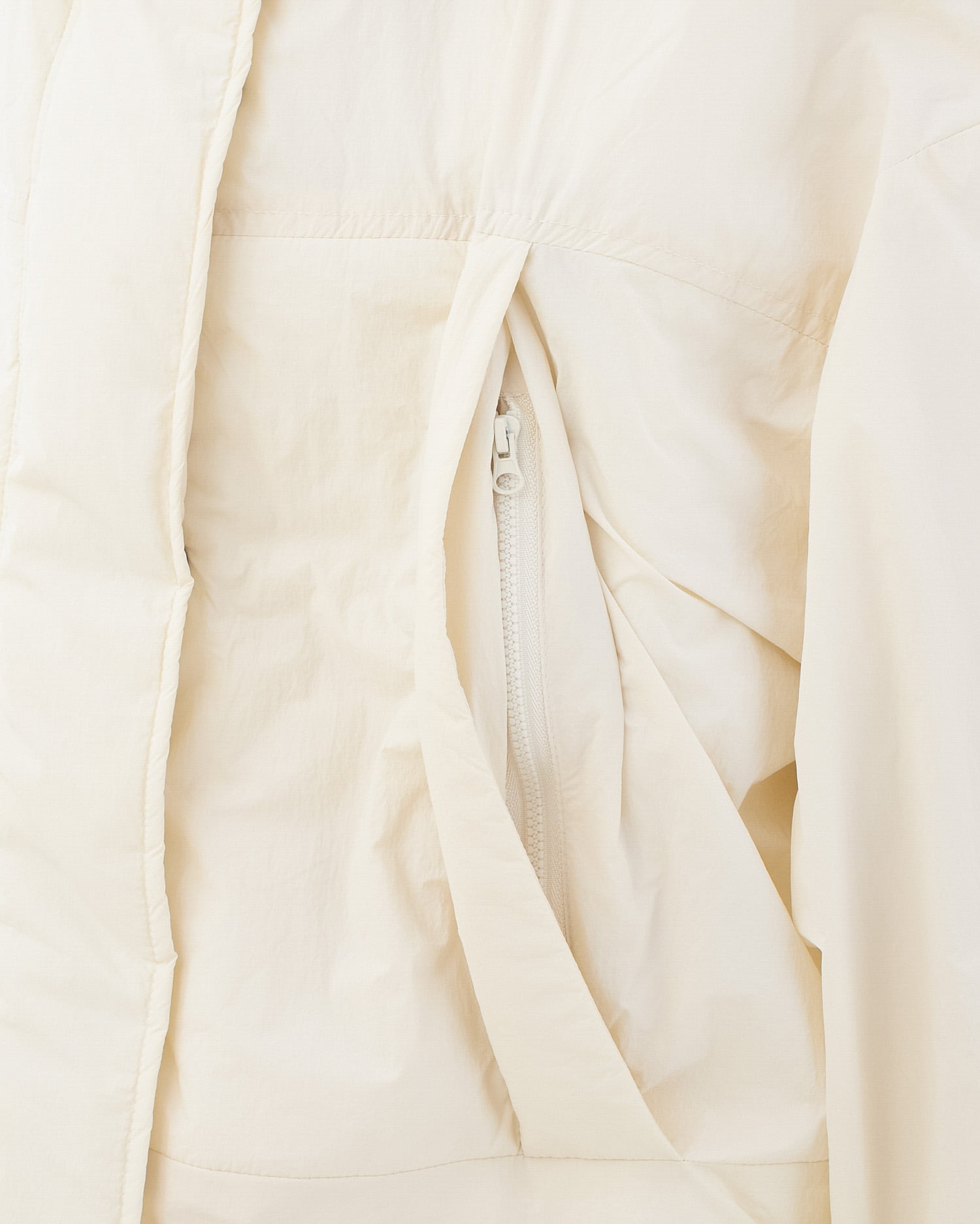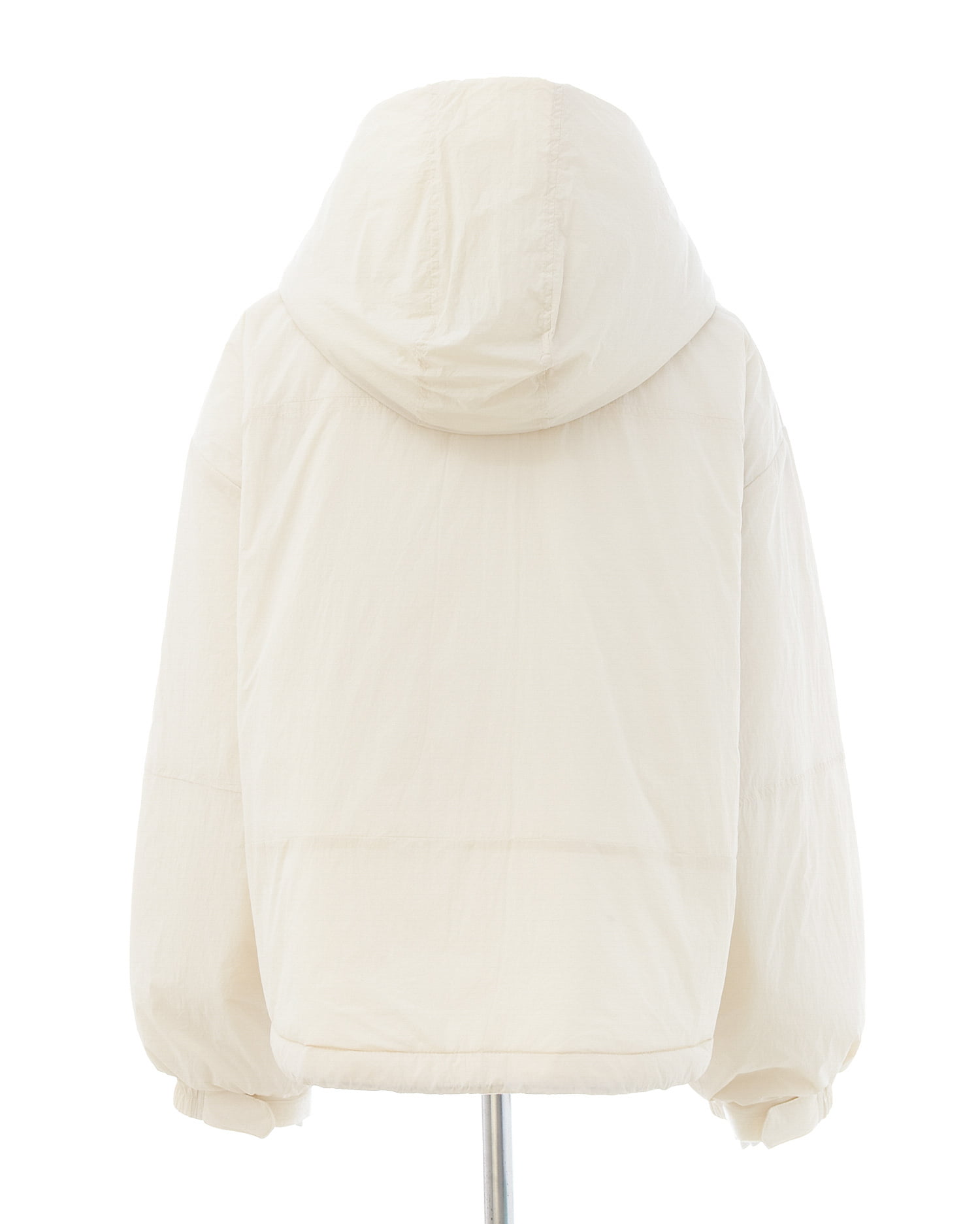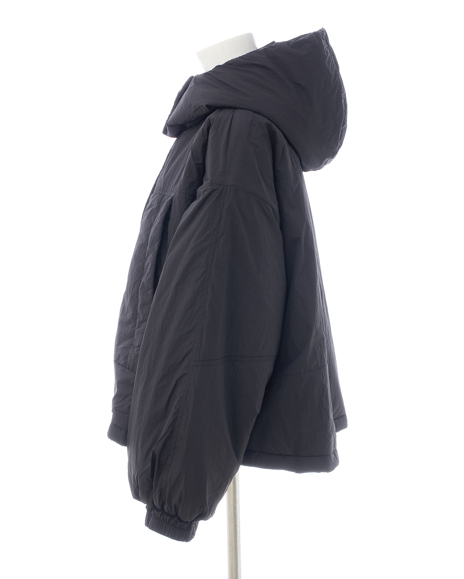 フード部分のスナップボタンを留めれば首元まで覆うスタンド風ネックに。