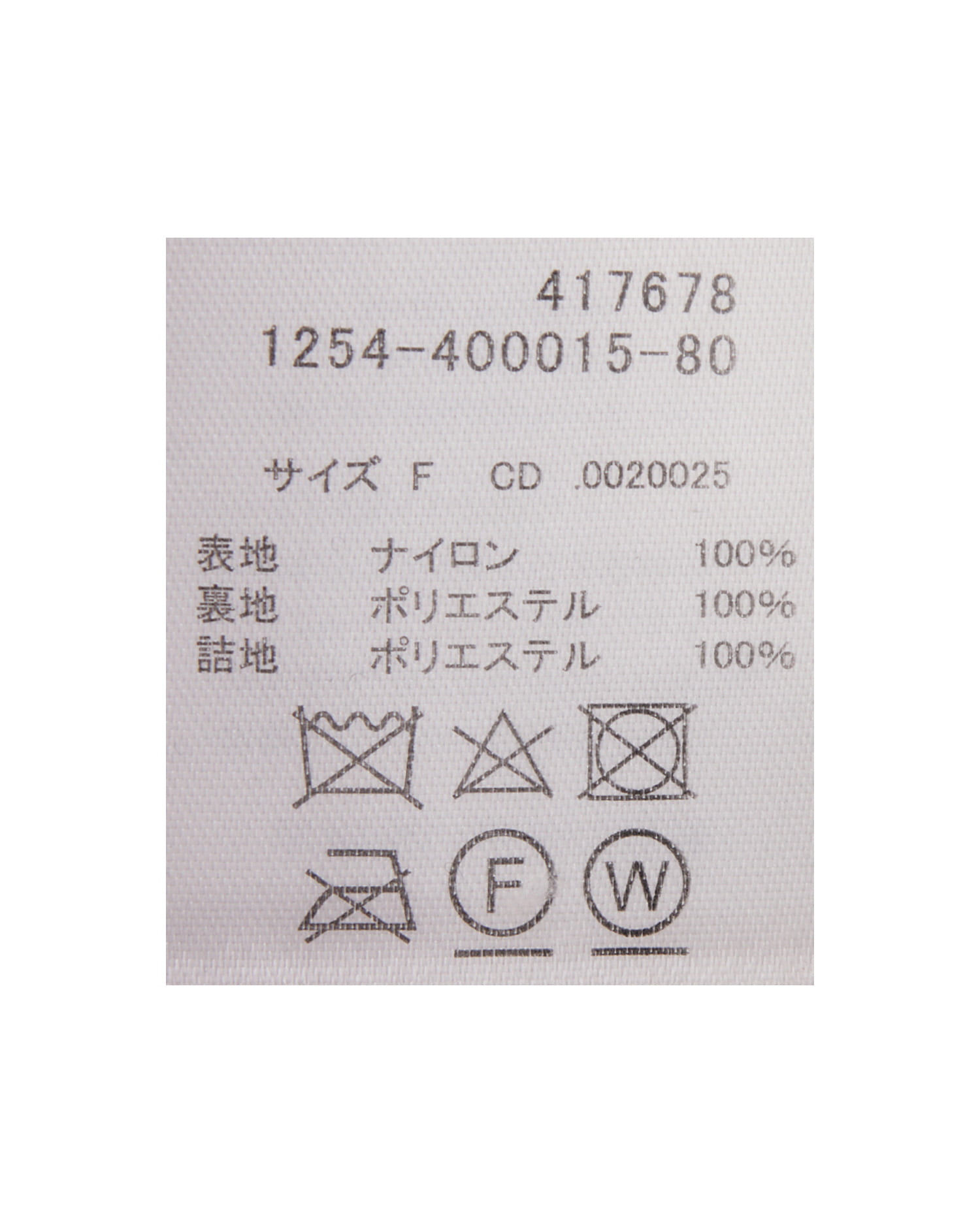原産国 中国 表地 ナイロン100% 裏地 ポリエステル100% 詰め物 ポリエステル100%