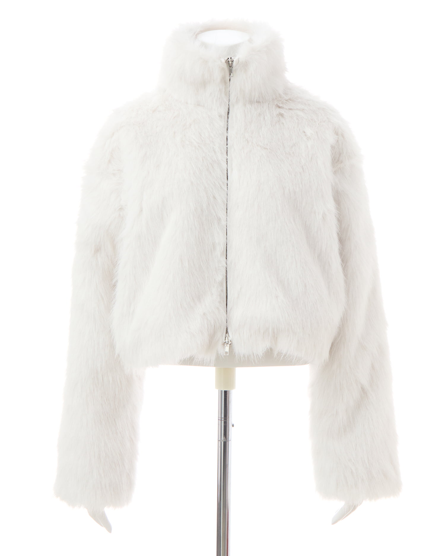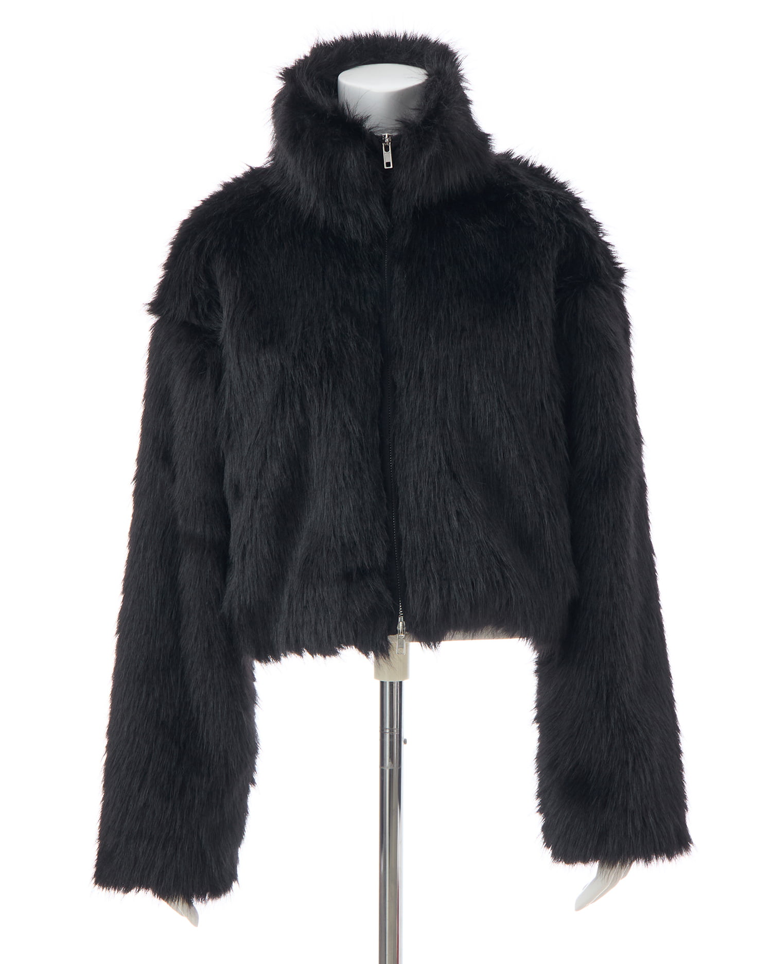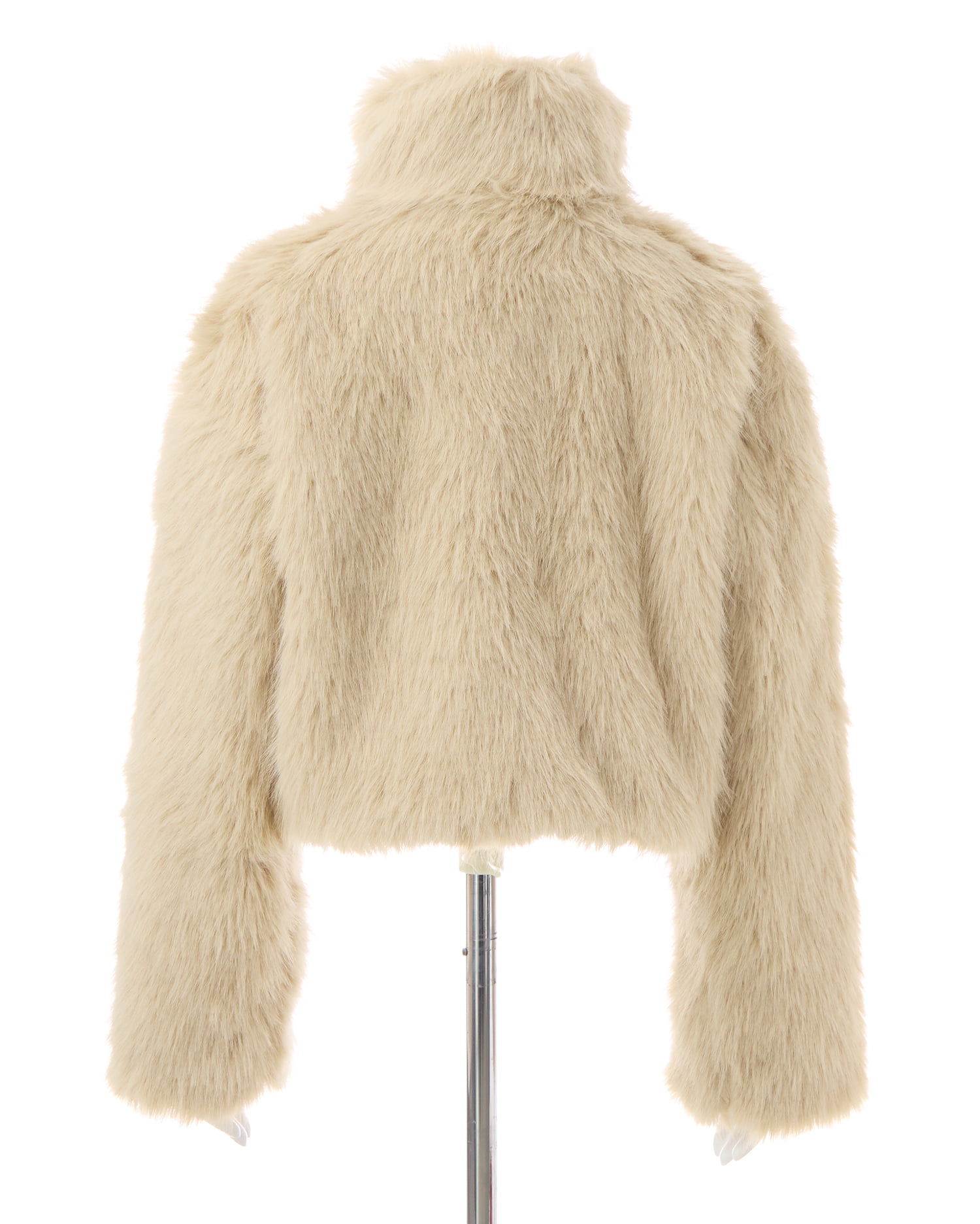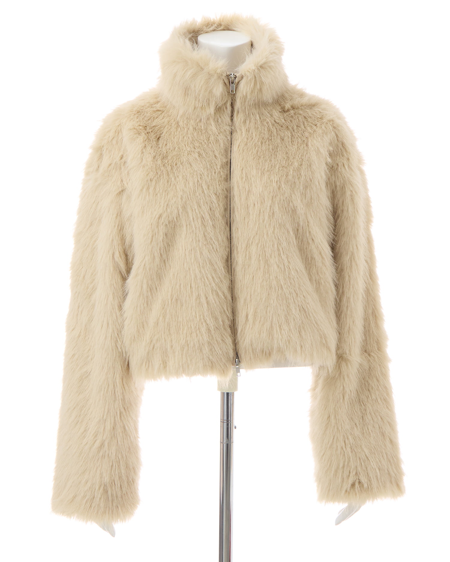 毛足の長いエコファーがゴージャスな印象のブルゾンコート。