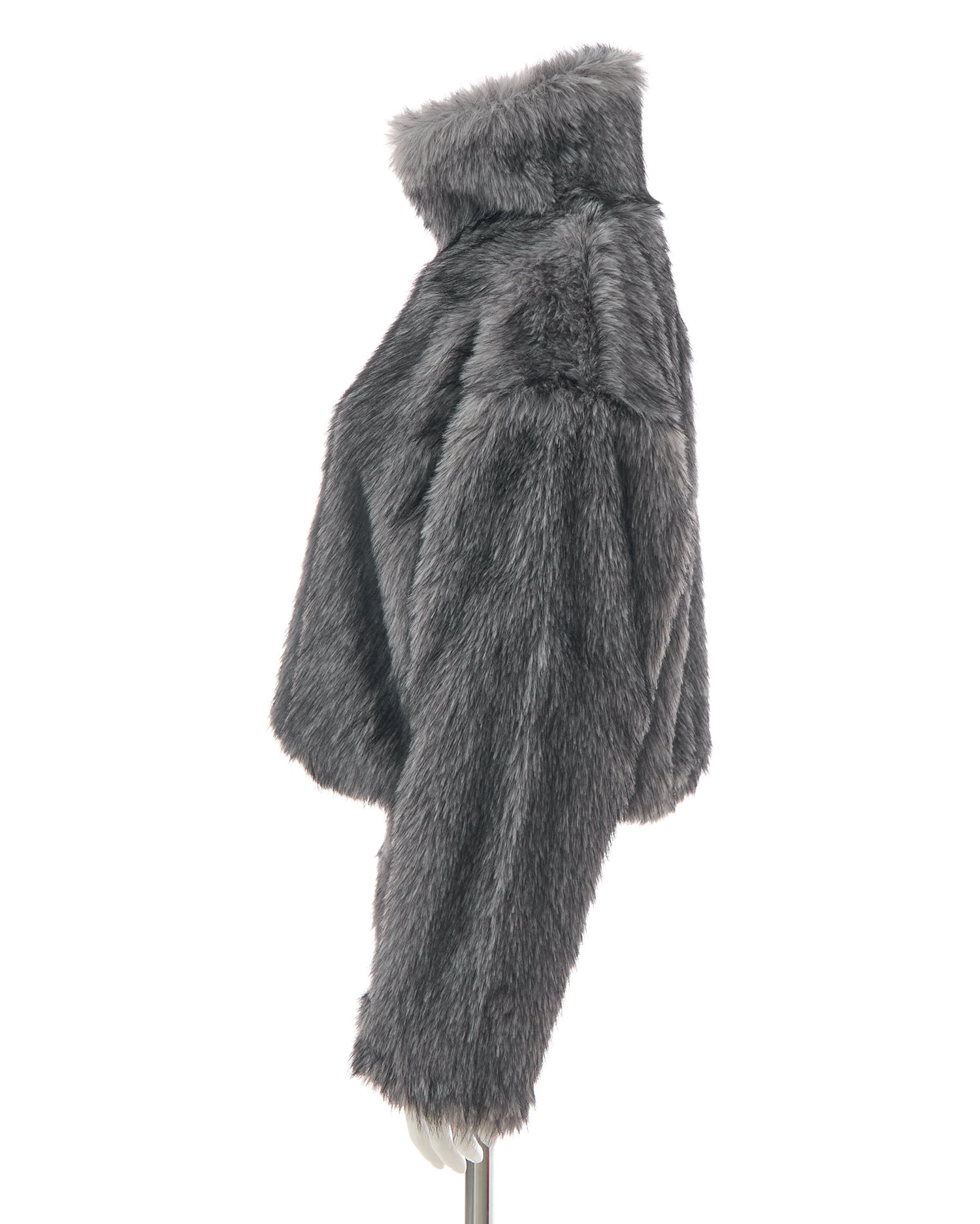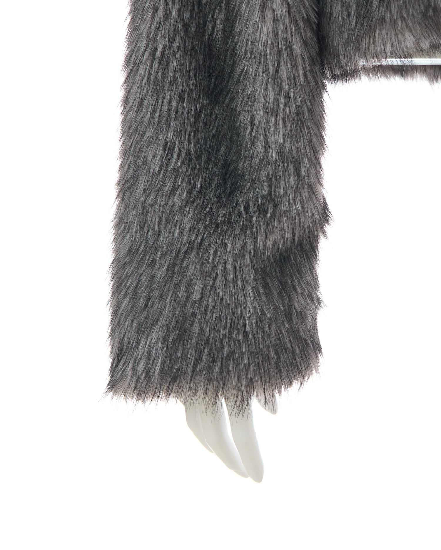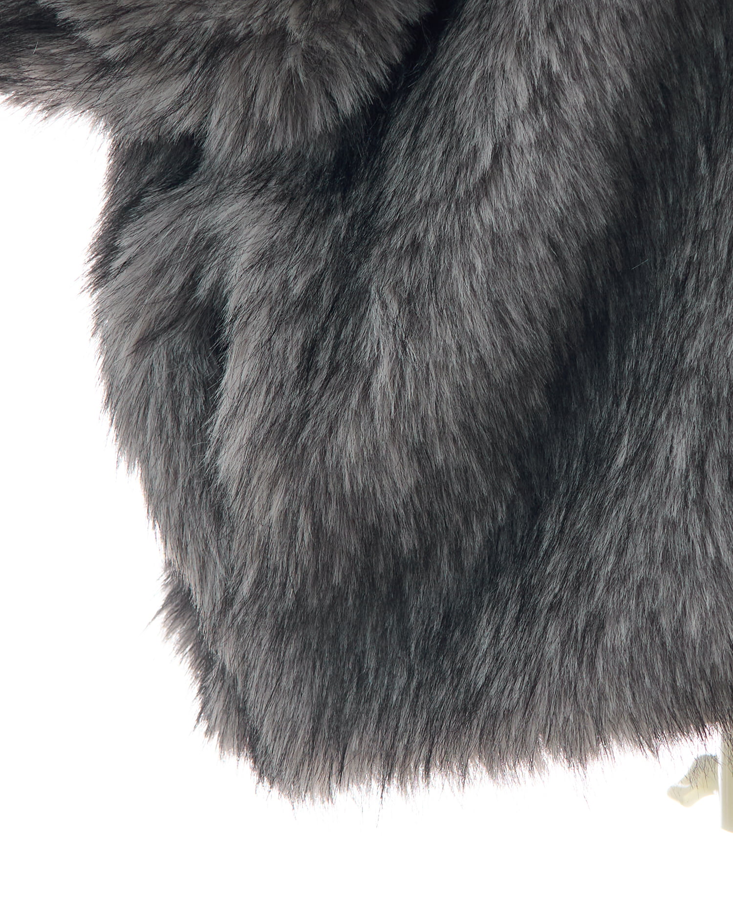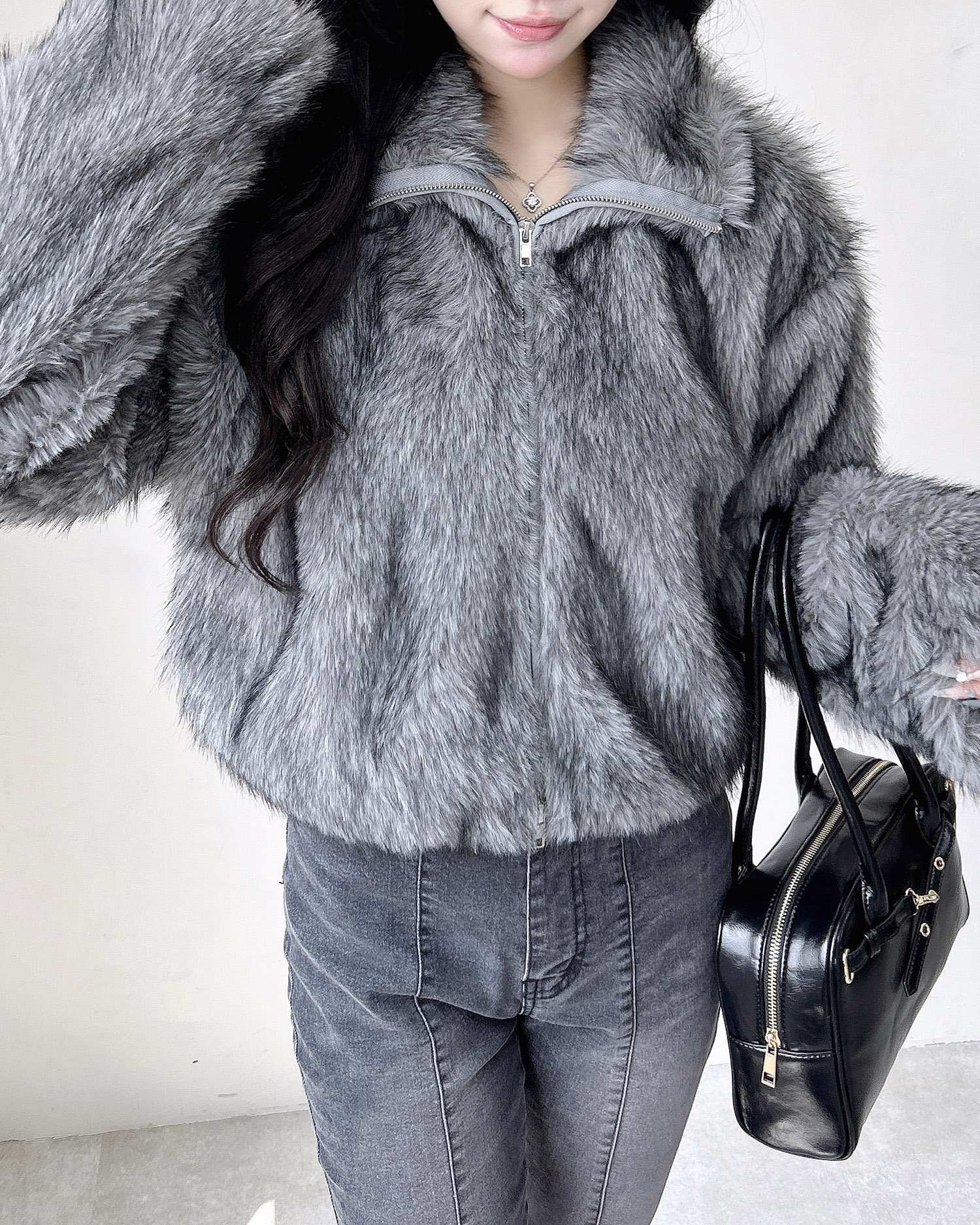 毛足の長いエコファーがゴージャスな印象のブルゾンコート。