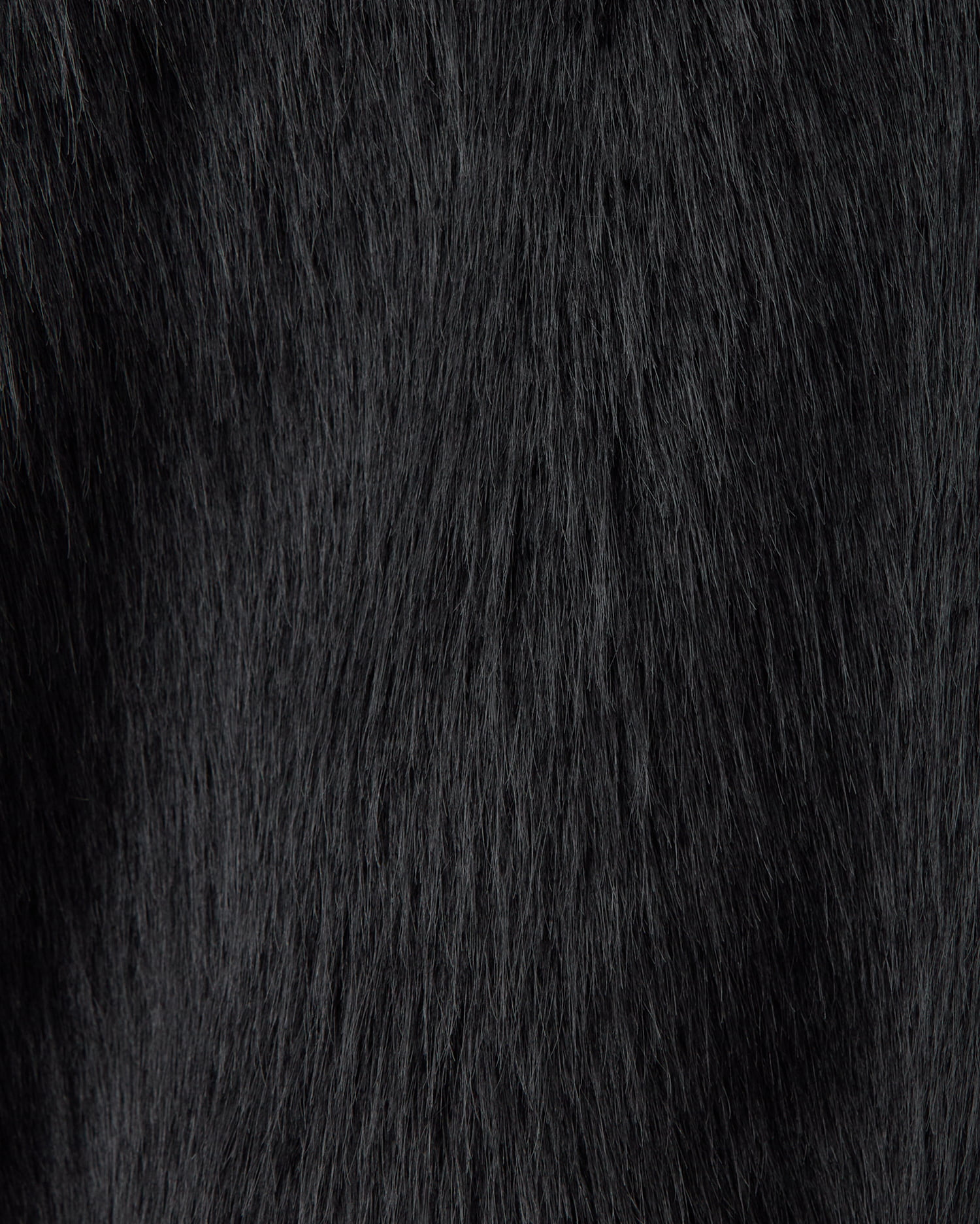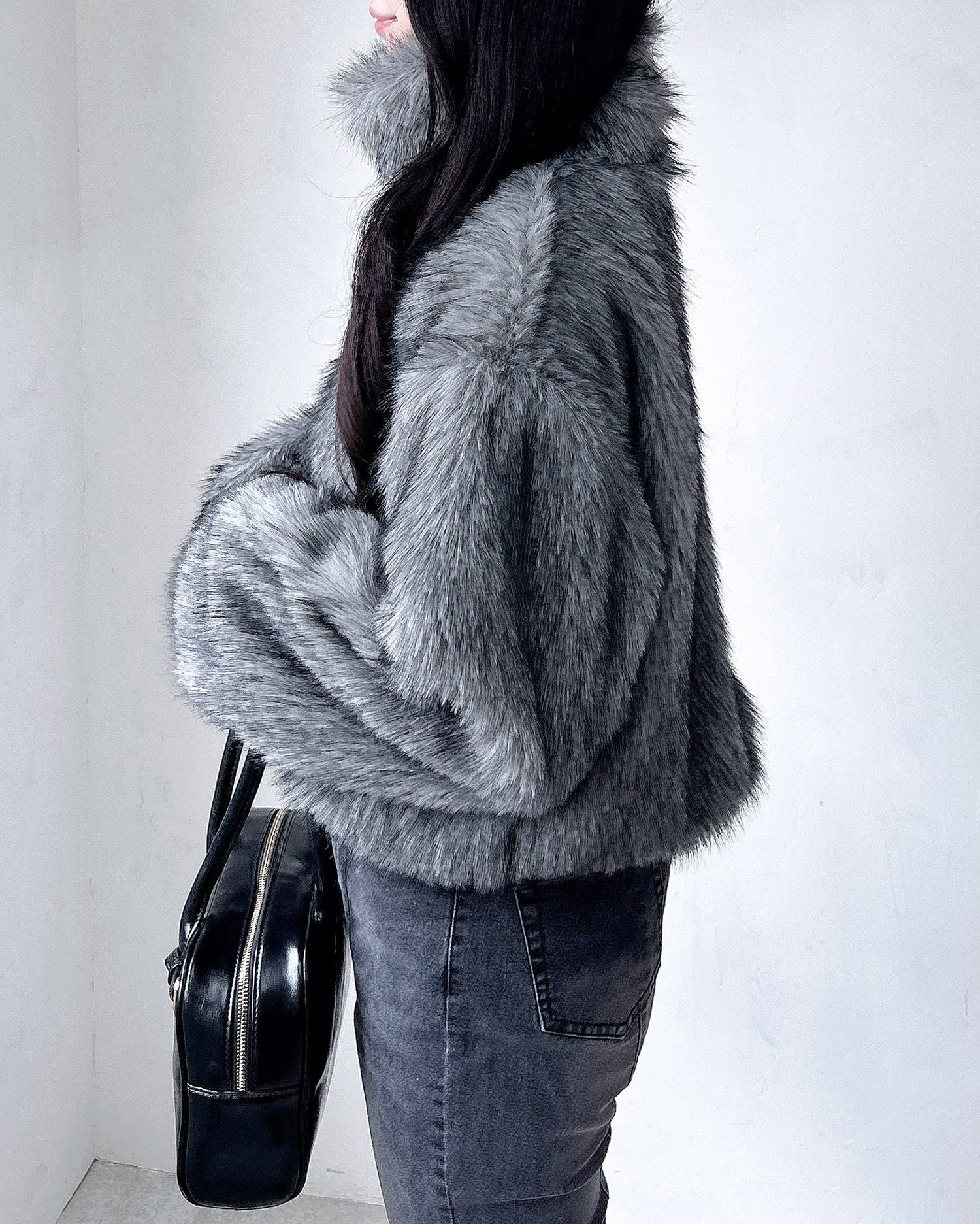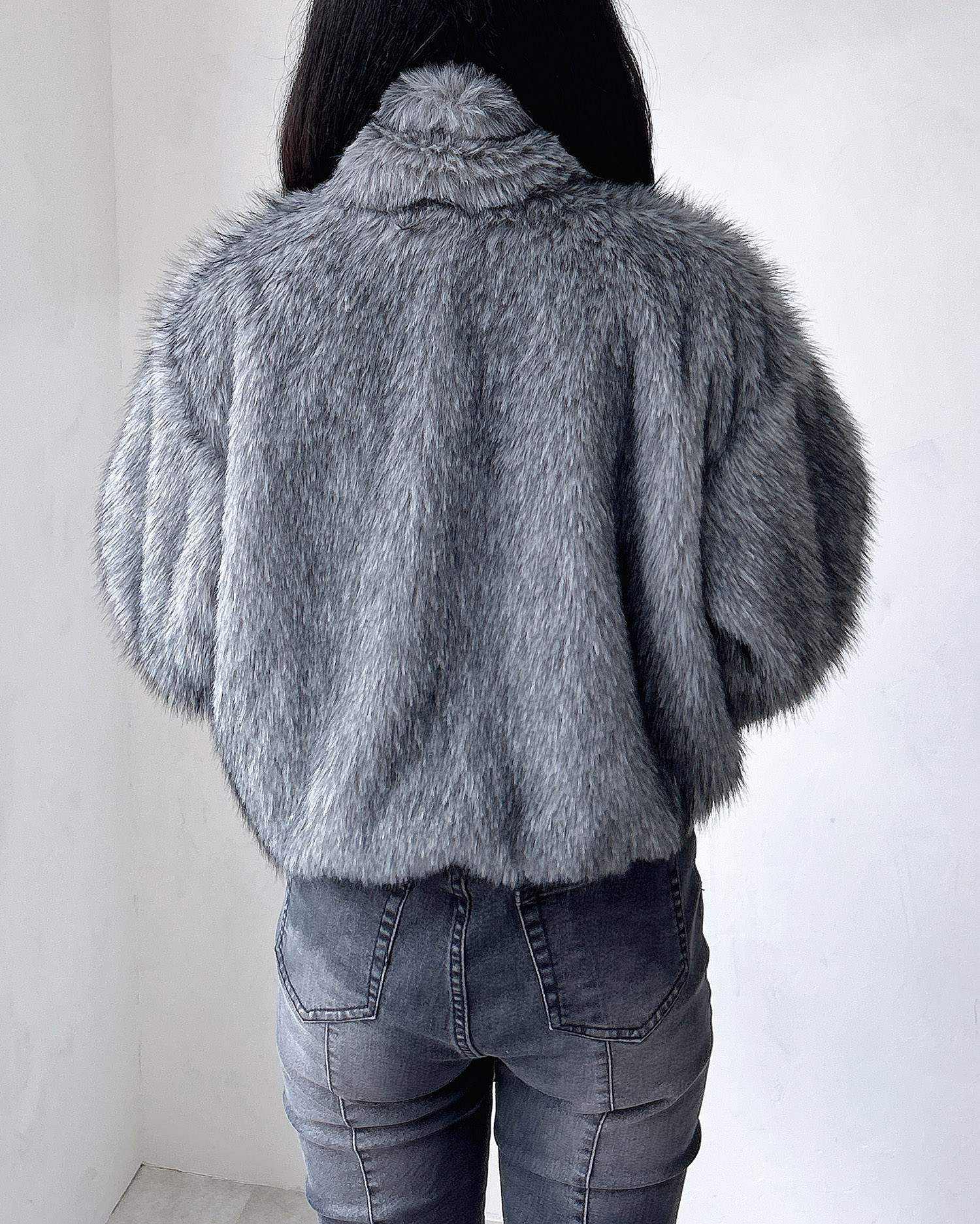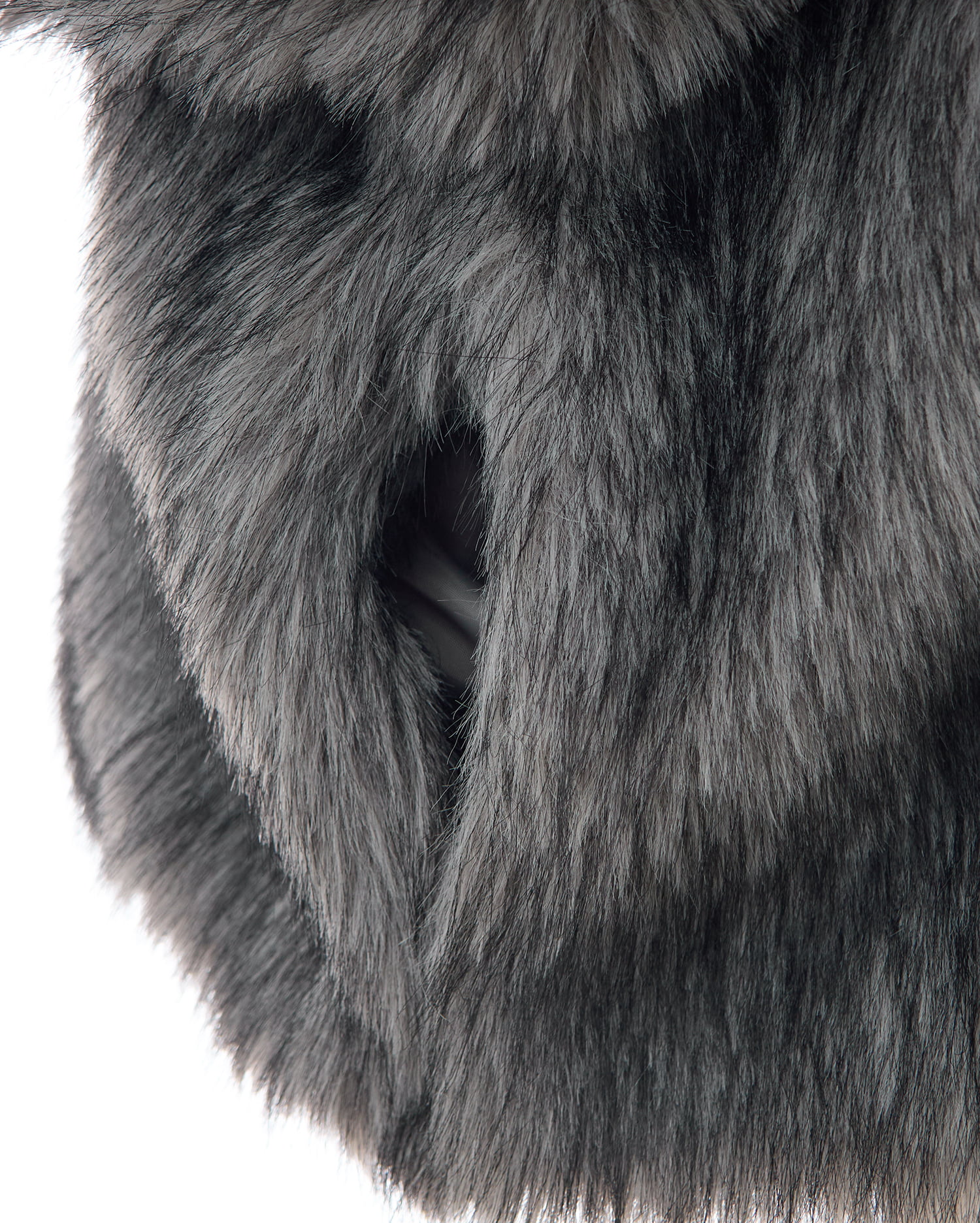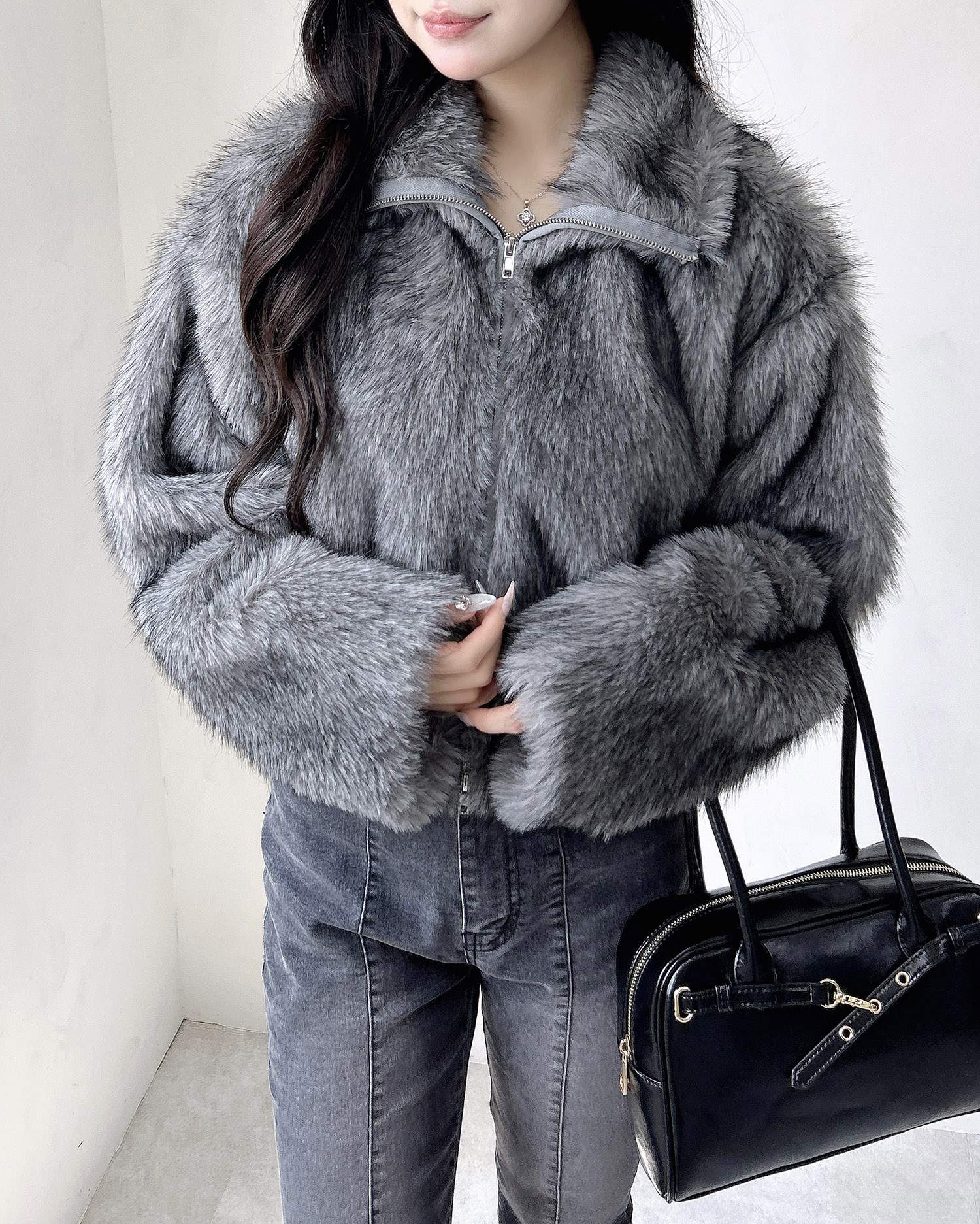 毛足の長いエコファーがゴージャスな印象のブルゾンコート。