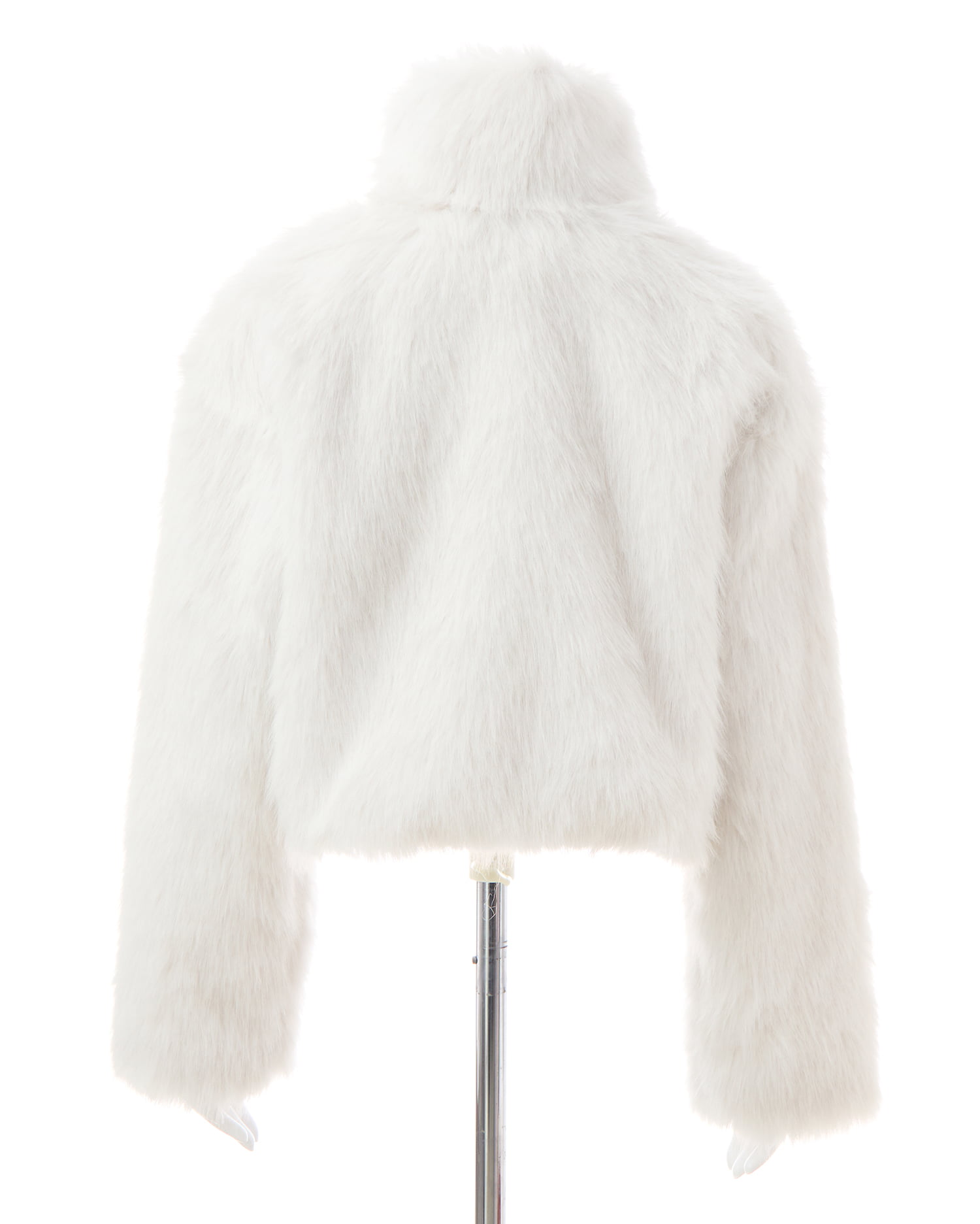• INGNI(イング) フロントジップスタンドカラーエコファーコート アイボリー