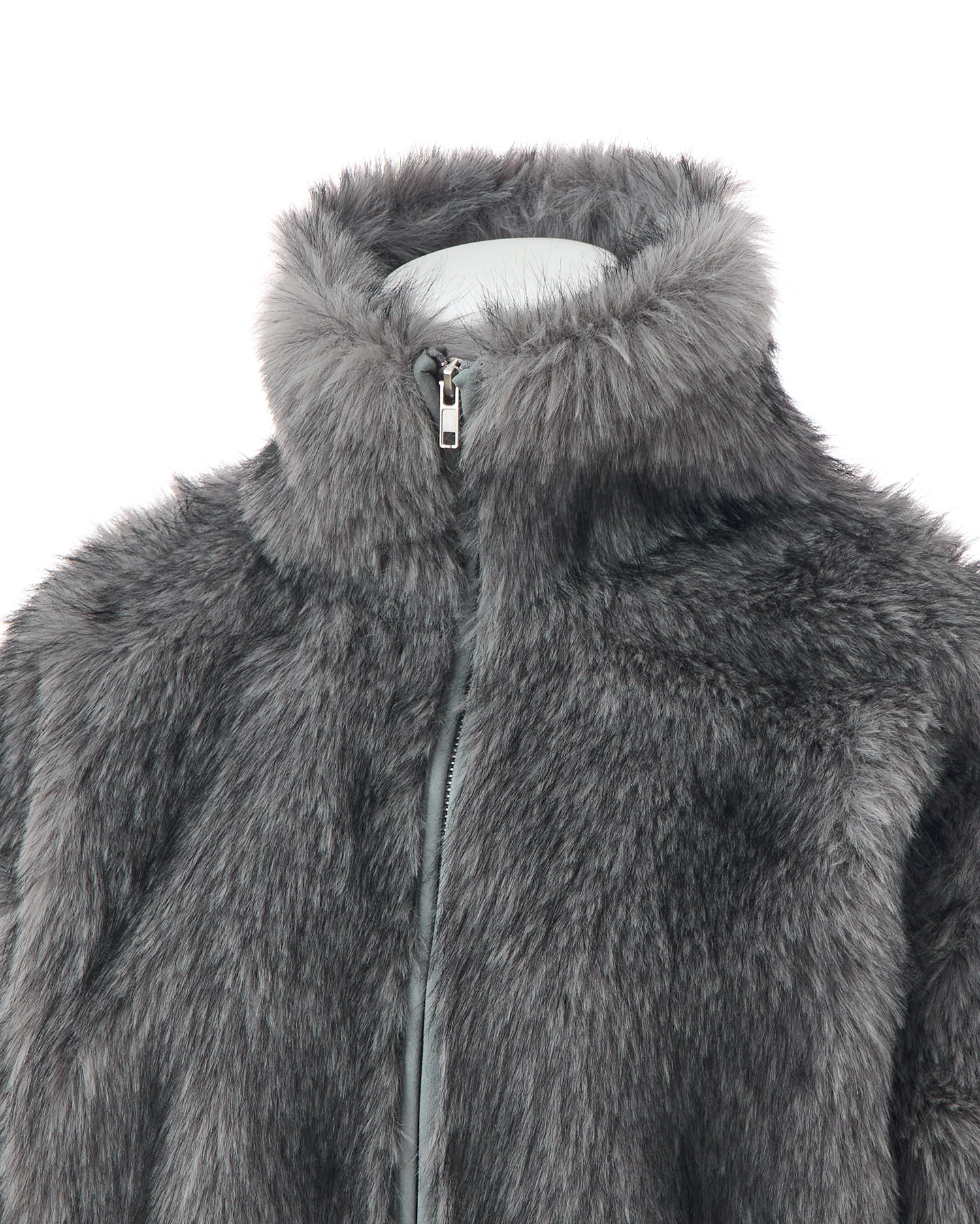 1254-400022 フロントジップスタンドカラーエコファーコート