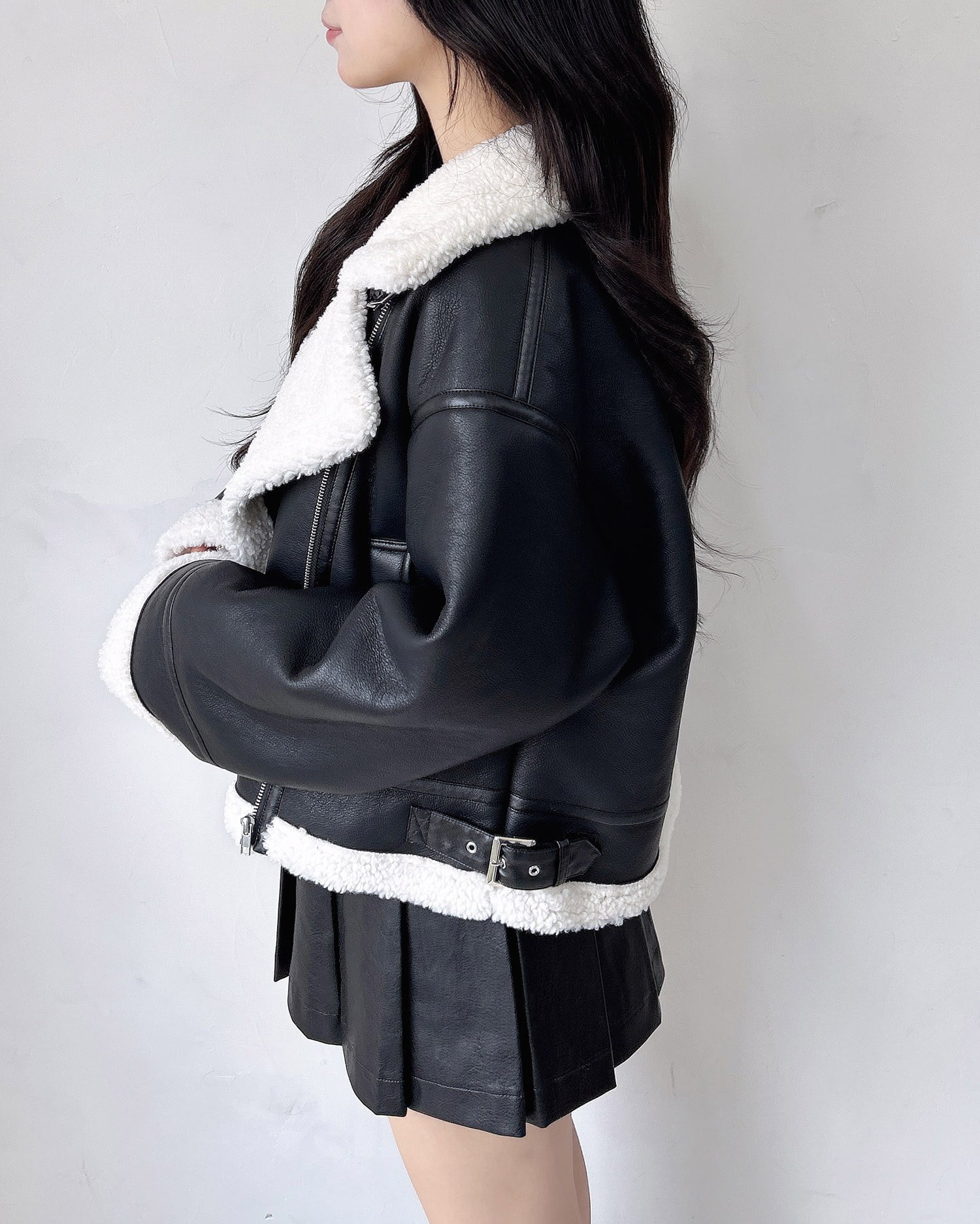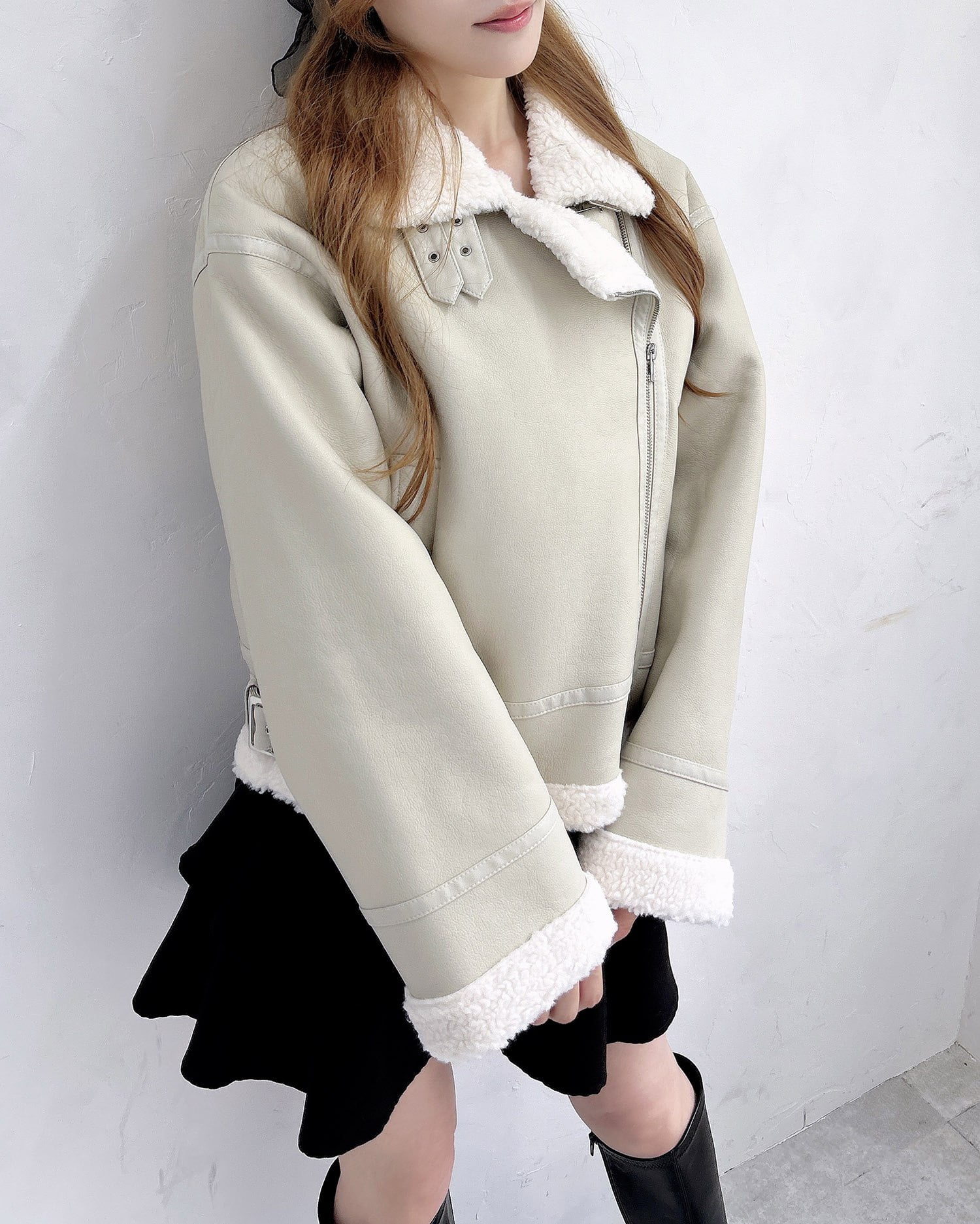 【もこもこあったかい♡ショート丈ムートンフライトジャケット】