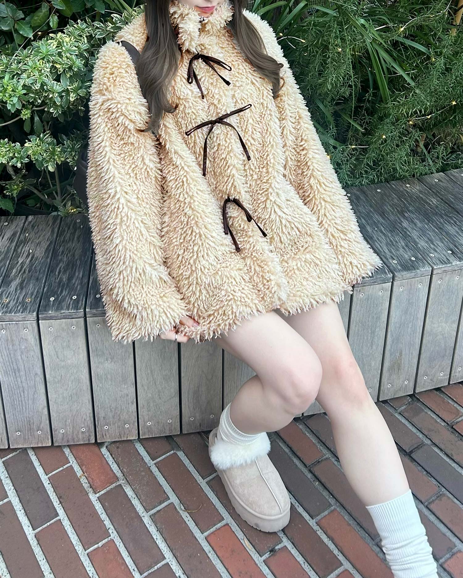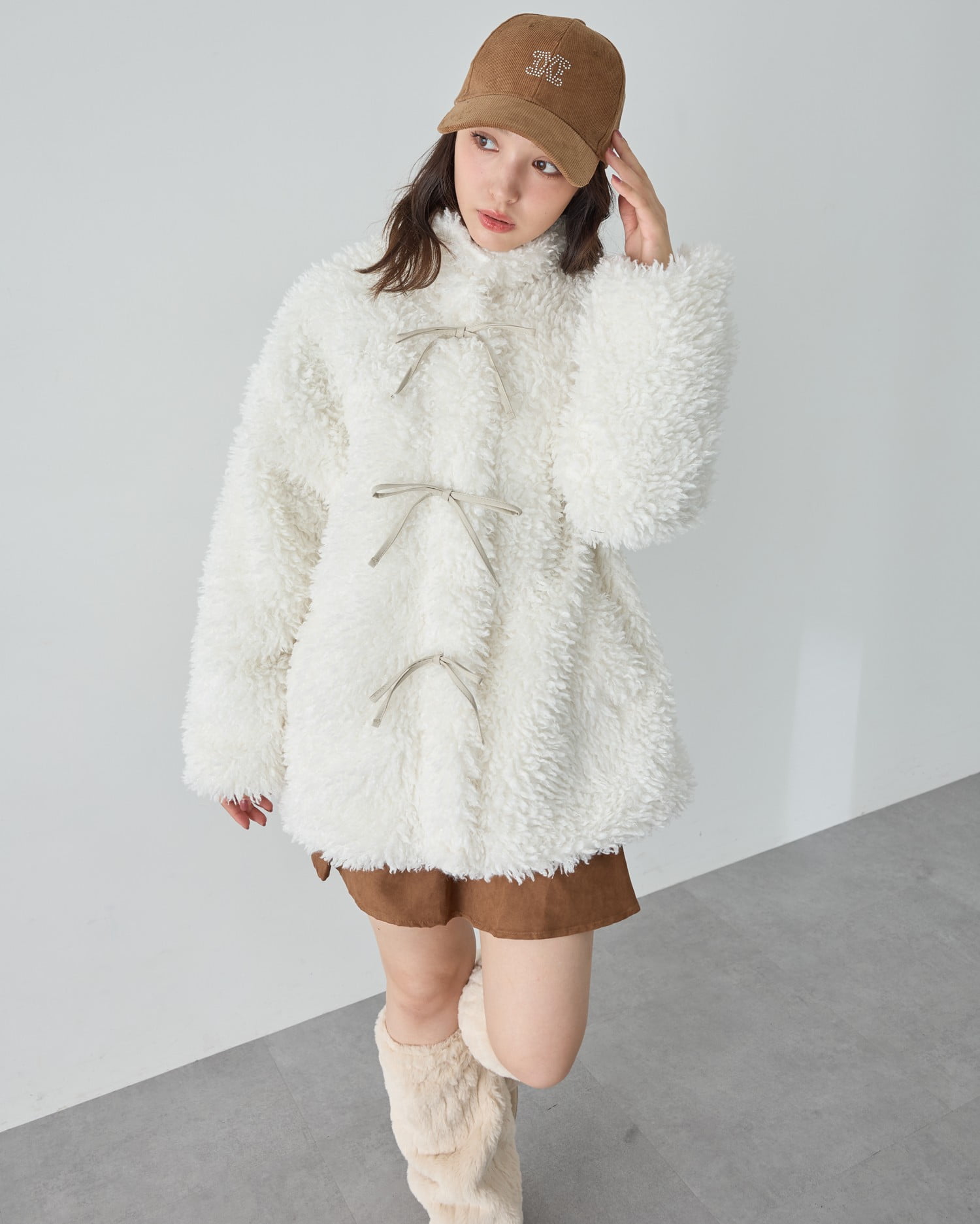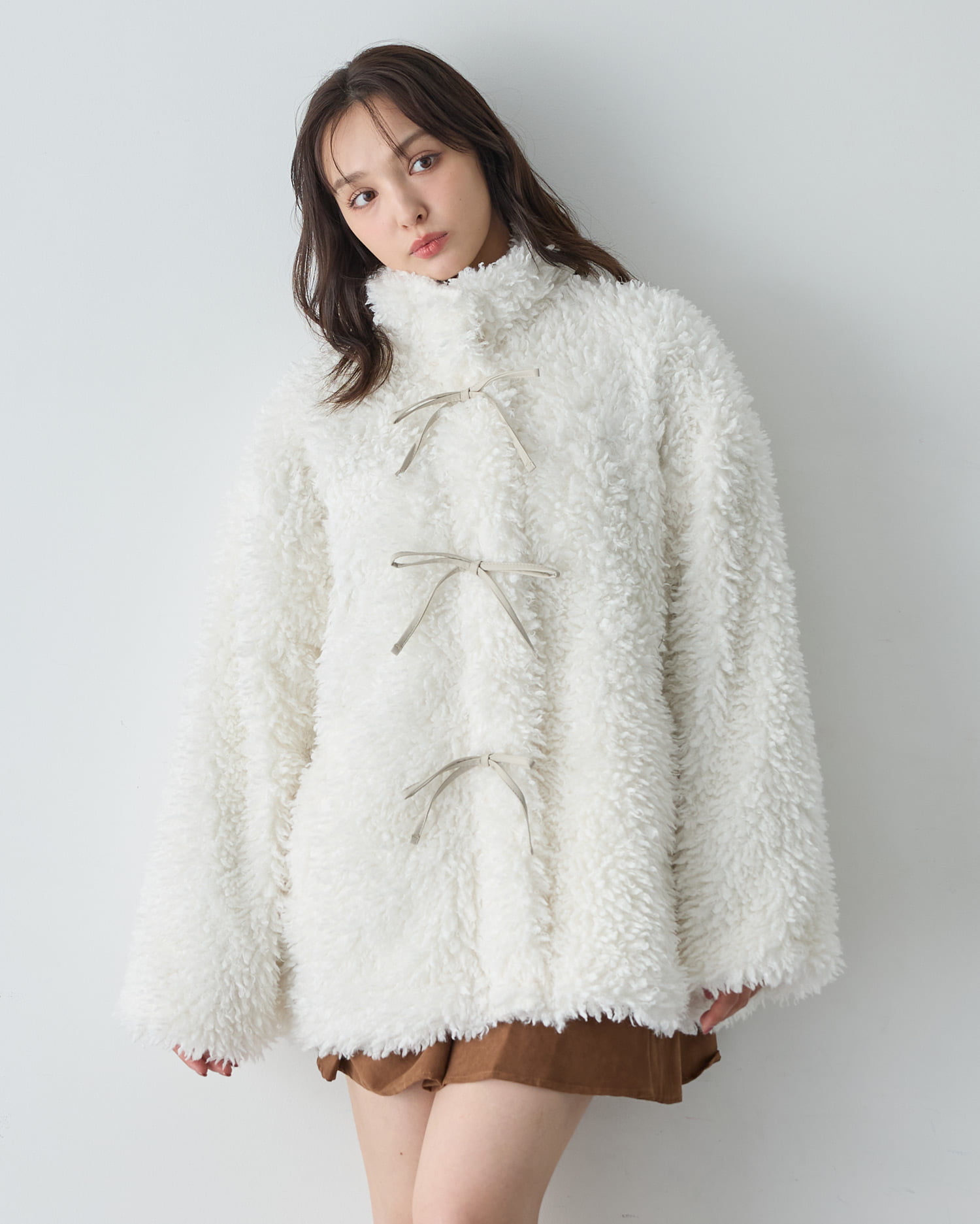 あったかくて可愛いもこもこのボアに、リボンを付けたキュートすぎるブルゾンが登場!