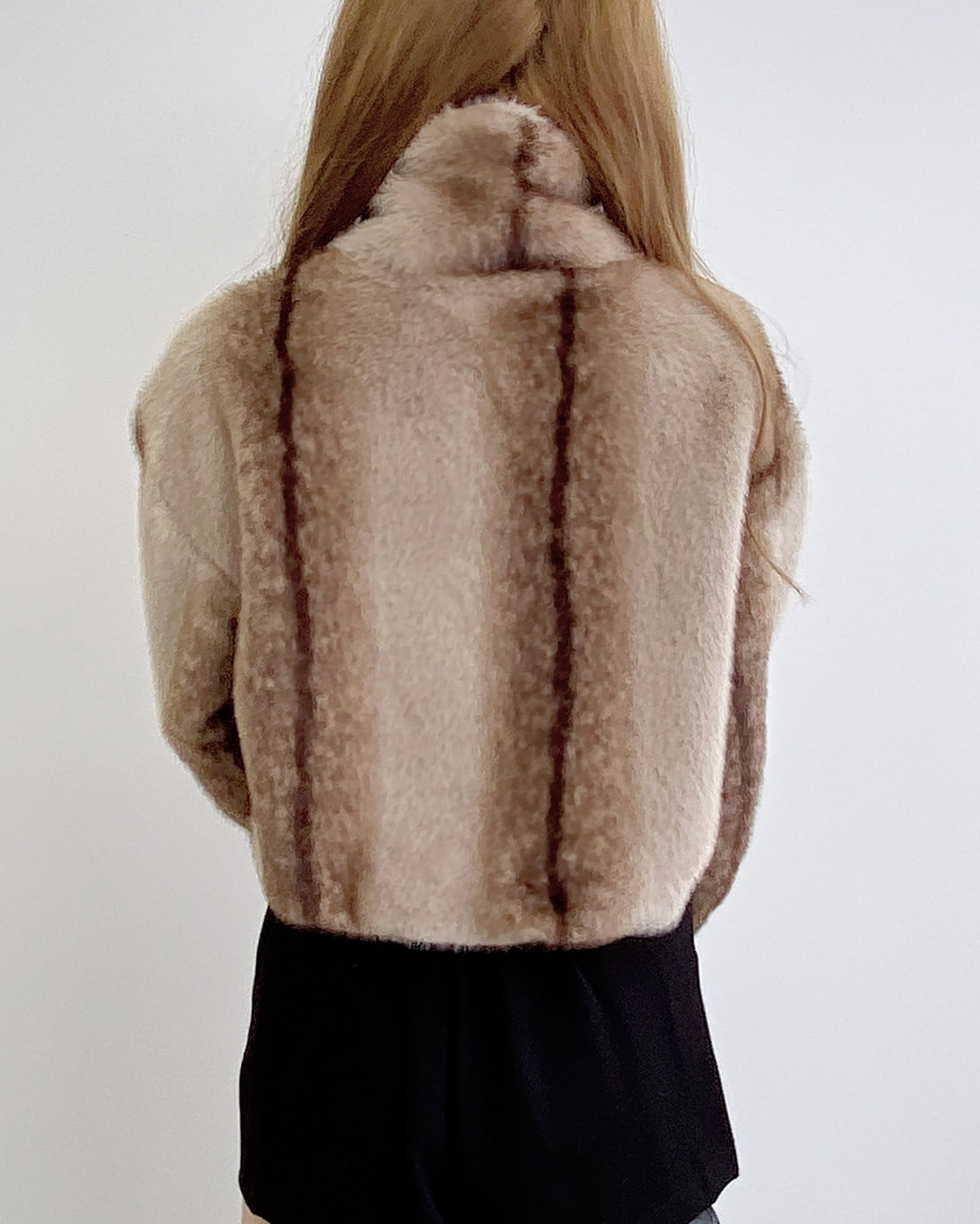 【エコファーの色でストライプを表現したスタイリッシュなコート】