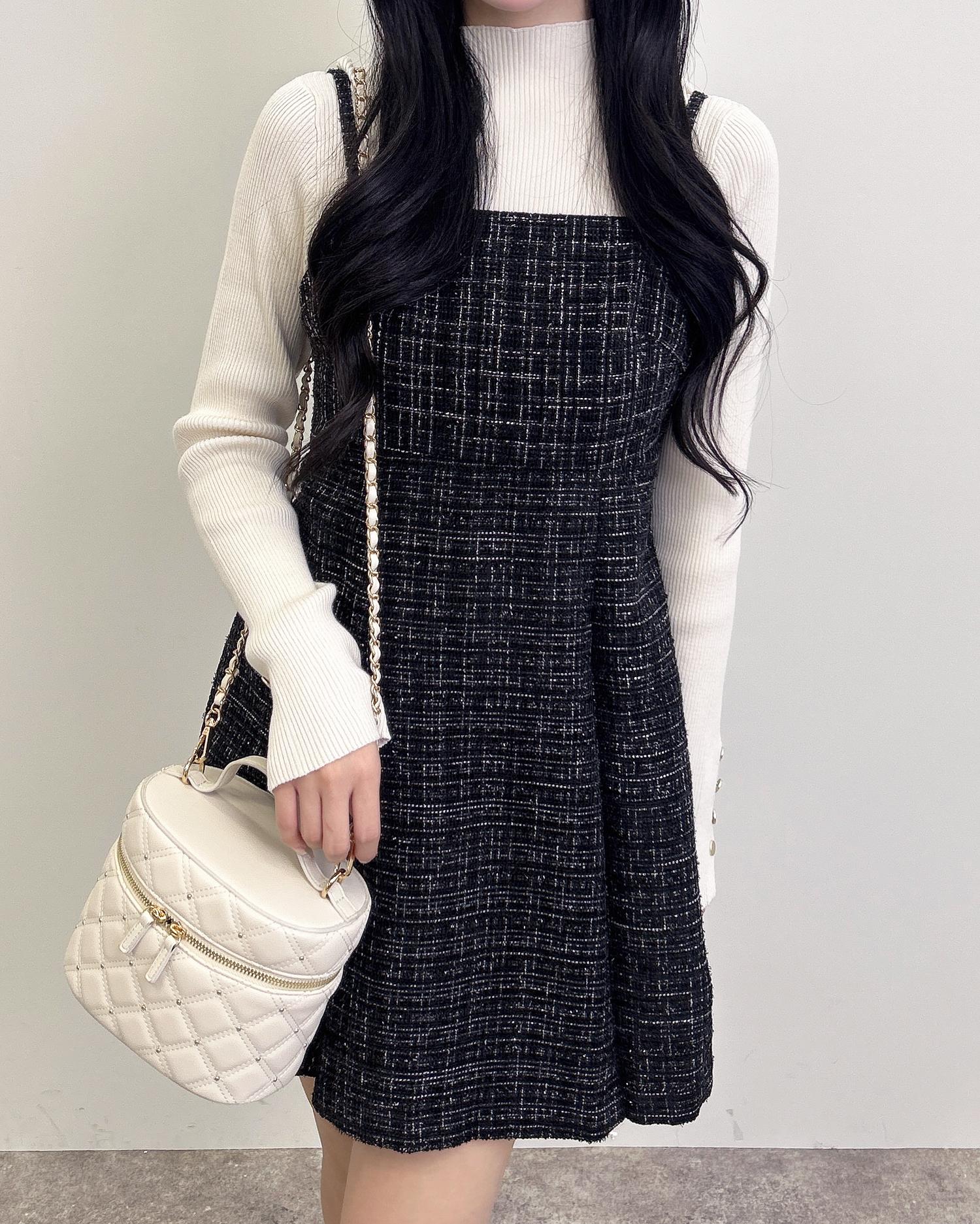 【冬らしいツイード生地×トレンドのミニキャミワンピが登場♡】